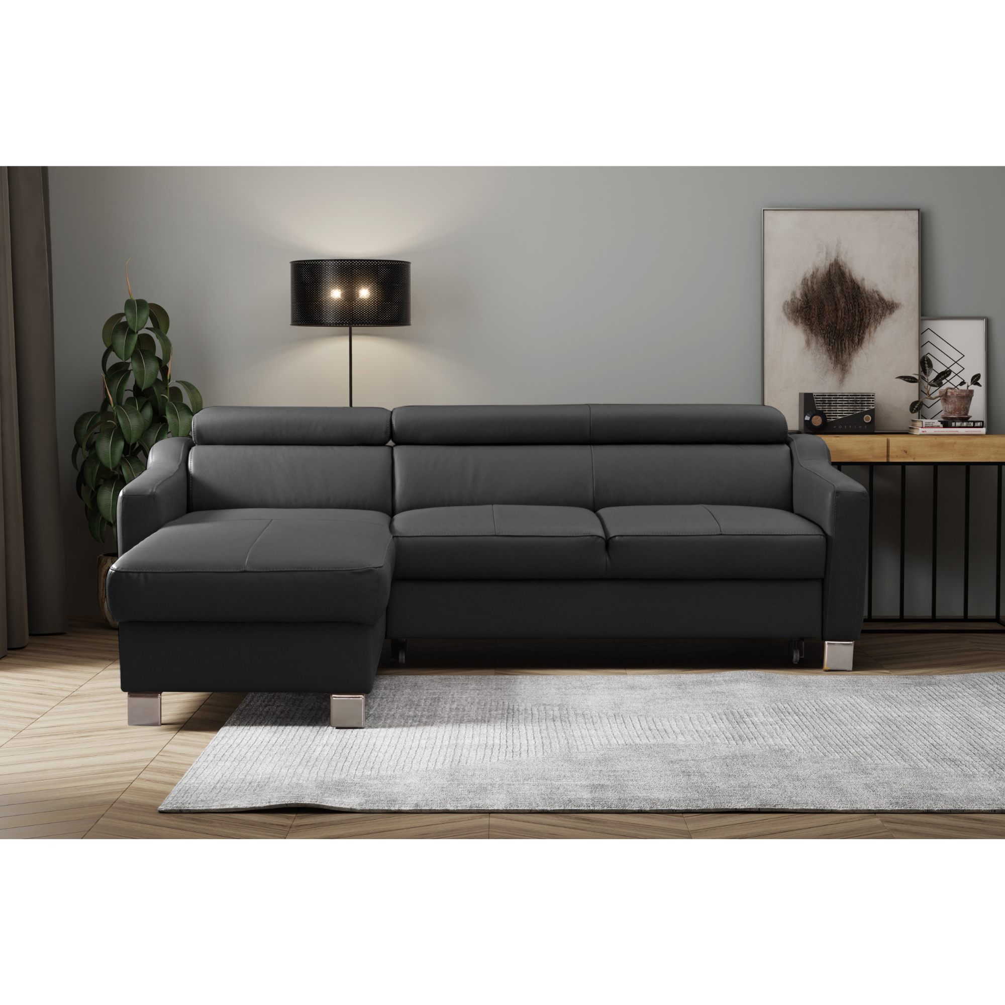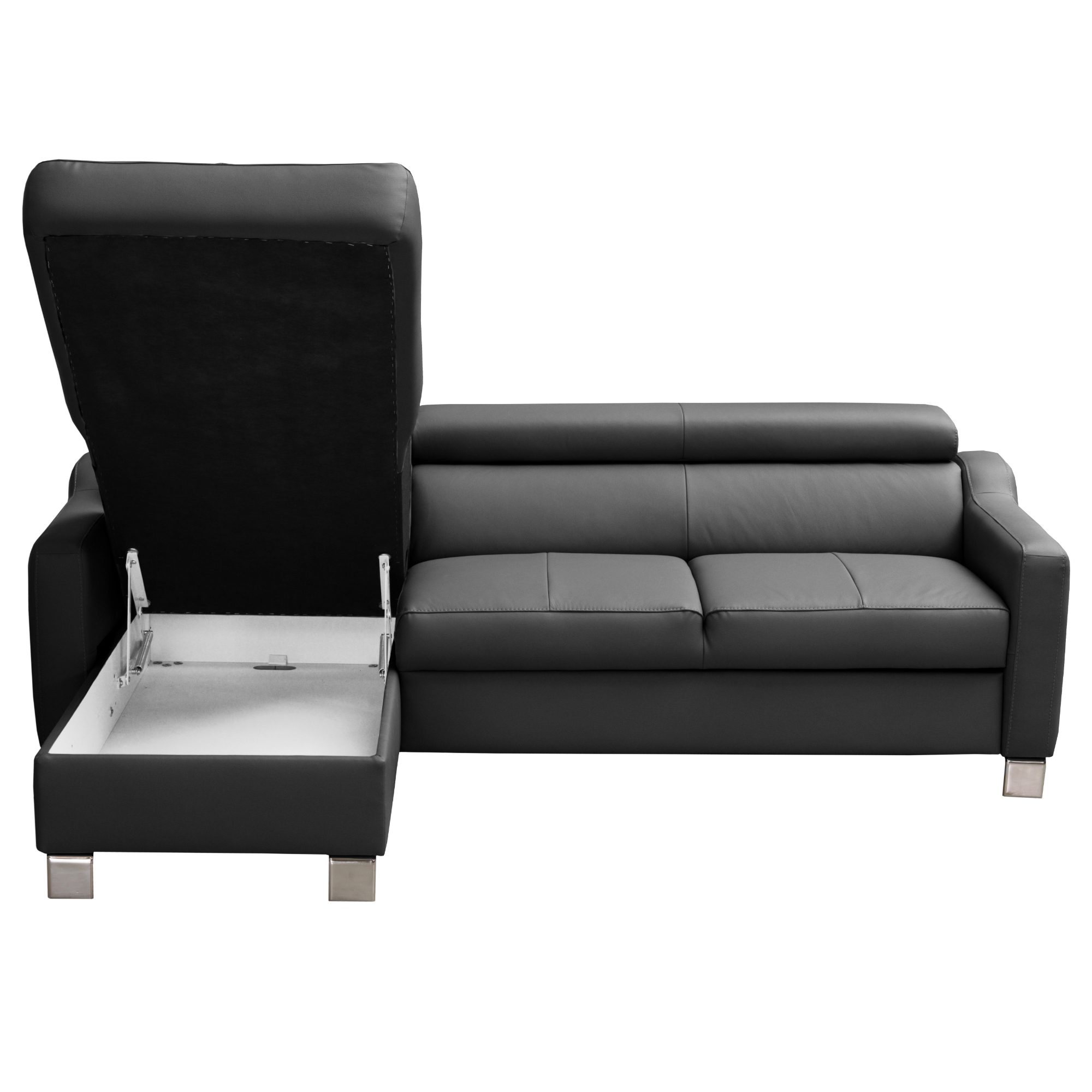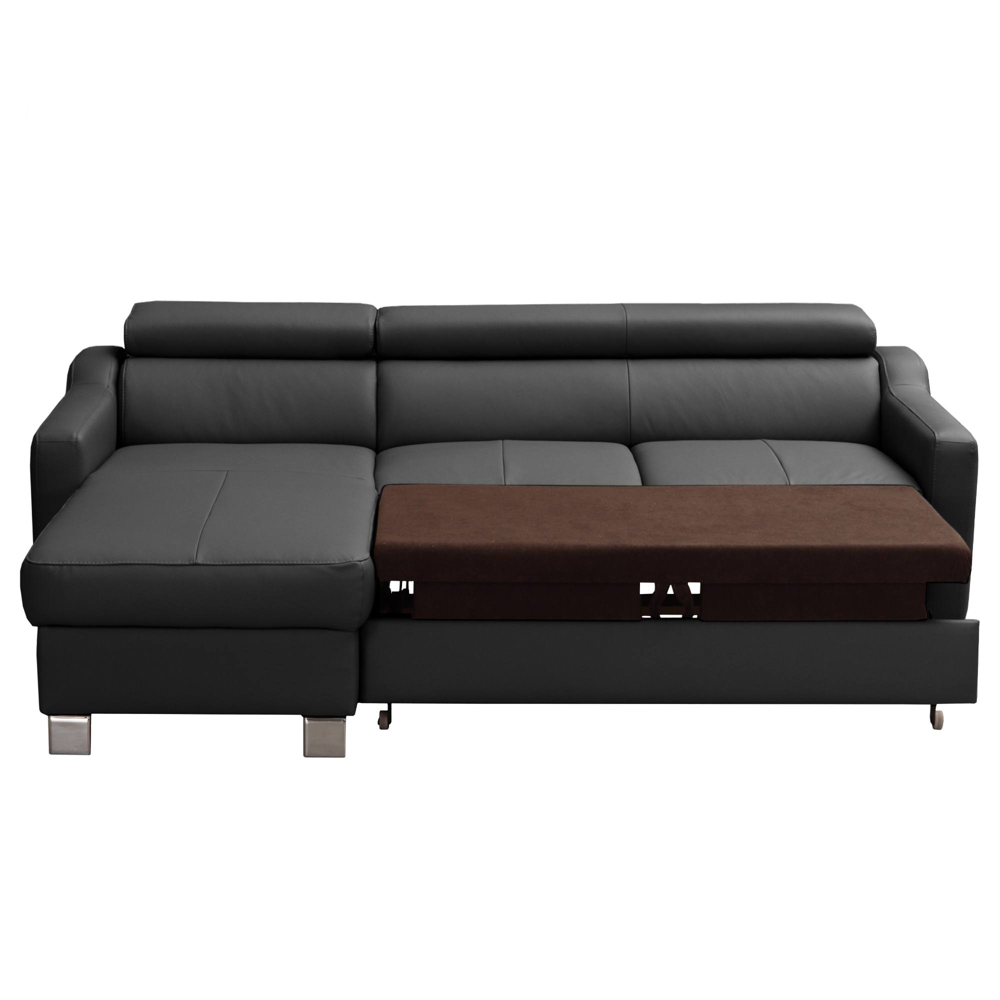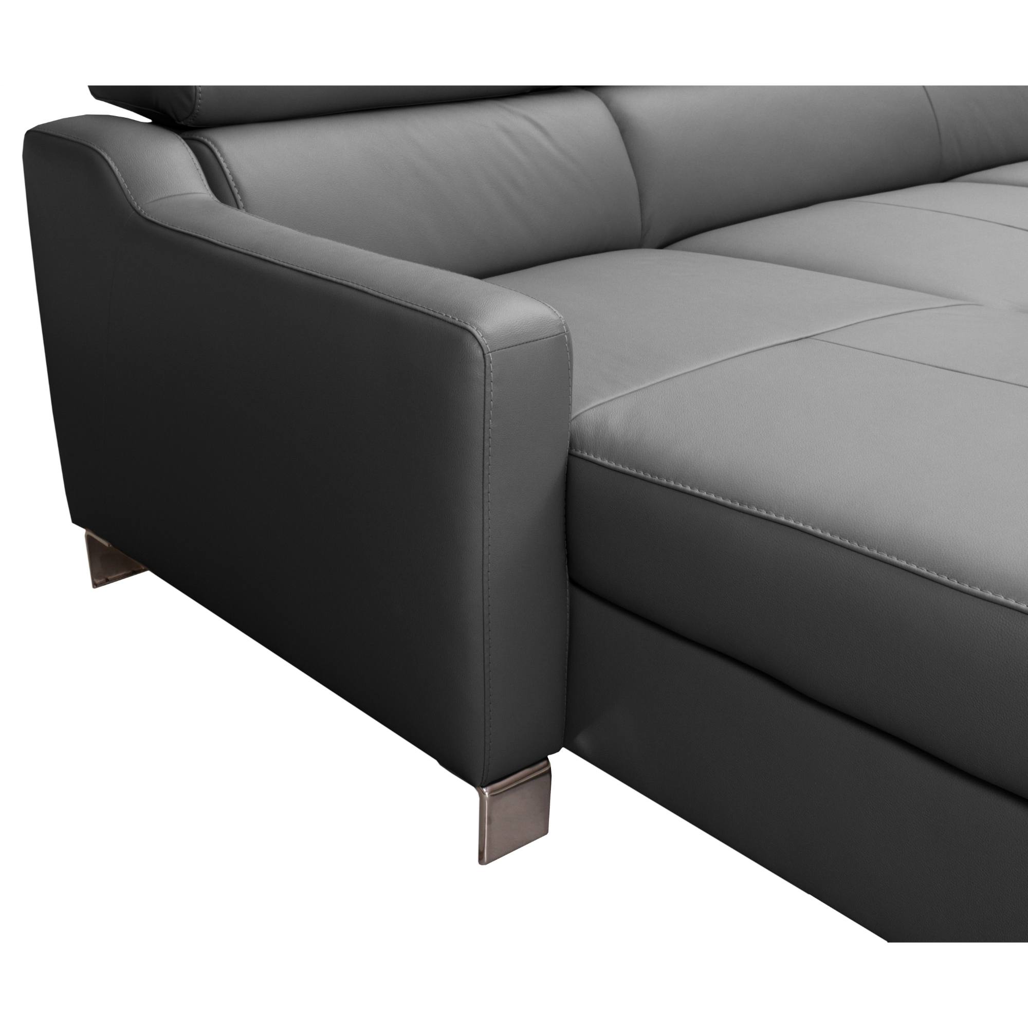 O vaše pohodlie sa postarajú polohovateľné opierky hlavy, ktoré si môžete jednoducho manuálne nastaviť podľa potreby. Svojou veľkosťou poskytne príjemné sedenie až pre 3 osoby. Sedadlo je tvorené vlnovými pružinami a veľmi kvalitnou studenou penou. V kombinácii s koženým poťahom sa môžete tešiť na veľmi komfortné posedenie aj po dlhšej dobe strávenej na sedačke. Ďalej ju môžete behom chvíľky ľahko rozložiť na lôžko na občasné prespanie. Úložný priestor v otomane uschová všetky lôžkoviny, ktoré tak budete mať vždy po ruke. Pochrómované nôžky zvýrazňujú nielen elegantný vzhľad gauča, ale taktiež zaistia jeho stabilitu. Priestor pod sedačkou je vďaka nim ľahko prístupný, a tak udržanie poriadku pod sedačkou nie je žiadna veda. Poťah z pravej kože v kombinácii so syntetickou kožou.