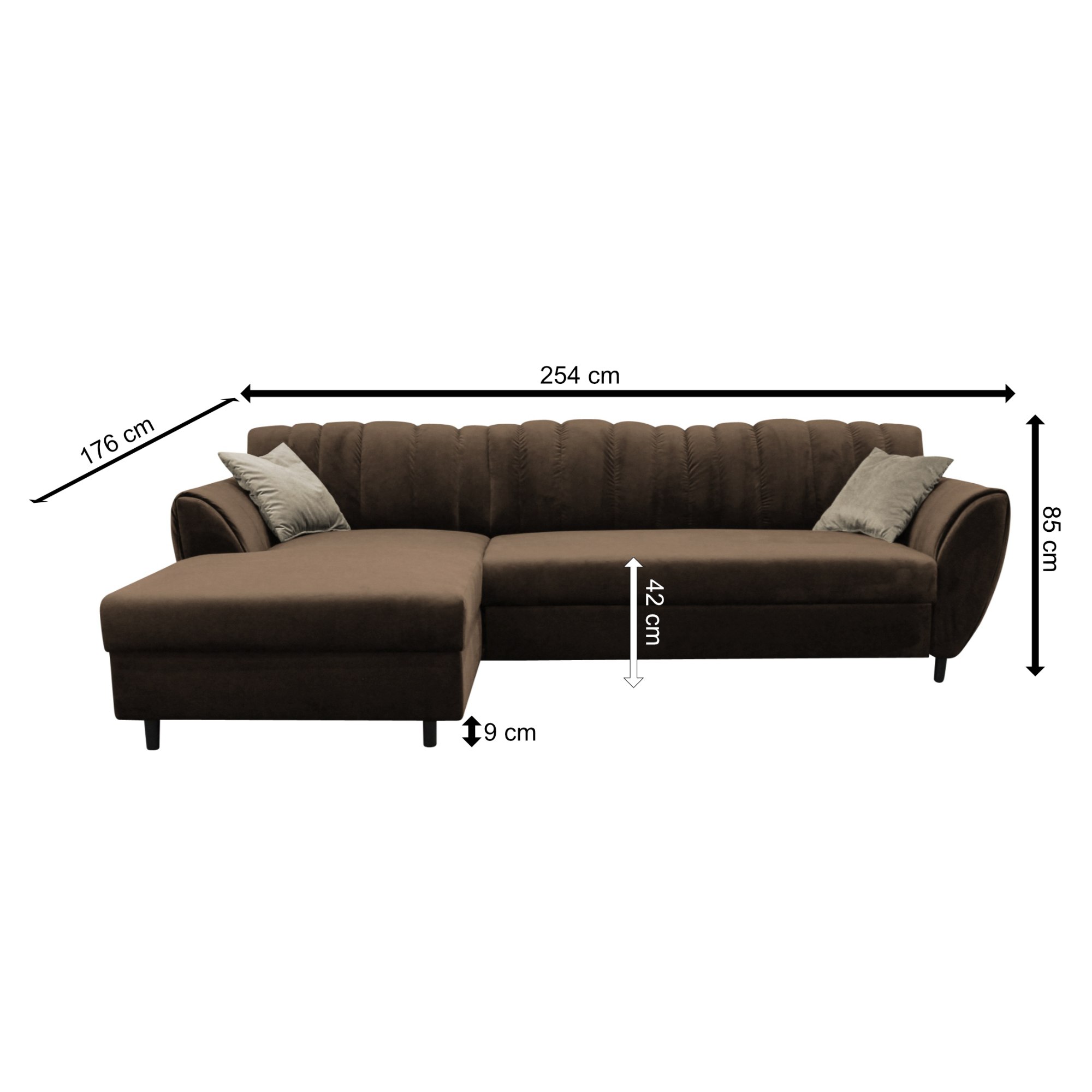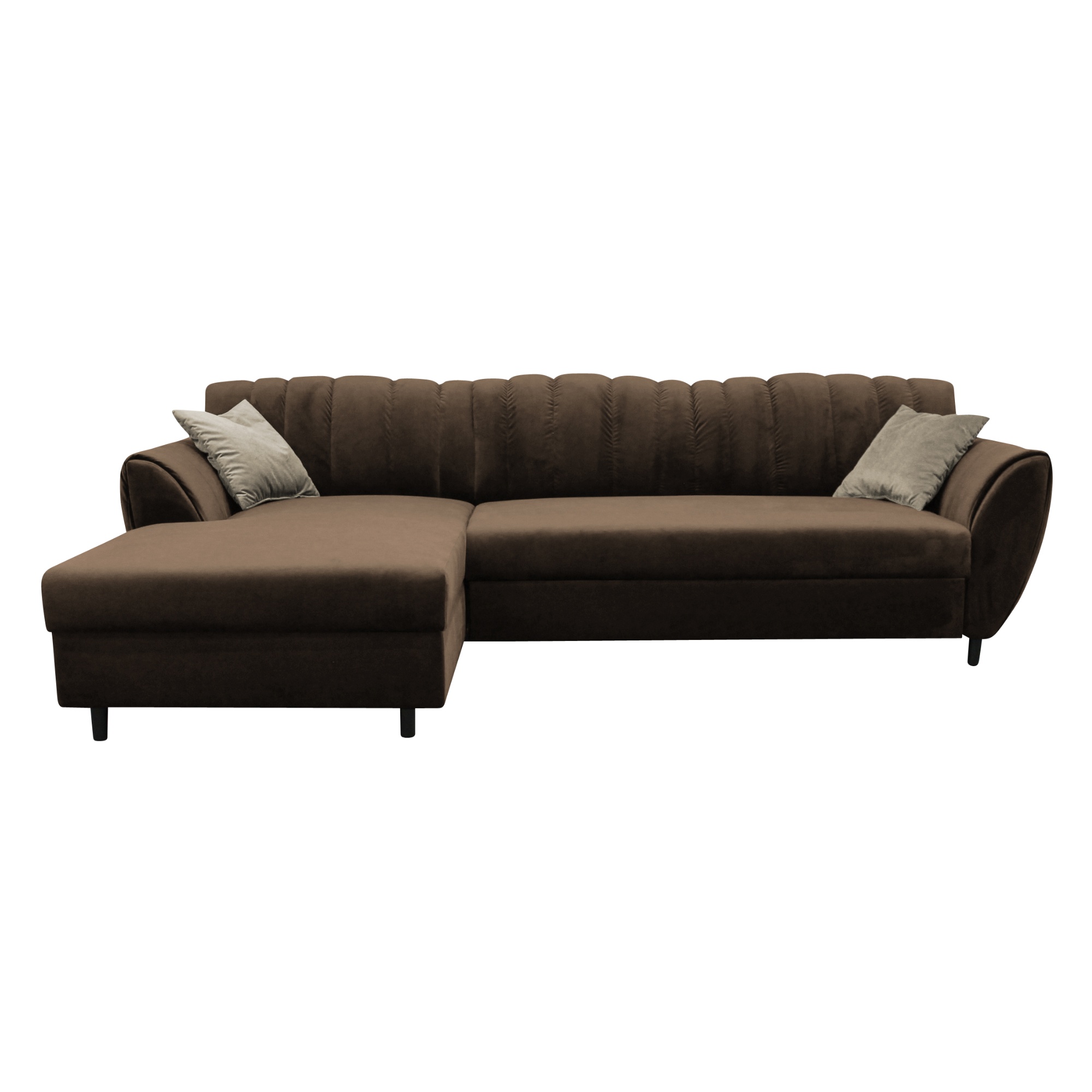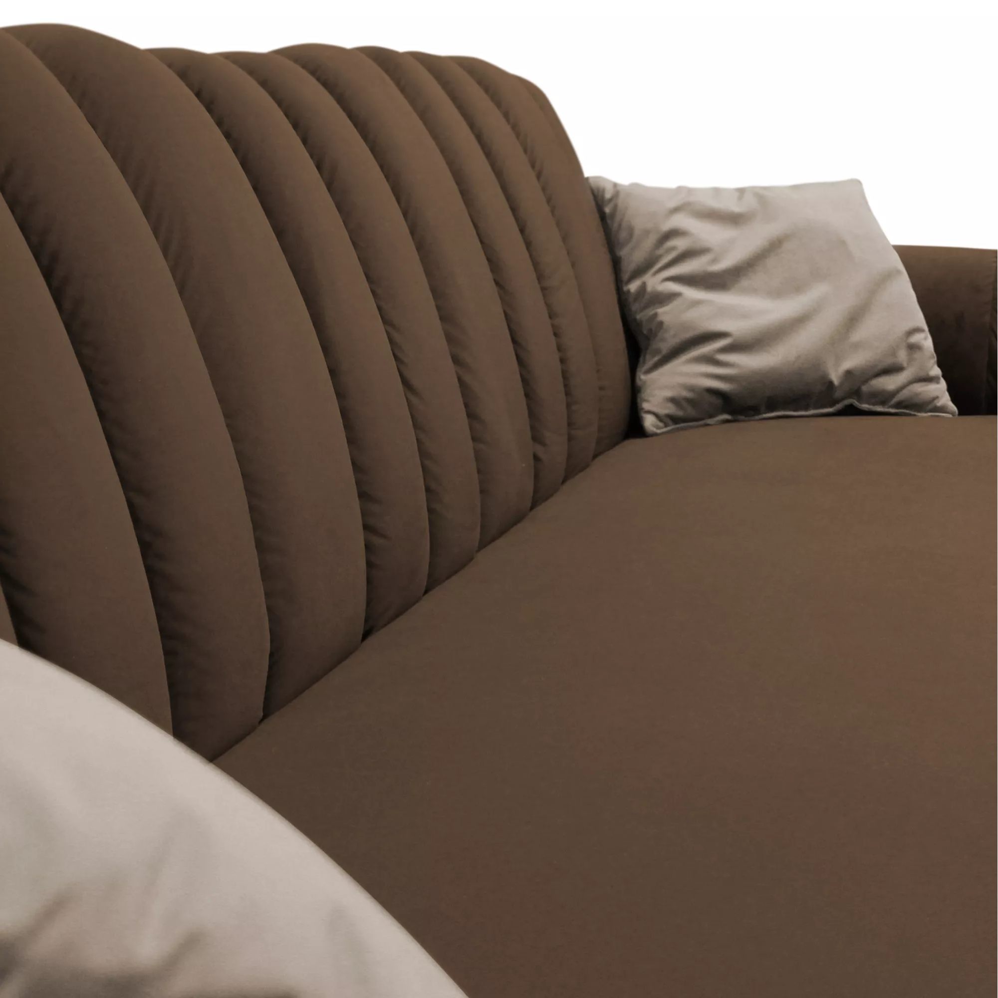 Oblé tvary aj výrazne prešívané operadlo vytvára plochu na relaxáciu všetkým členom domácnosti. Penové jadro, tkanina zamatového vzhľadu príjemná na dotyk a dekoračné vankúšiky priamo nabádajú k odpočinku. Gauč svojou veľkosťou ponúka nielen komfortné sedenie, ale bez problémov vyrieši aj uloženie návštevy a poskytne provizórne lôžko na prenocovanie. Počas chvíľky premeníte pohovku na pohodlné lôžko určené na občasné prespanie. Pohovka navyše disponuje aj úložným priestorom otomanu, takže budete mať lôžkoviny vždy po ruke.