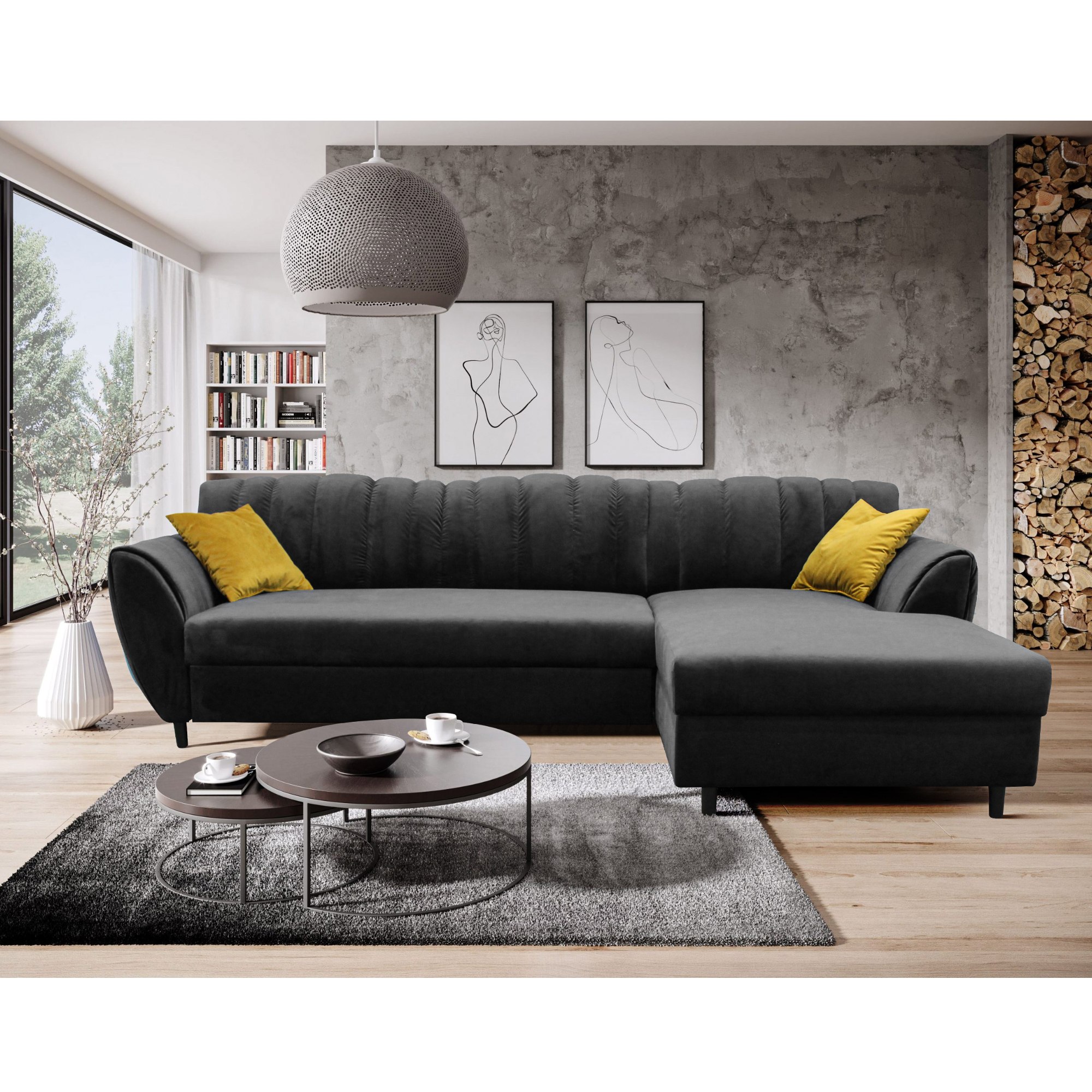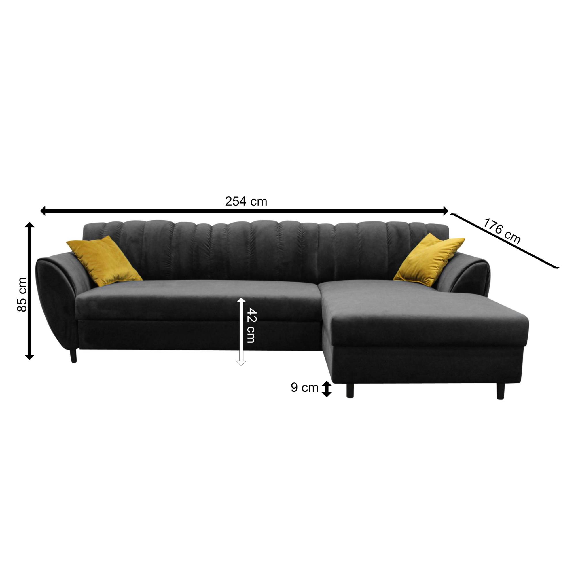 Sedacia súprava DIVA - pravá, antracitová/žltá