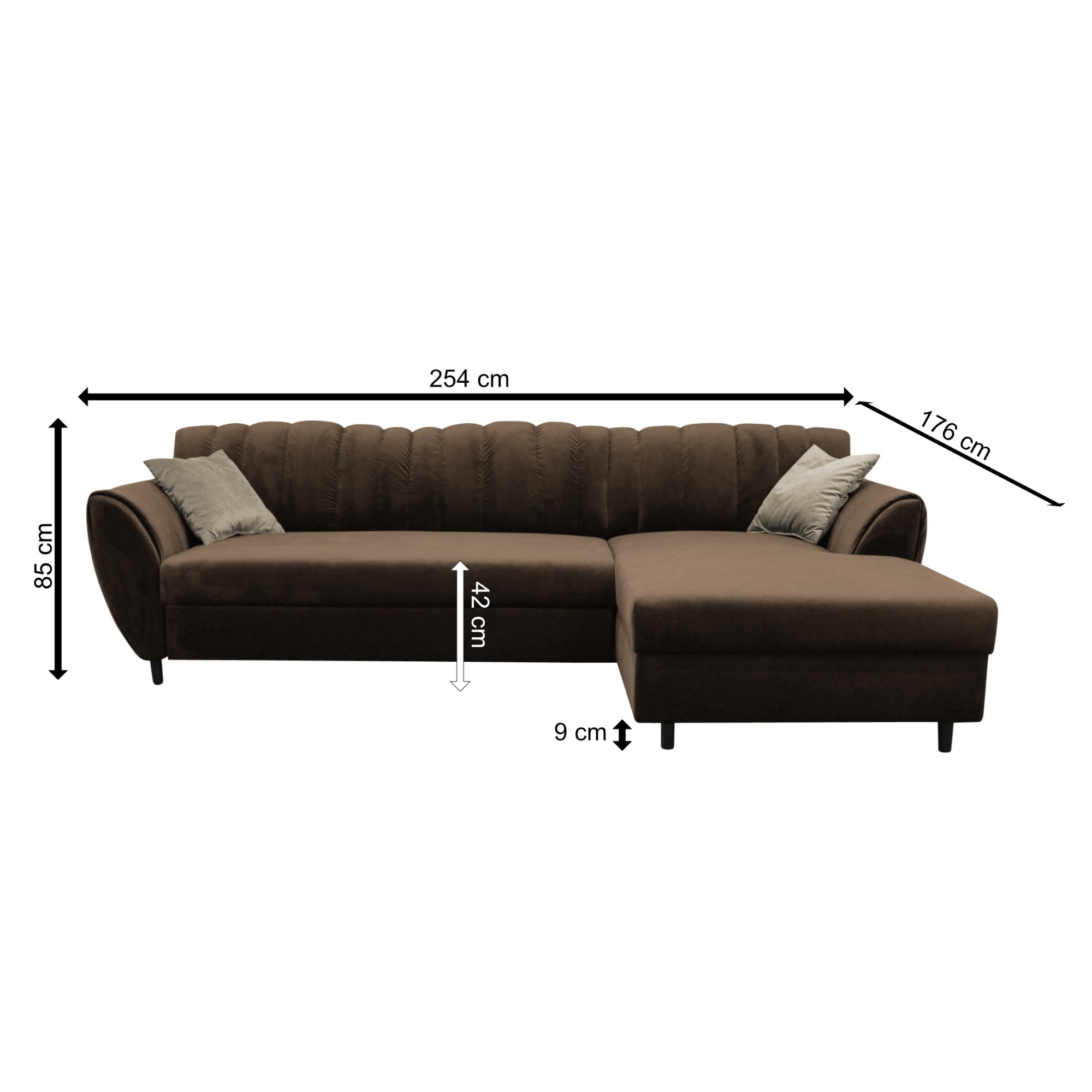 Oblé tvary aj výrazne prešívané operadlo vytvára plochu na relaxáciu všetkým členom domácnosti. Penové jadro, tkanina zamatového vzhľadu príjemná na dotyk a dekoračné vankúšiky priamo nabádajú k odpočinku. Gauč svojou veľkosťou ponúka nielen komfortné sedenie, ale bez problémov vyrieši aj uloženie návštevy a poskytne provizórne lôžko na prenocovanie. Počas chvíľky premeníte pohovku na pohodlné lôžko určené na občasné prespanie. Pohovka navyše disponuje aj úložným priestorom otomanu, takže budete mať lôžkoviny vždy po ruke.