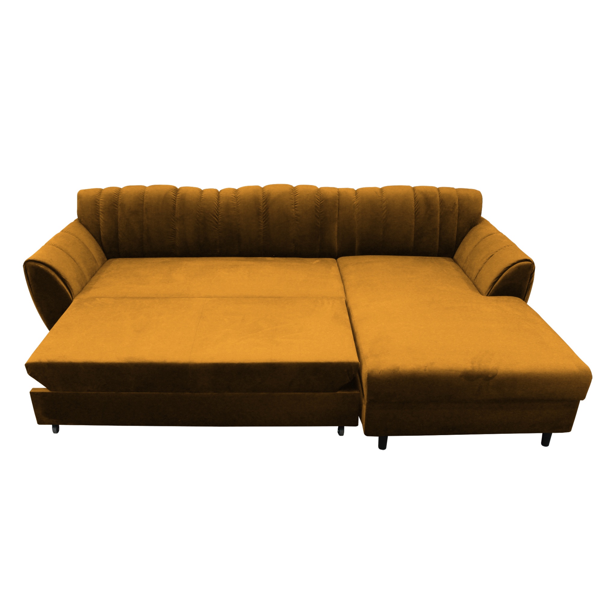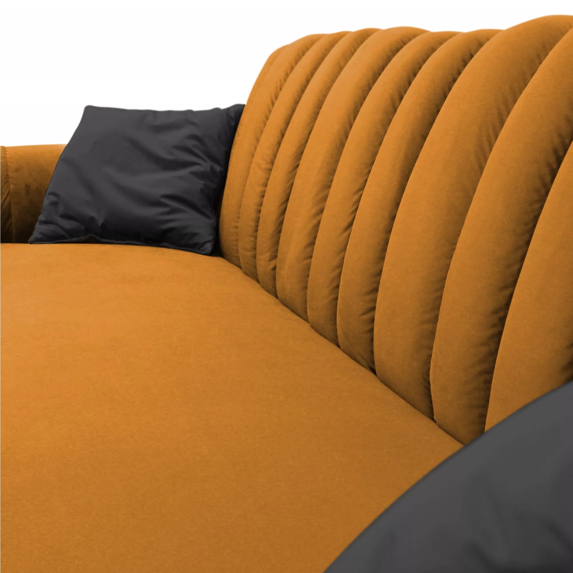 Oblé tvary aj výrazne prešívané operadlo vytvára plochu na relaxáciu všetkým členom domácnosti. Penové jadro, tkanina zamatového vzhľadu príjemná na dotyk a dekoračné vankúšiky priamo nabádajú k odpočinku. Gauč svojou veľkosťou ponúka nielen komfortné sedenie, ale bez problémov vyrieši aj uloženie návštevy a poskytne provizórne lôžko na prenocovanie. Počas chvíľky premeníte pohovku na pohodlné lôžko určené na občasné prespanie. Pohovka navyše disponuje aj úložným priestorom otomanu, takže budete mať lôžkoviny vždy po ruke.