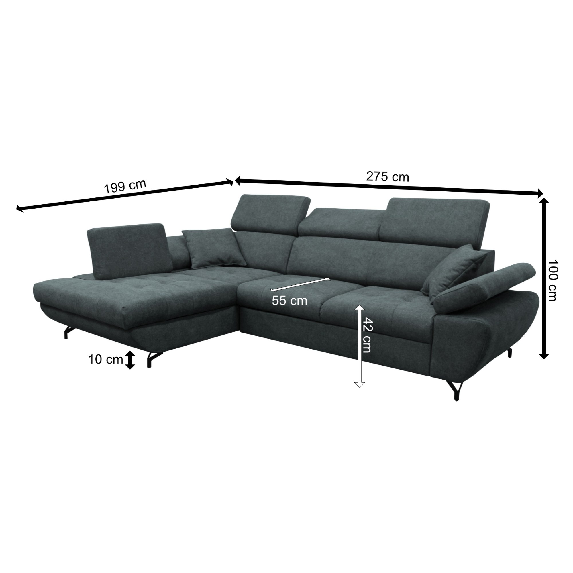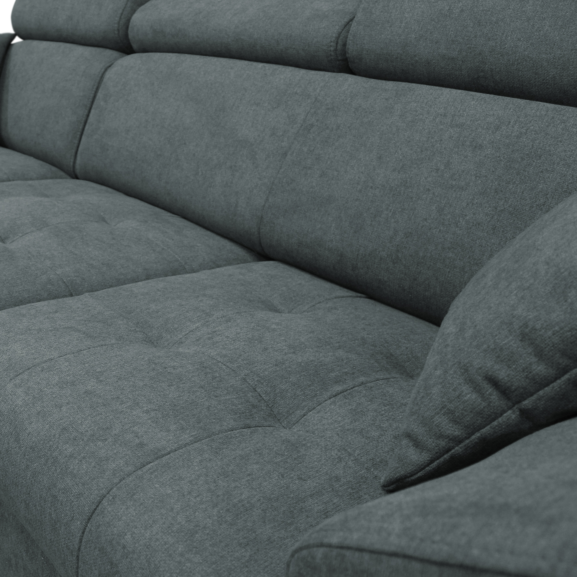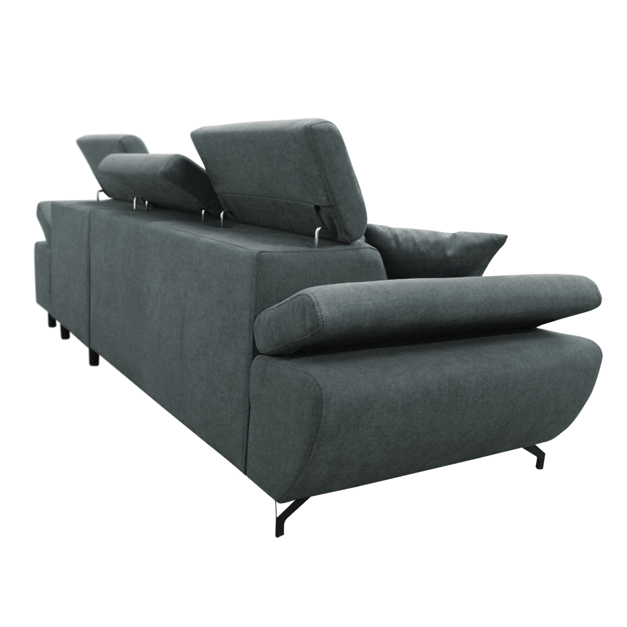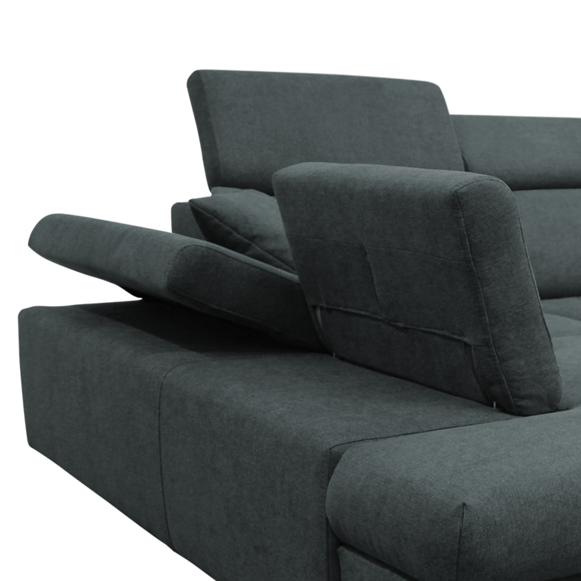 Reprezentatívny vzhľad a praktické funkcie, ktoré jednoducho prispôsobíte aktuálnym potrebám, sú najväčšími prednosťami tejto sedačky. Oblé tvary v kombinácii s polohovacími podhlavníkmi a podrúčkami umocnia príjemný pocit z relaxácie. To všetko dohromady vytvára elegantný kút pre vás, rodinu aj návštevu. Ďalšou prednosťou tejto sedačky je jej poťahová tkanina, ktorá je nielen príjemná na dotyk, ale navyše je pokrytá hydrofóbnou vrstvou. Vy tak budete mať pri prípadnej nehode čas rozliatu kvapalinu pomocou handričky alebo papierového uteráka jemne zotrieť. Sedačku tiež ľahko premeníte na lôžko na občasné prespanie. Integrovaný úložný priestor v otomane je kedykoľvek ľahko prístupný a poskytne odkladací priestor na lôžkoviny alebo napríklad sezónne oblečenie. Zadná strana sedačky je čalúnená takže gauč môže stáť aj voľne v priestore.