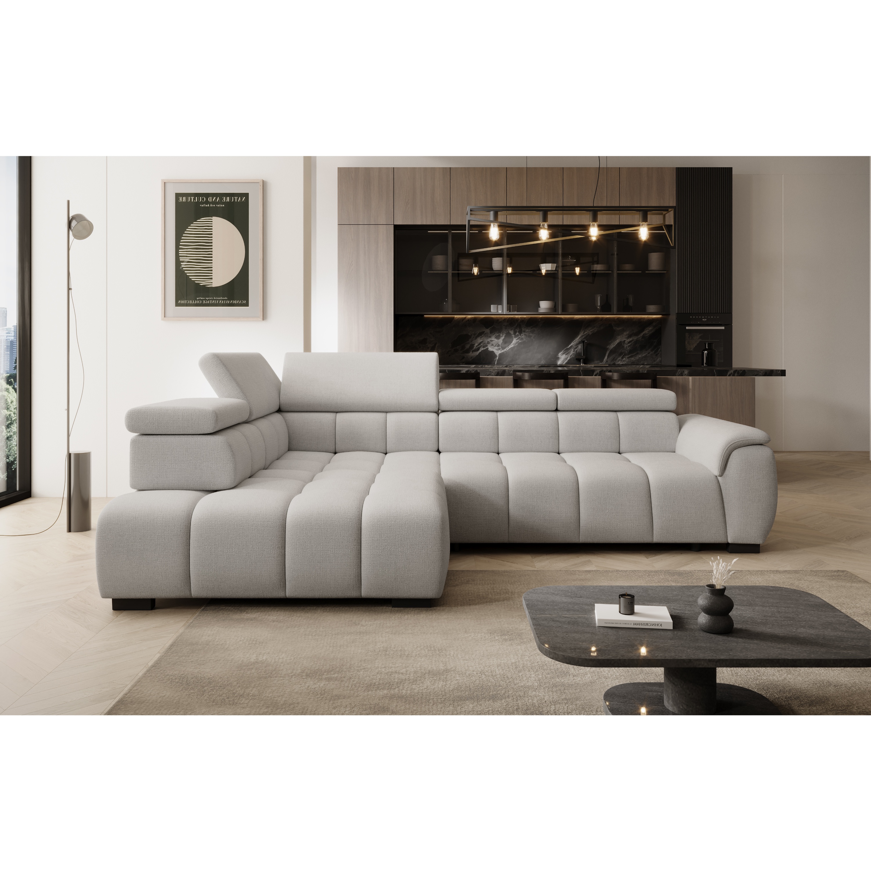 Elegantná sedacia súprava ELVAN L v rohovej verzii je ako stvorená na chvíle oddychu aj rodinné stretnutia. Vďaka ideálnemu spojeniu štýlového dizajnu a funkčnosti ľahko zapadne do moderných interiérov.