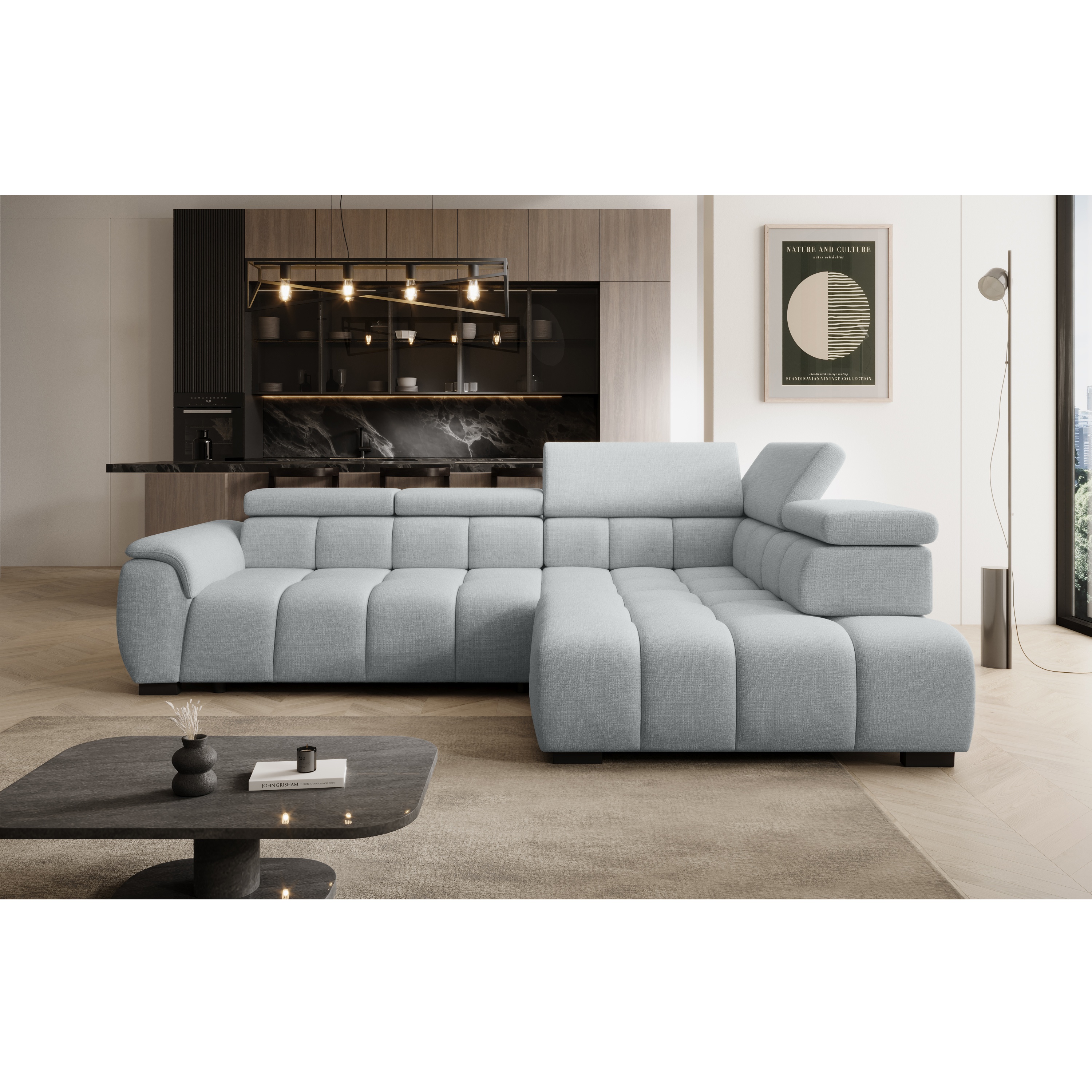 Elegantná sedacia súprava ELVAN L v rohovej verzii je ako stvorená na chvíle oddychu aj rodinné stretnutia. Vďaka ideálnemu spojeniu štýlového dizajnu a funkčnosti ľahko zapadne do moderných interiérov.