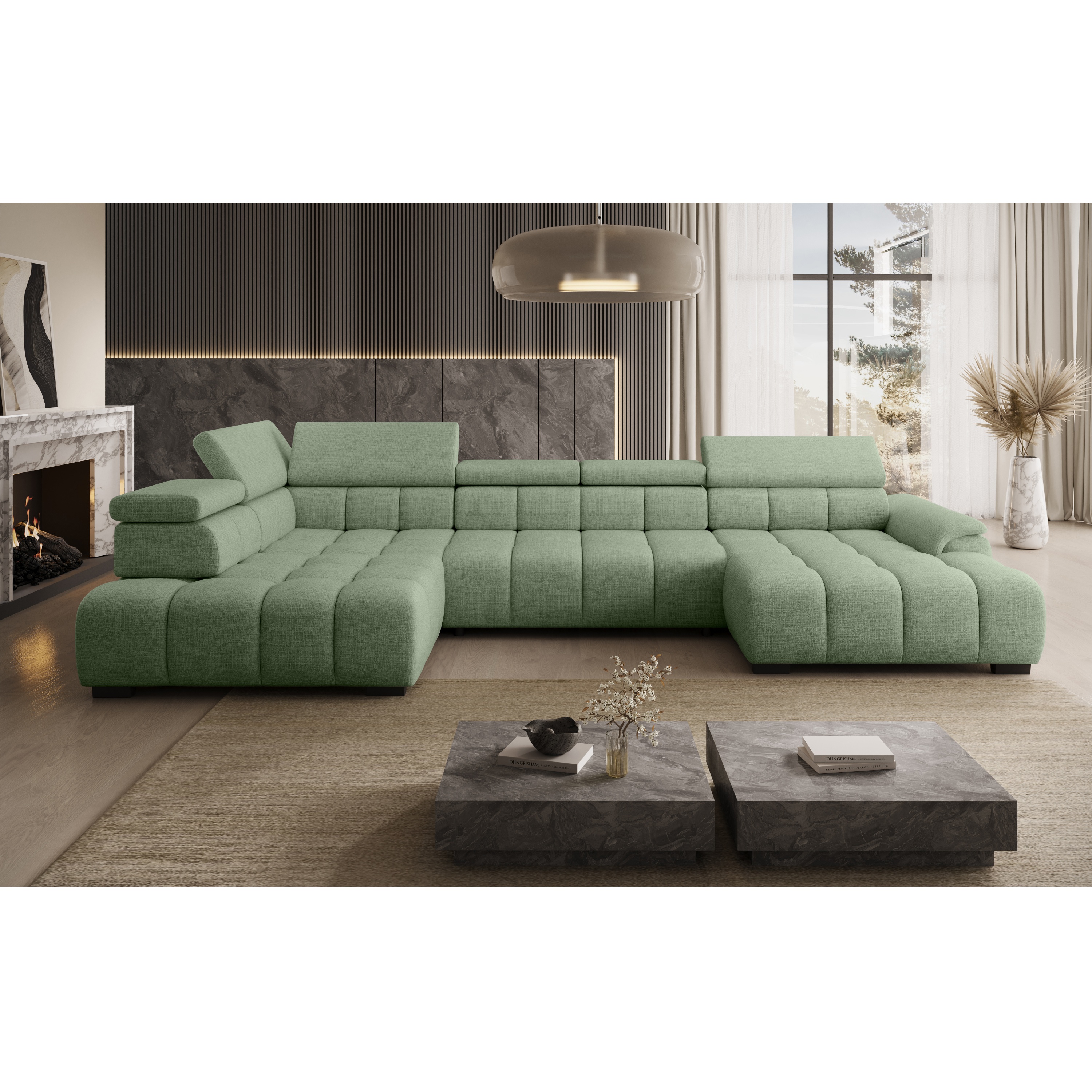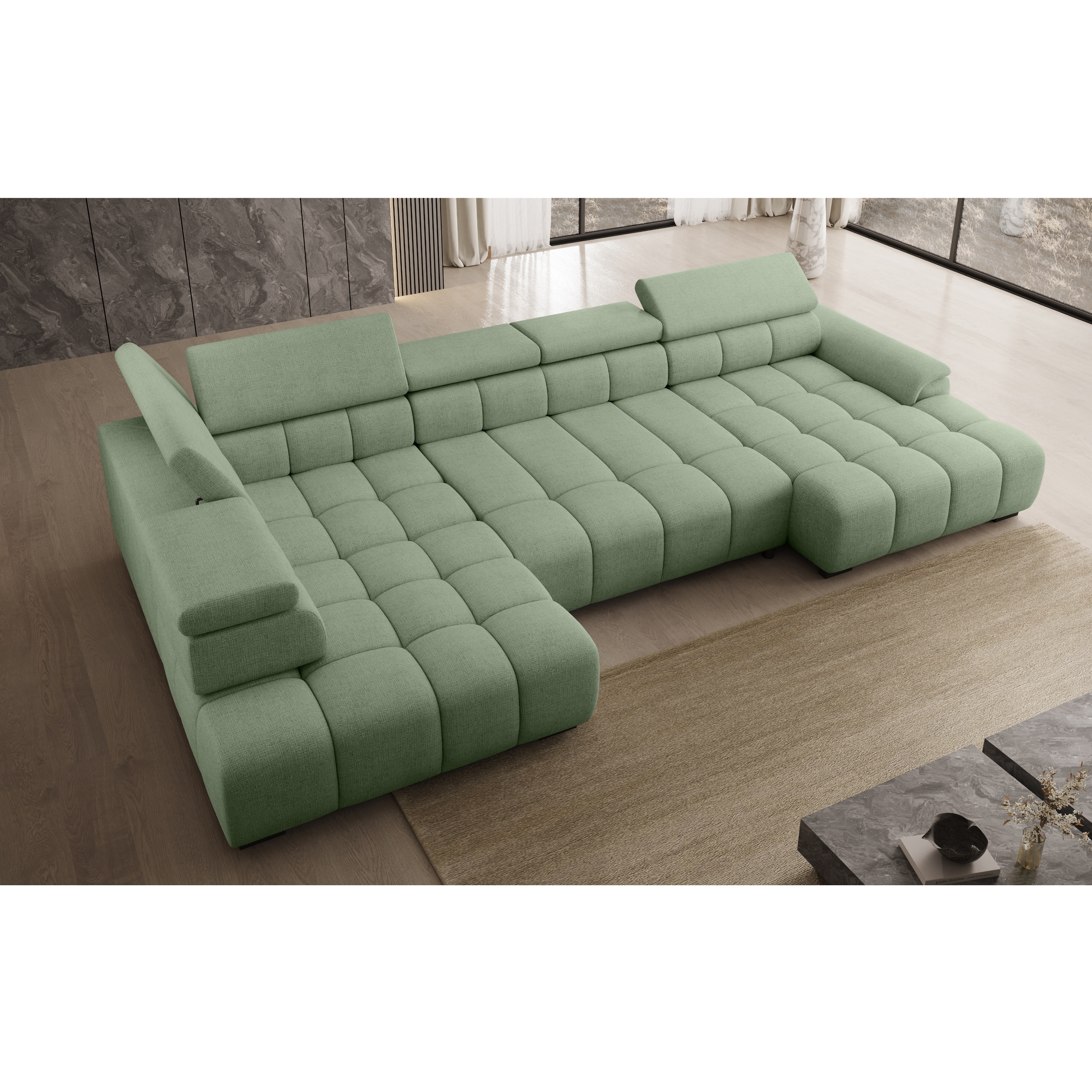 Konštrukcia vyrobená v kombinácii drevených materiálov je čalúnená príjemnou tkaninou zo 100 % polyesteru. Sedacia súprava ponúka komfortné sedenie pre 5 osôb s výplňou z polyuretánovej peny v kombinácii s nosagovým a pásovým odpružením. Pre dosiahnutie maximálneho pohodlia sedačka umožňuje elektrické nastavenie hĺbky sedu a je vybavená aj 6 polohovateľnými opierkami hlavy. Vďaka možnosti zväčšenia sedacej plochy môžete sedačku využiť aj ako dodatočné lôžko na občasné prespanie vašich hostí.