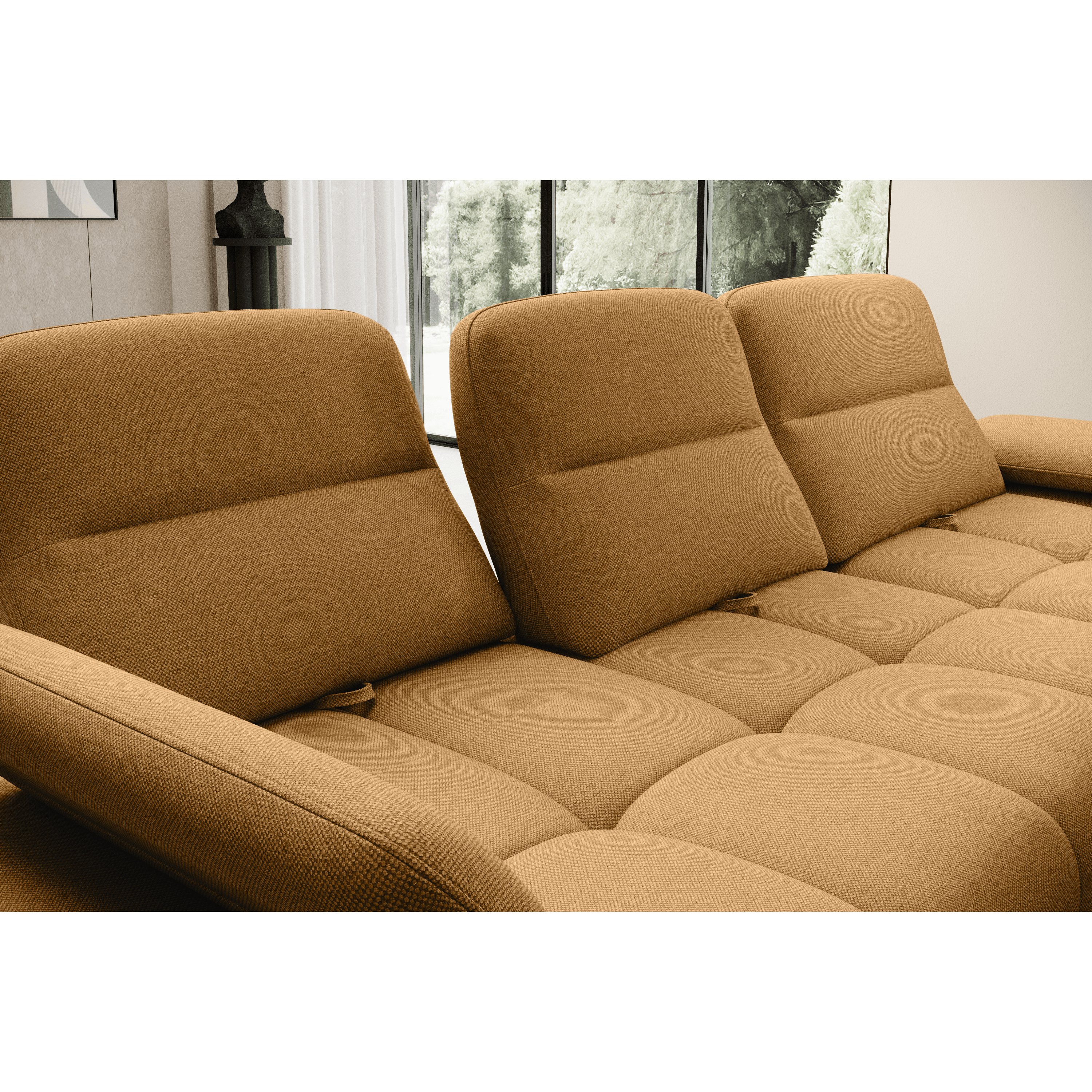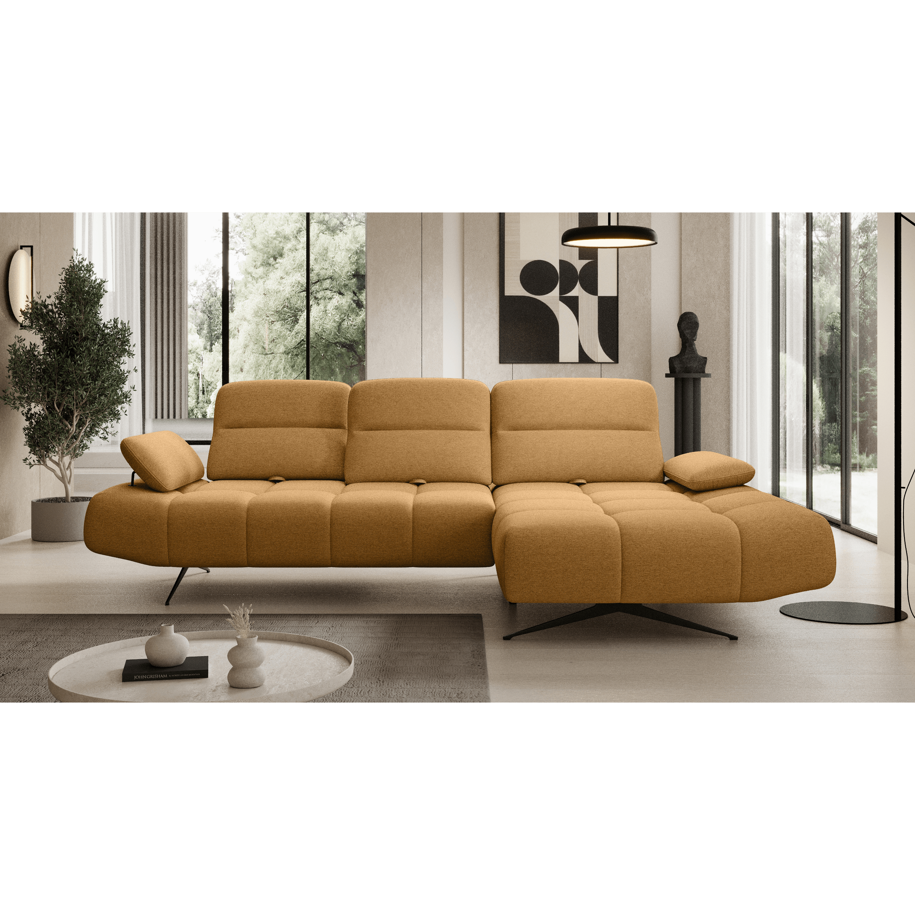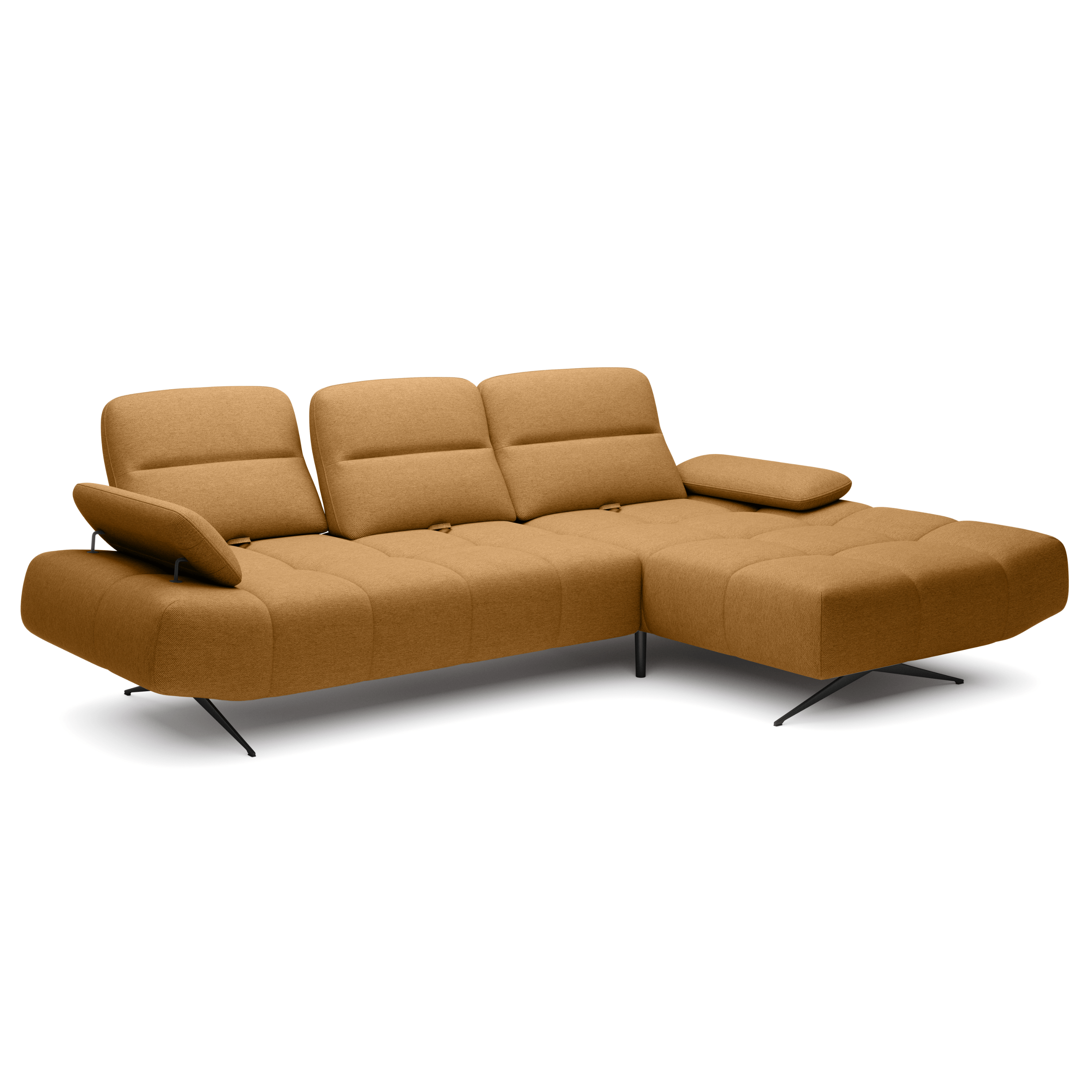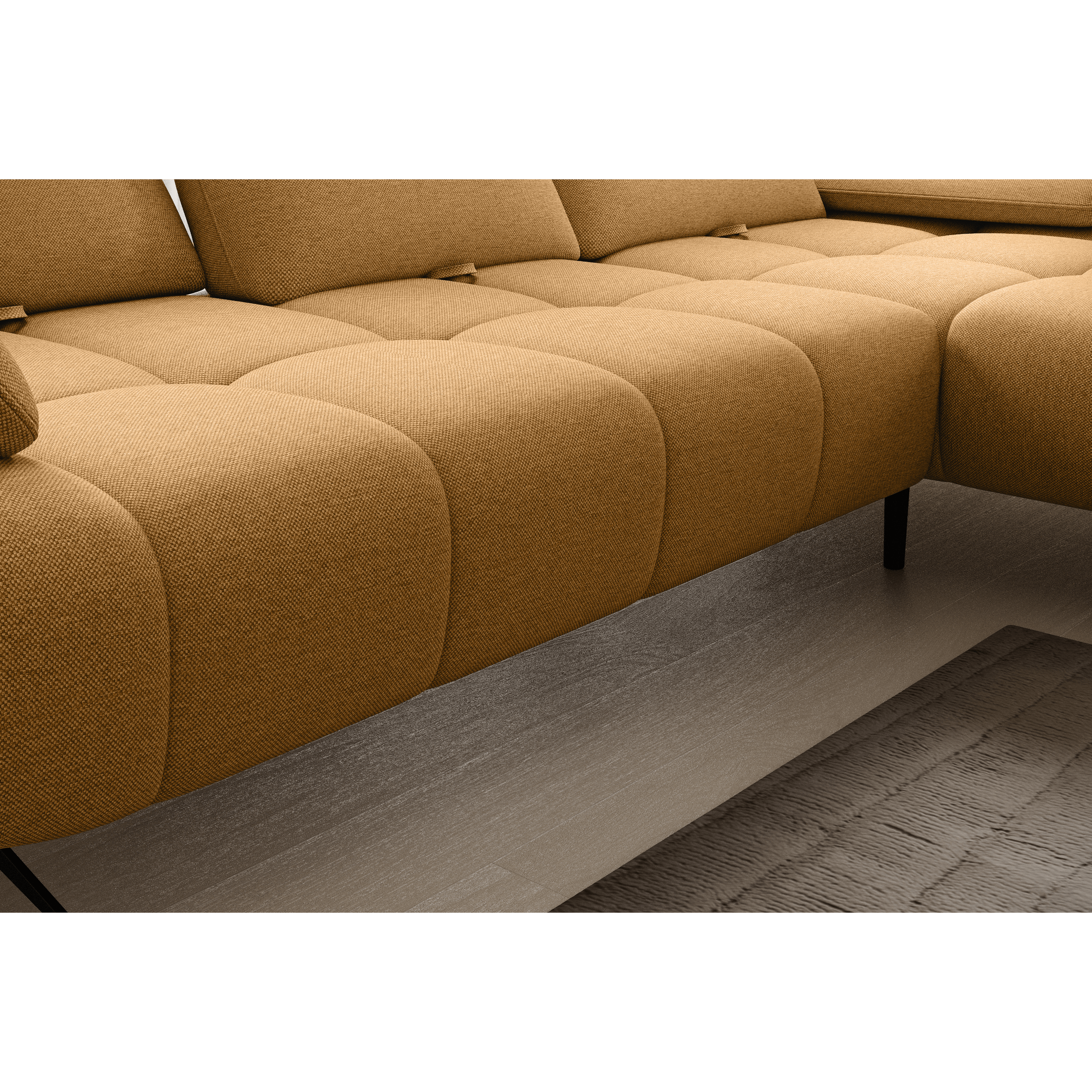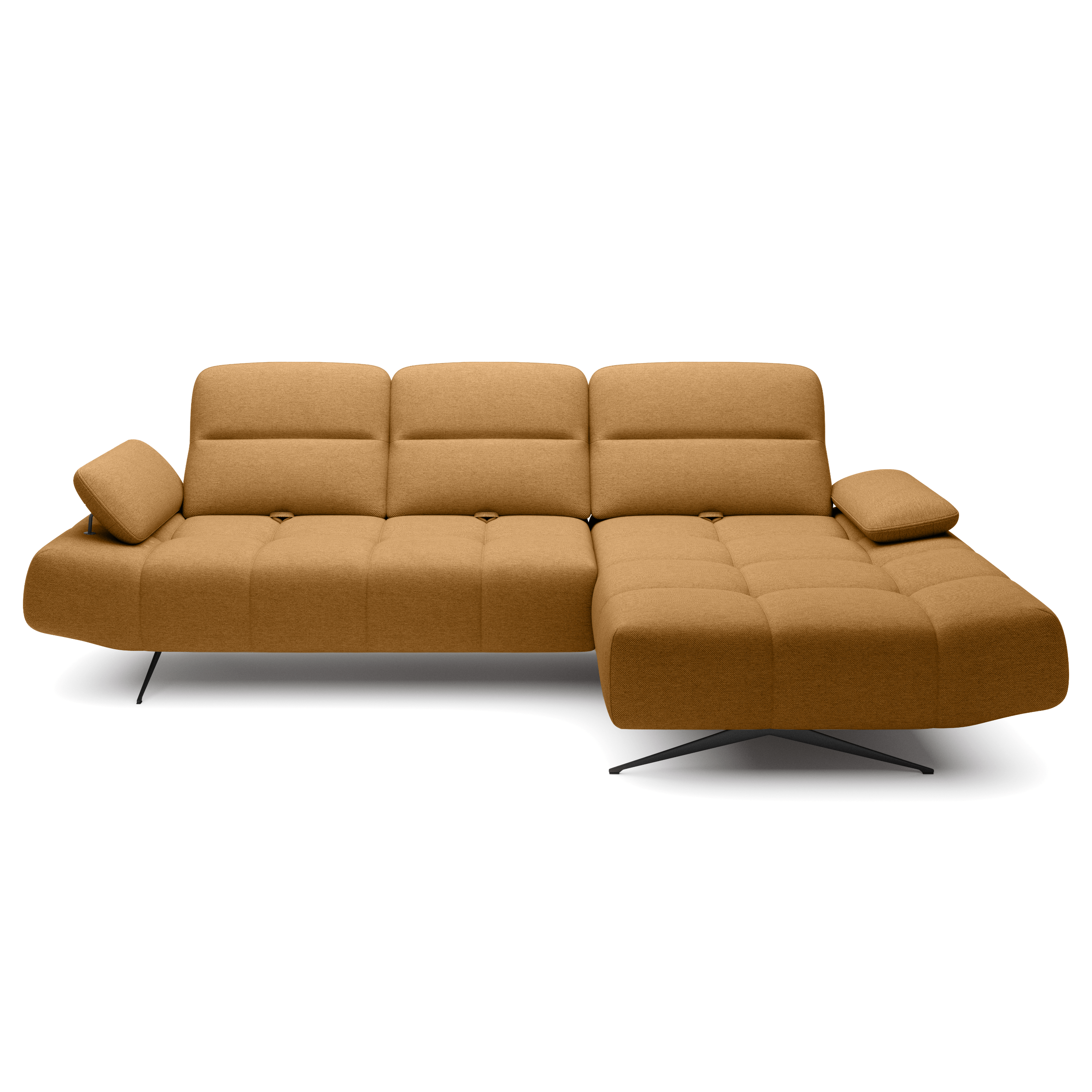 Oblé tvary v kombinácii s polohovateľnými podhlavníkmi a podrúčkami vytvárajú elegantný kút na relax a oddych. Výplň tvorí polyuretánová pena v kombinácii s nosagovým odpružením. Udržiavanie poriadku pod sedačkou zvládnete hravo, vďaka kovovým nožičkám je priestor pod sedačkou ľahko prístupný.