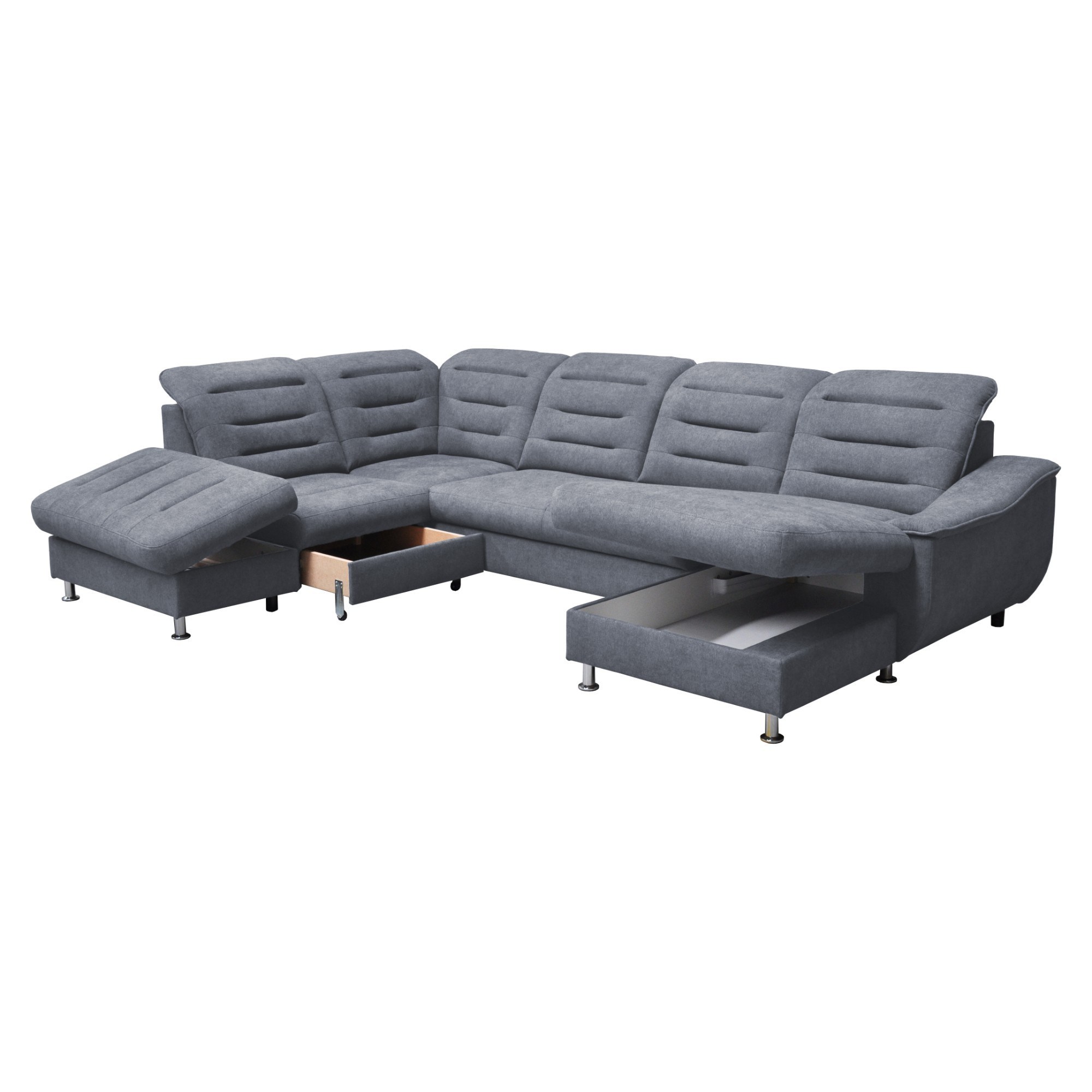 Priestranná sedacia súprava FLORENCIA ponúka dostatok miesta a komfortné sedenie pre početnú rodinu a neočakávanú návštevu. Polohovacie podhlavníky si môžete nastaviť podľa aktuálnej potreby a zaistiť si tak dokonalé zázemie na relaxáciu. Iste oceníte aj možnosť rozloženia na priestranné lôžko na občasné prespanie a integrovaný úložný priestor, ktorý poskytne miesto nielen na posteľnú bielizeň. Tkanina je pokrytá špeciálnou ochrannou vrstvou, ktorá zabraňuje absorbovaniu kvapaliny: v prípade poliatia stačí použiť jemnú handričku. Celočalúnené vyhotovenie vám dáva možnosť rozhodnúť sa podľa dispozície, či umiestnite gauč ku stene alebo do priestoru. Rohová sedačka FLORENCIA dodá vašej obývačke nevšednú iskru a získa si vás svojím elegantným vzhľadom a praktickými funkciami.