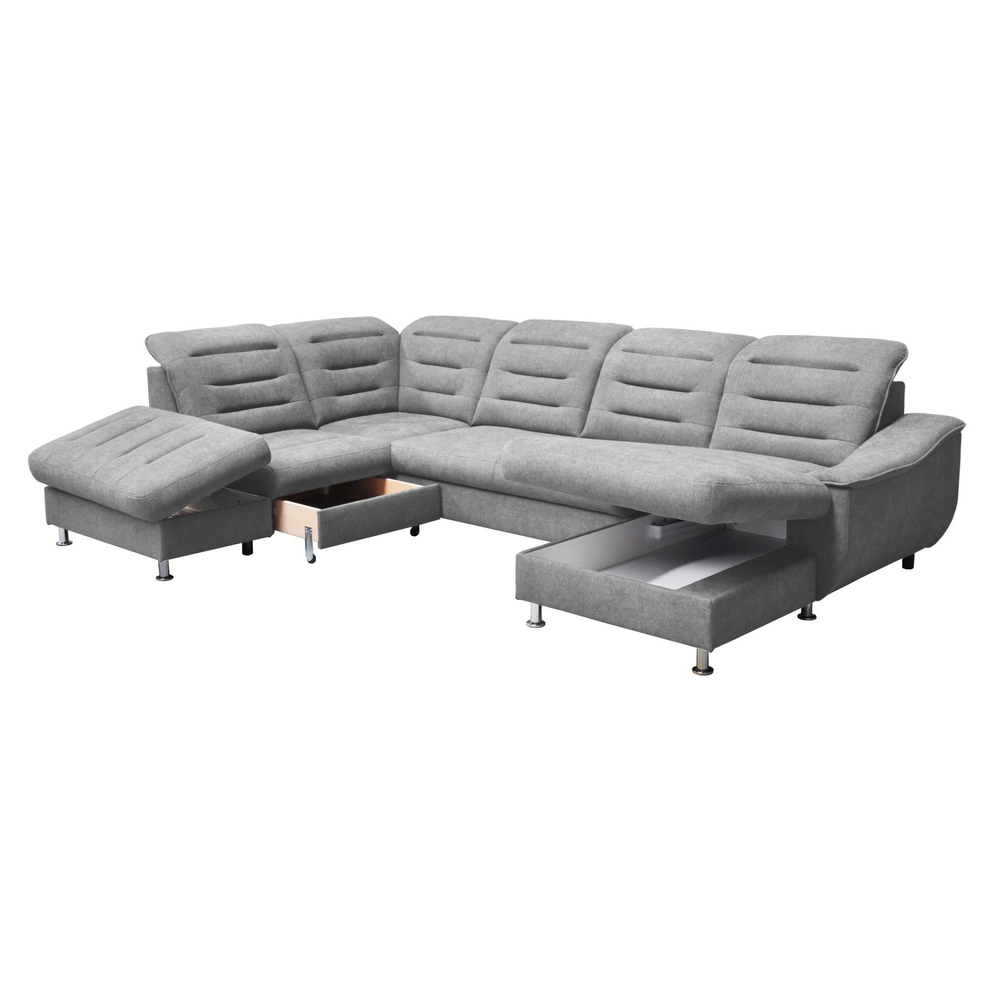 Priestranná sedacia súprava FLORENCIA ponúka dostatok miesta a komfortné sedenie pre početnú rodinu a neočakávanú návštevu. Polohovacie podhlavníky si môžete nastaviť podľa aktuálnej potreby a zaistiť si tak dokonalé zázemie na relaxáciu. Iste oceníte aj možnosť rozloženia na priestranné lôžko na občasné prespanie a integrovaný úložný priestor, ktorý poskytne miesto nielen na posteľnú bielizeň. Tkanina je pokrytá špeciálnou ochrannou vrstvou, ktorá zabraňuje absorbovaniu kvapaliny: v prípade poliatia stačí použiť jemnú handričku. Celočalúnené vyhotovenie vám dáva možnosť rozhodnúť sa podľa dispozície, či umiestnite gauč ku stene alebo do priestoru. Rohová sedačka FLORENCIA dodá vašej obývačke nevšednú iskru a získa si vás svojím elegantným vzhľadom a praktickými funkciami.