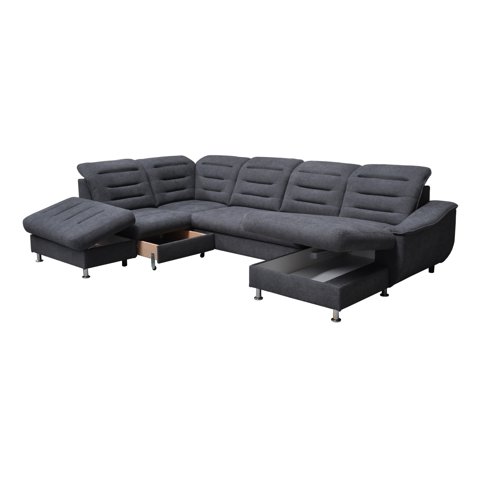 Priestranná sedacia súprava FLORENCIA ponúka dostatok miesta a komfortné sedenie pre početnú rodinu a neočakávanú návštevu. Polohovacie podhlavníky si môžete nastaviť podľa aktuálnej potreby a zaistiť si tak dokonalé zázemie na relaxáciu. Iste oceníte aj možnosť rozloženia na priestranné lôžko na občasné prespanie a integrovaný úložný priestor, ktorý poskytne miesto nielen na posteľnú bielizeň. Tkanina je pokrytá špeciálnou ochrannou vrstvou, ktorá zabraňuje absorbovaniu kvapaliny: v prípade poliatia stačí použiť jemnú handričku. Celočalúnené vyhotovenie vám dáva možnosť rozhodnúť sa podľa dispozície, či umiestnite gauč ku stene alebo do priestoru. Rohová sedačka FLORENCIA dodá vašej obývačke nevšednú iskru a získa si vás svojím elegantným vzhľadom a praktickými funkciami.