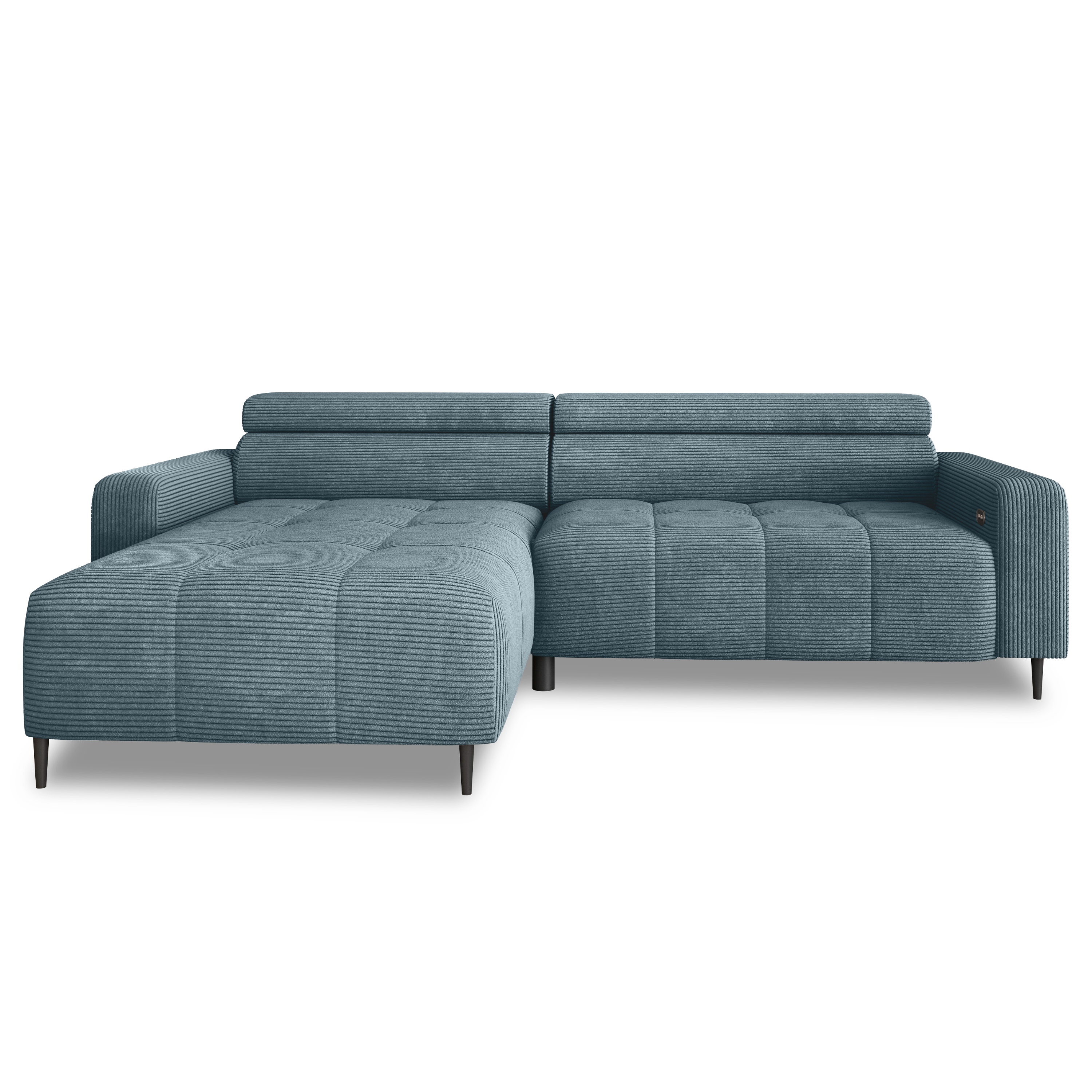 Oblé tvary v kombinácii s polohovateľnými podhlavníkmi vytvárajú elegantný kút na relax a oddych. Jednoduchým stlačením tlačidla je možné regulovať hĺbku sedu pomocou elektrického výsuvného systému až na hĺbku 89 cm. Udržiavanie poriadku pod sedačkou zvládnete hravo, vďaka kovovým nožičkám je priestor pod sedačkou ľahko prístupný.