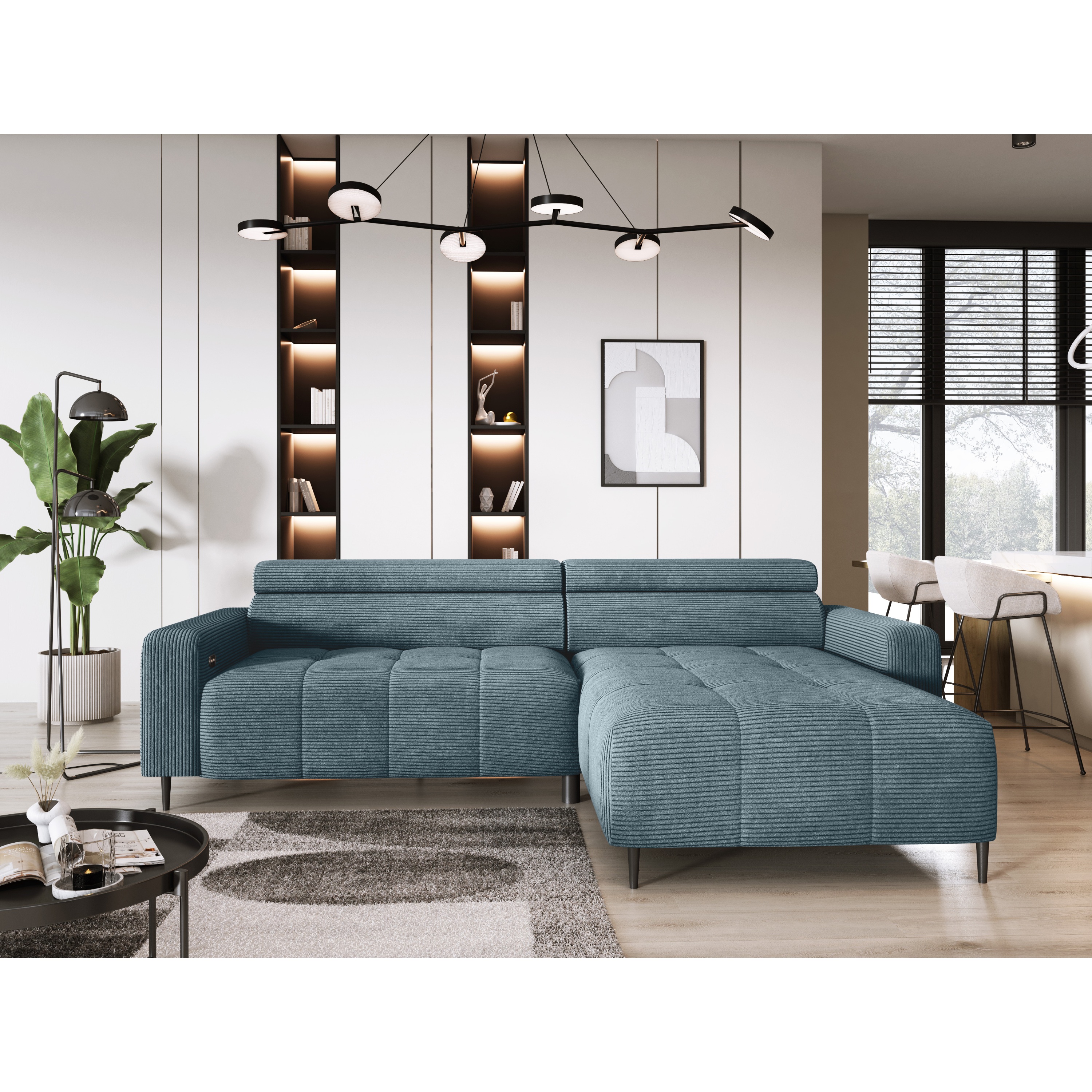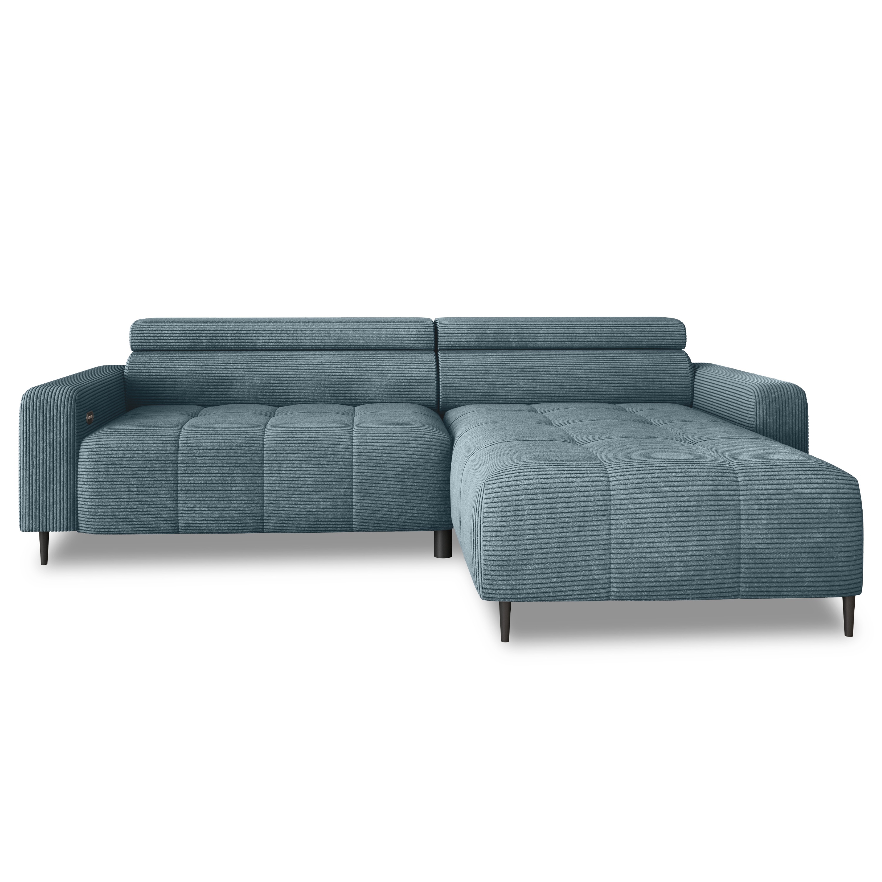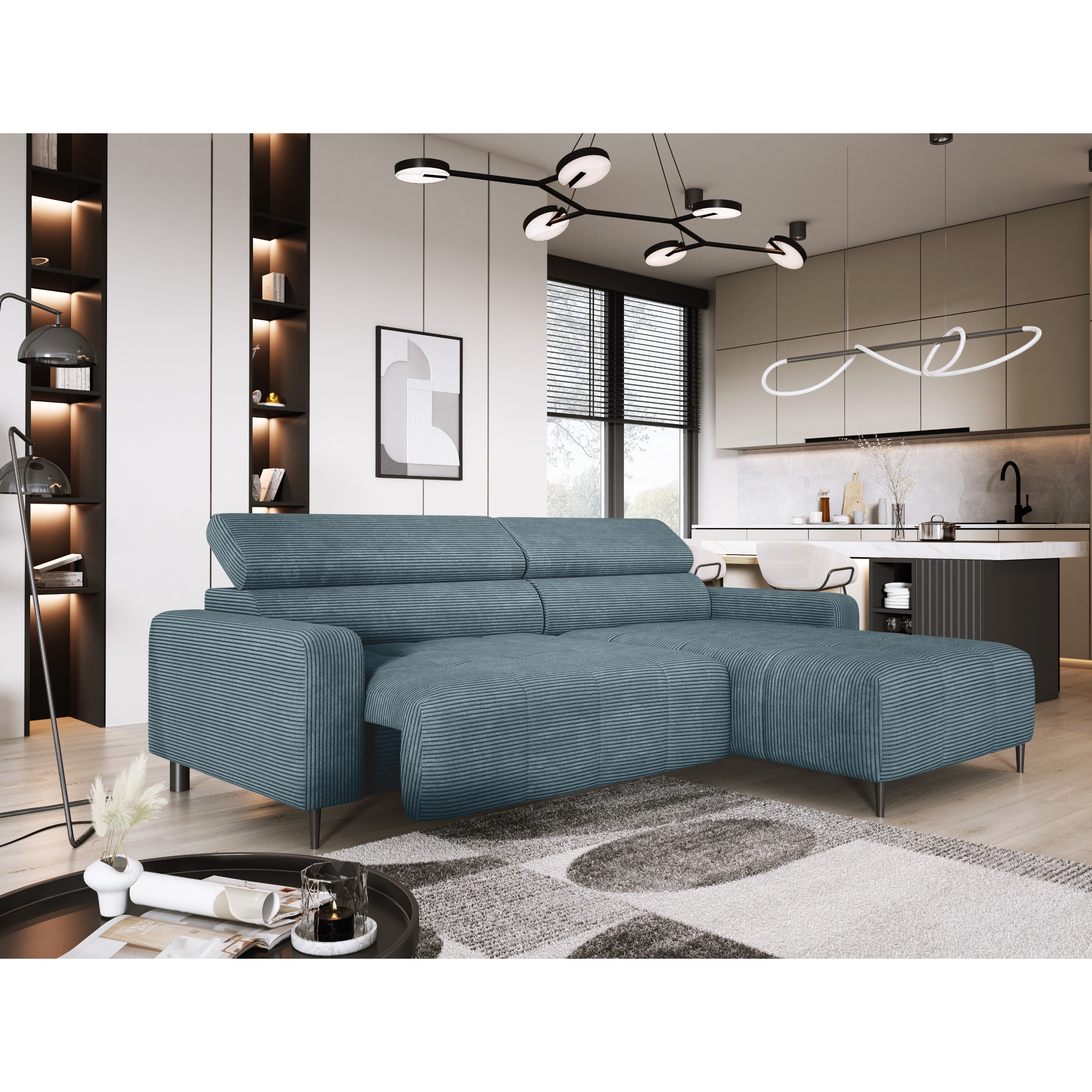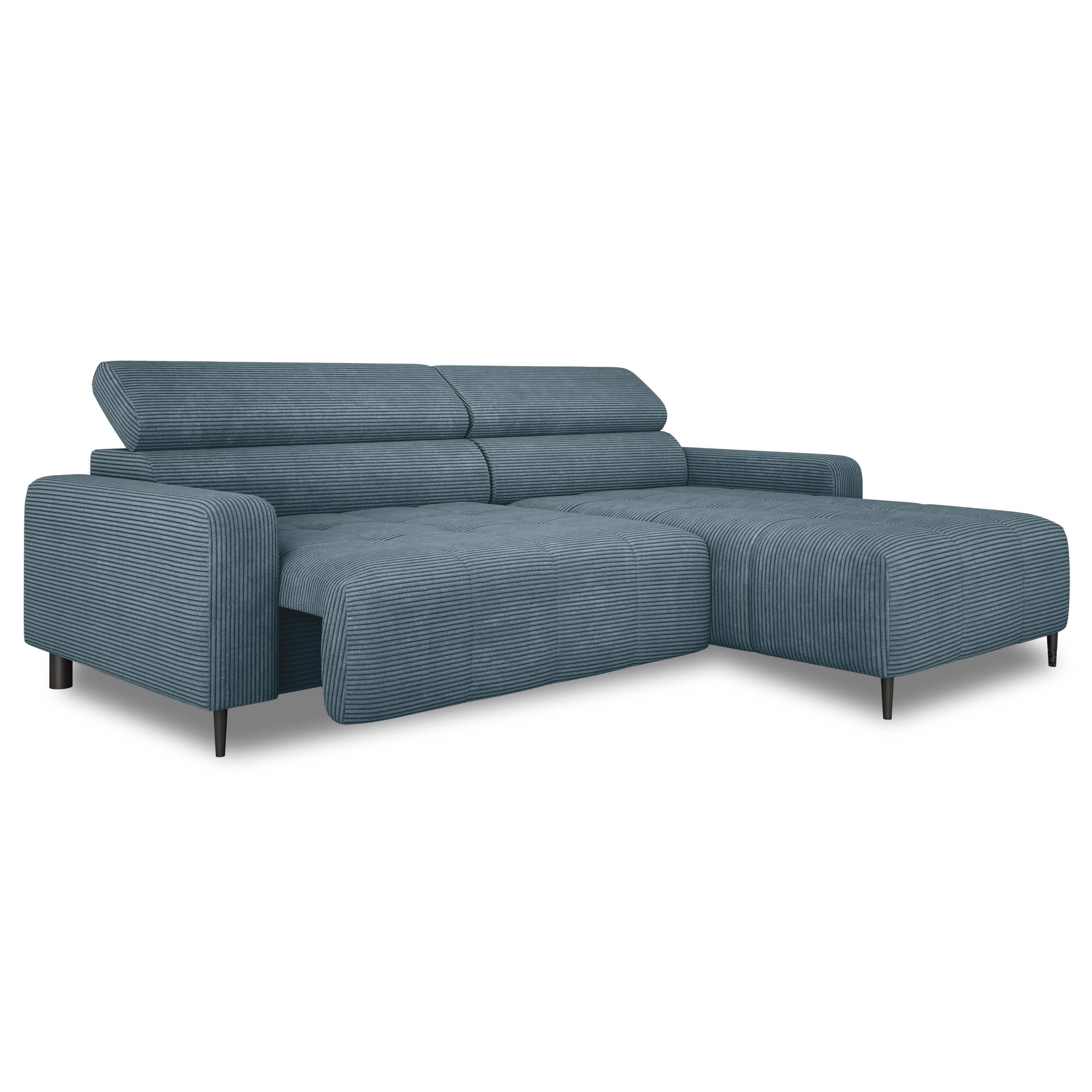 Oblé tvary v kombinácii s polohovateľnými podhlavníkmi vytvárajú elegantný kút na relax a oddych. Jednoduchým stlačením tlačidla je možné regulovať hĺbku sedu pomocou elektrického výsuvného systému až na hĺbku 89 cm. Udržiavanie poriadku pod sedačkou zvládnete hravo, vďaka kovovým nožičkám je priestor pod sedačkou ľahko prístupný.