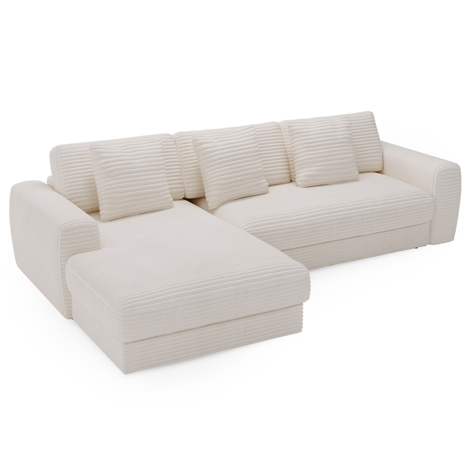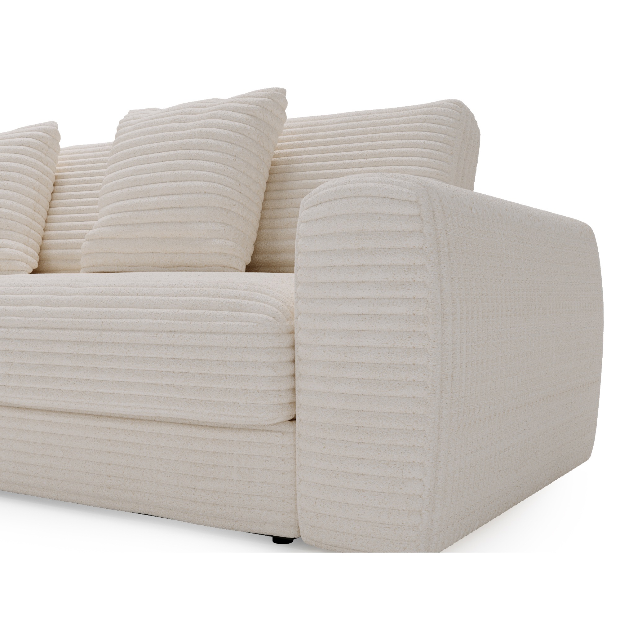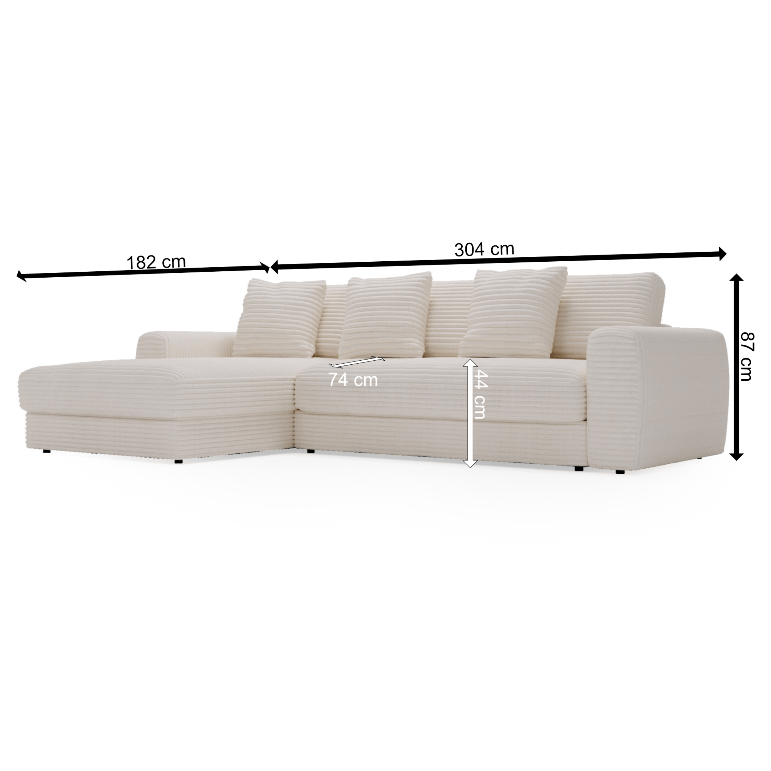 Opierky sú dostatočne vysoké nielen na opretie ruky, ale aj aby ste sa mohli na sedačke pohodlne uvelebiť napríklad pri televízii. Odnímateľné vankúše a dekoračné vankúšiky vám umožnia užívať si optimálne pohodlie. Vďaka poťahu menčestrového vzhľadu sa budete cítiť v sedačke priamo kráľovsky.