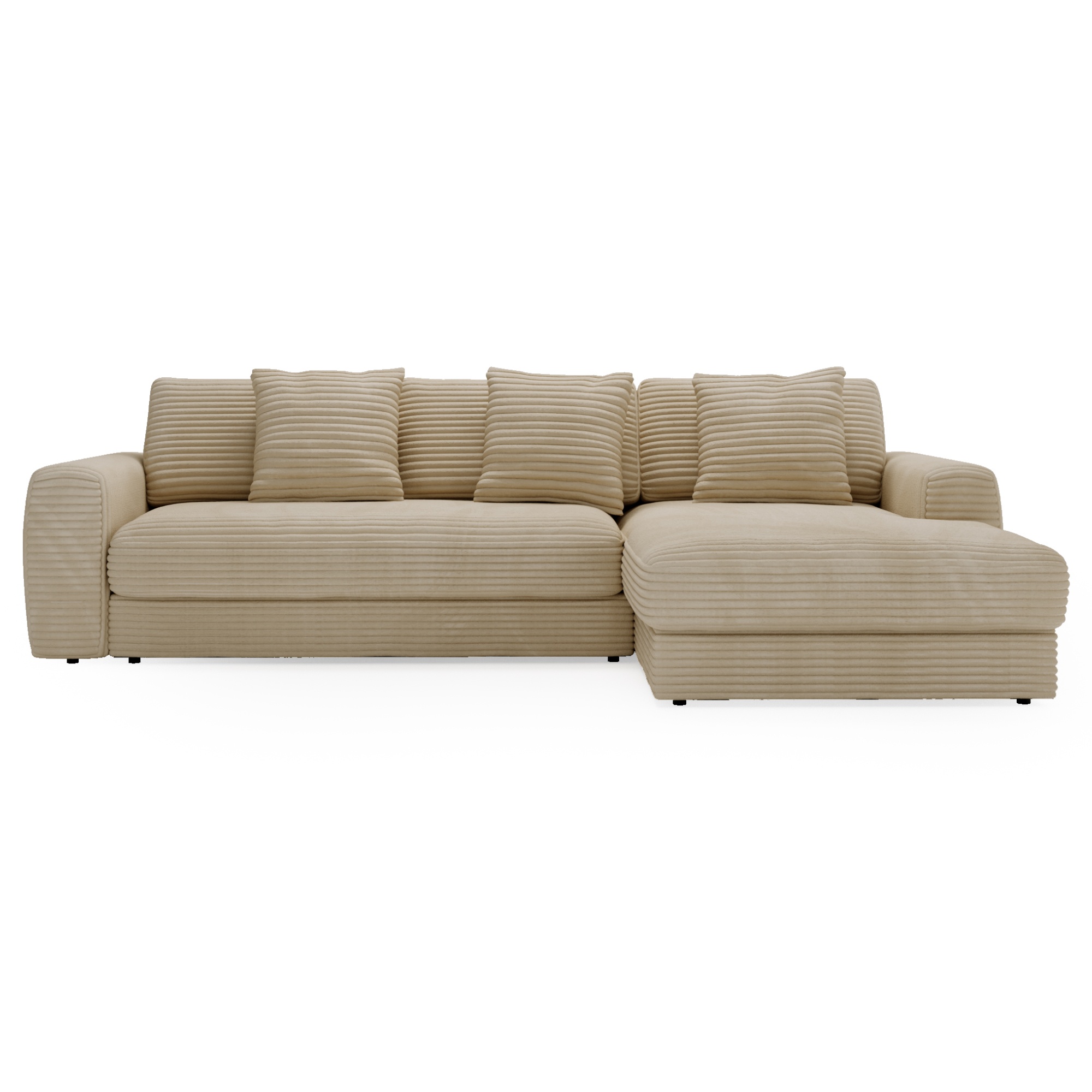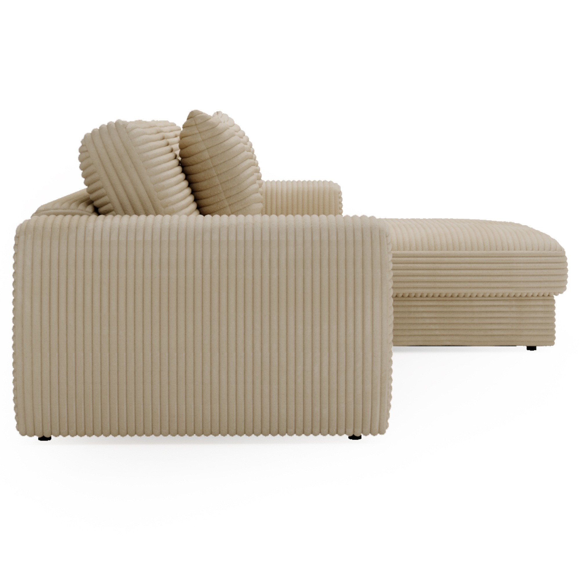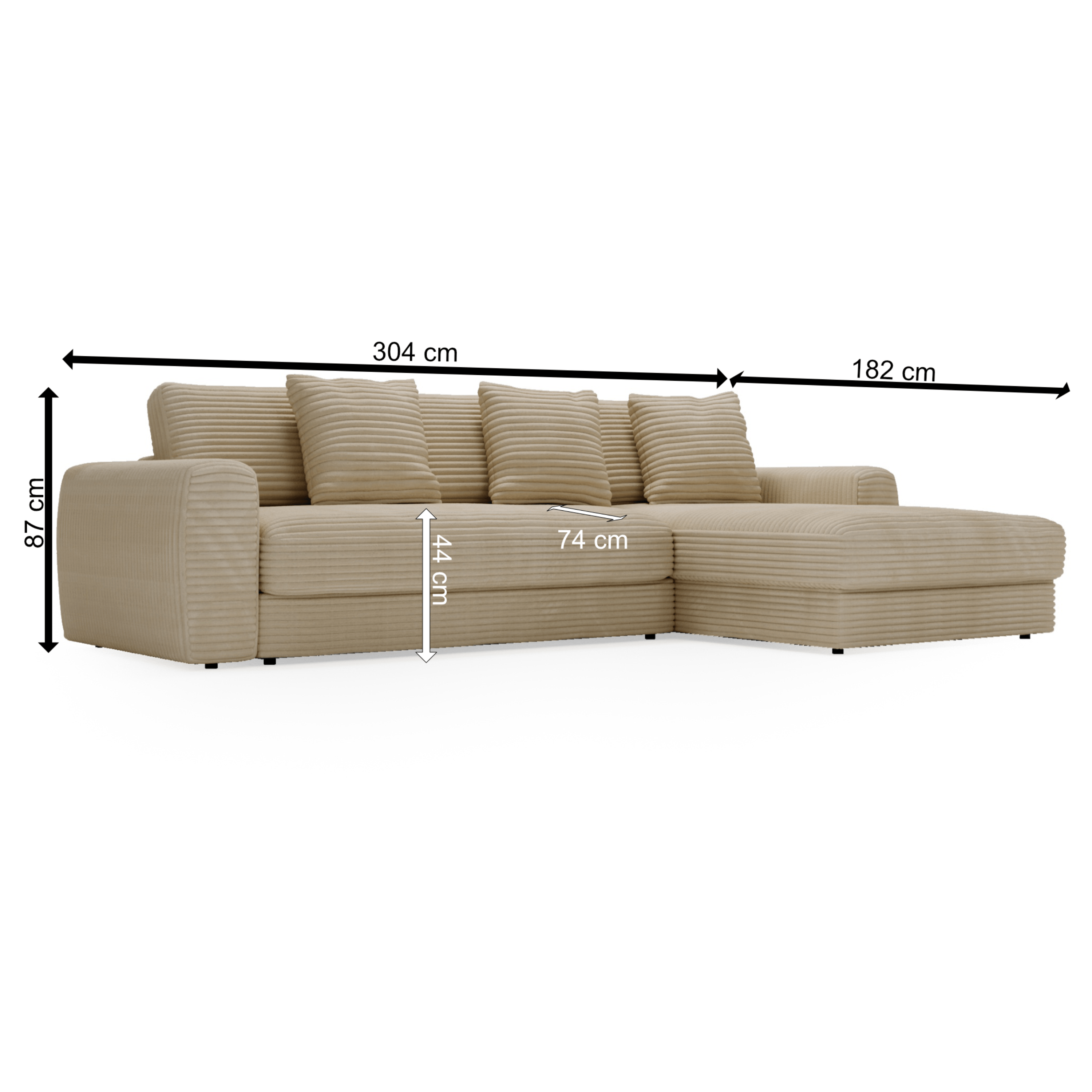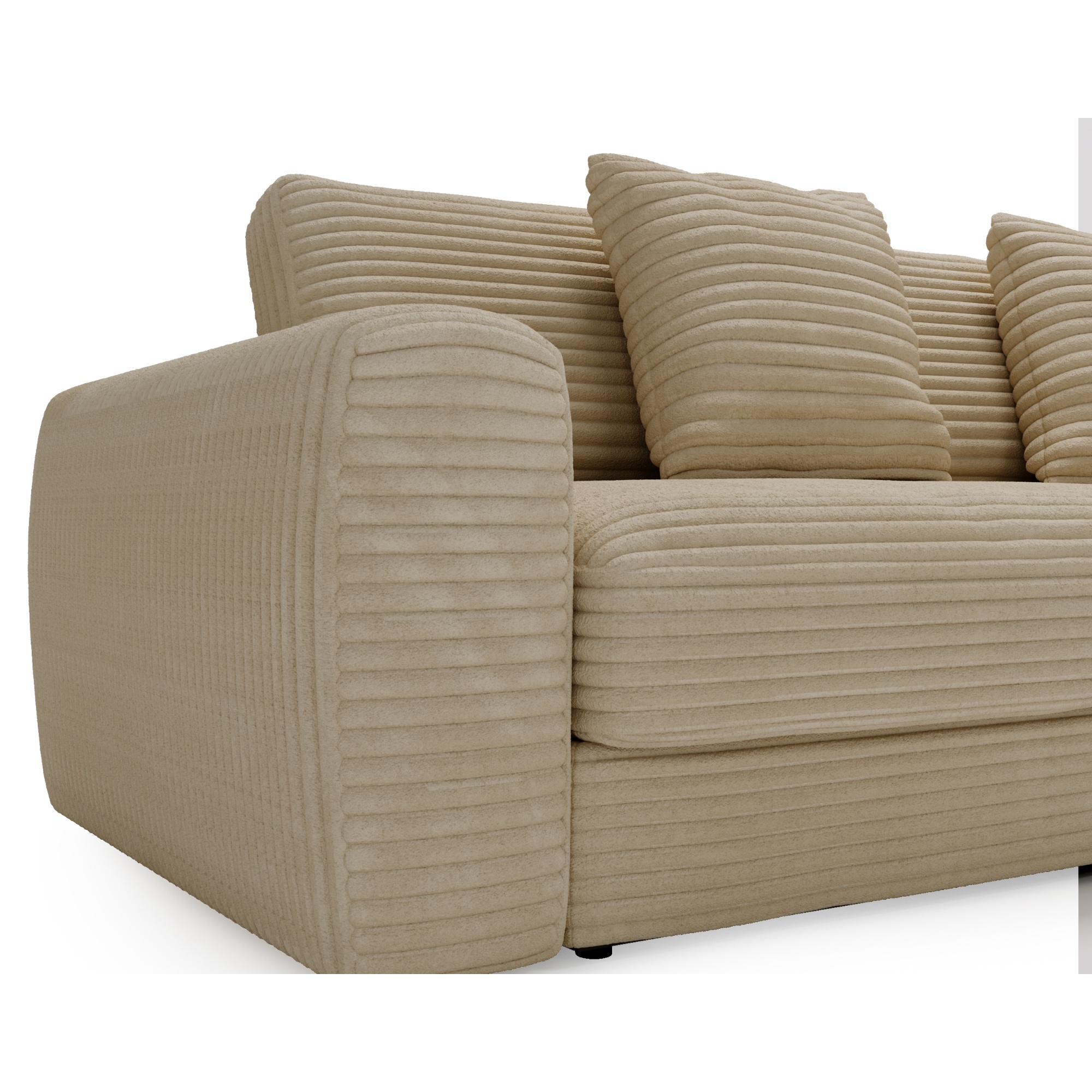 Opierky sú dostatočne vysoké nielen na opretie ruky, ale aj aby ste sa mohli na sedačke pohodlne uvelebiť napríklad pri televízii. Odnímateľné vankúše a dekoračné vankúšiky vám umožnia užívať si optimálne pohodlie. Vďaka poťahu menčestrového vzhľadu sa budete cítiť v sedačke priamo kráľovsky.
