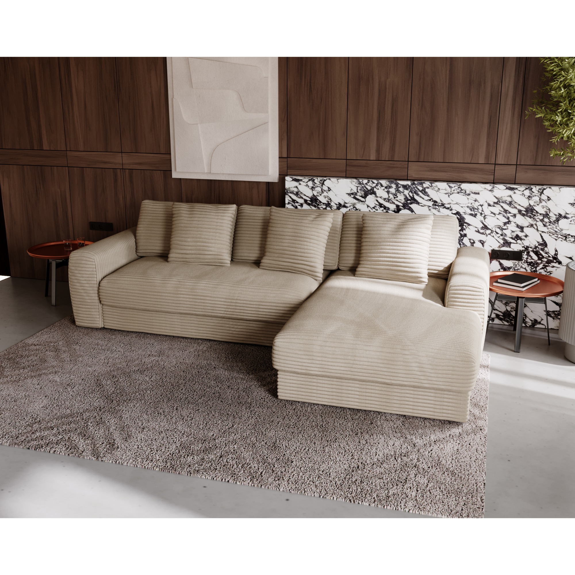 Sedacia súprava LEANNE - pravá, svetlohnedá