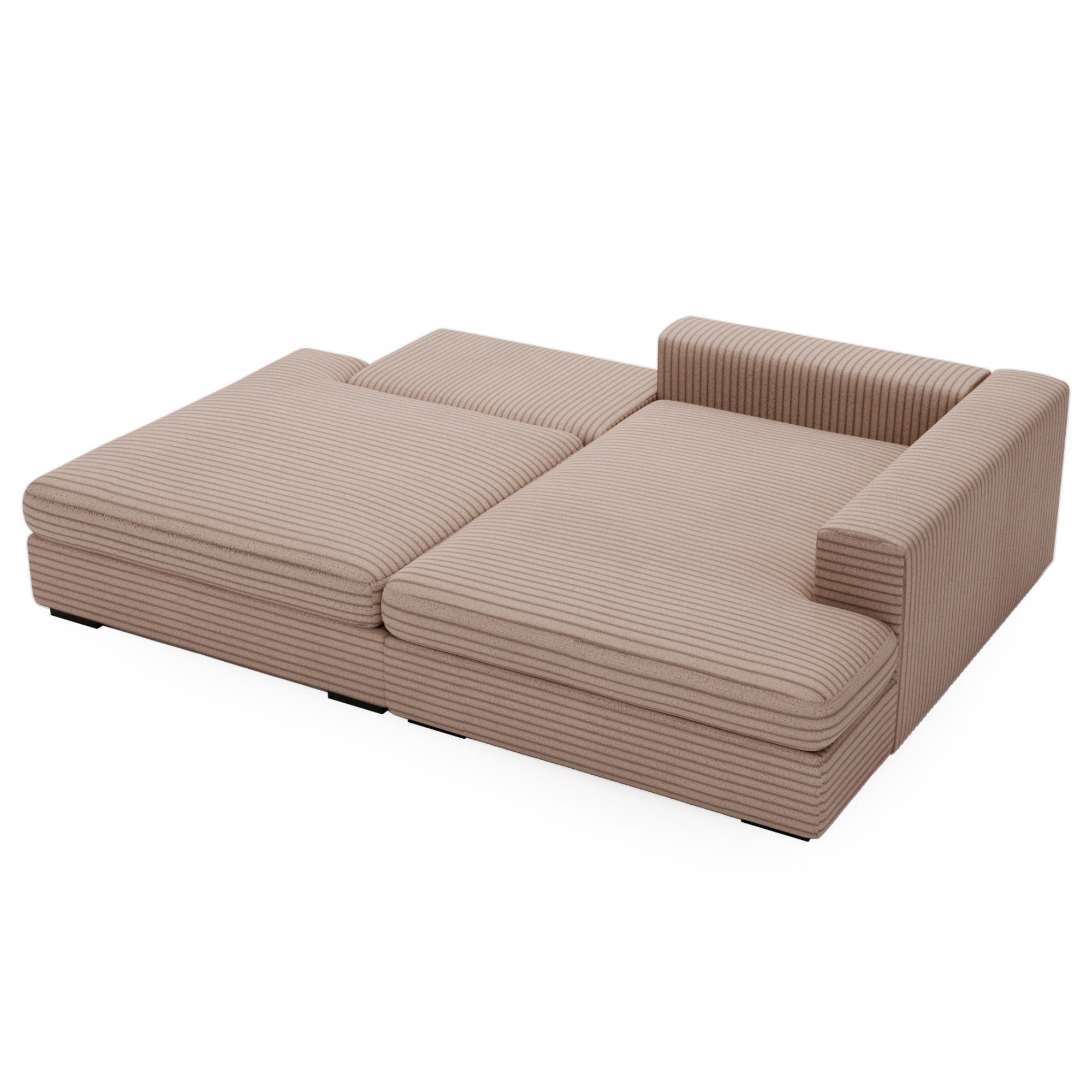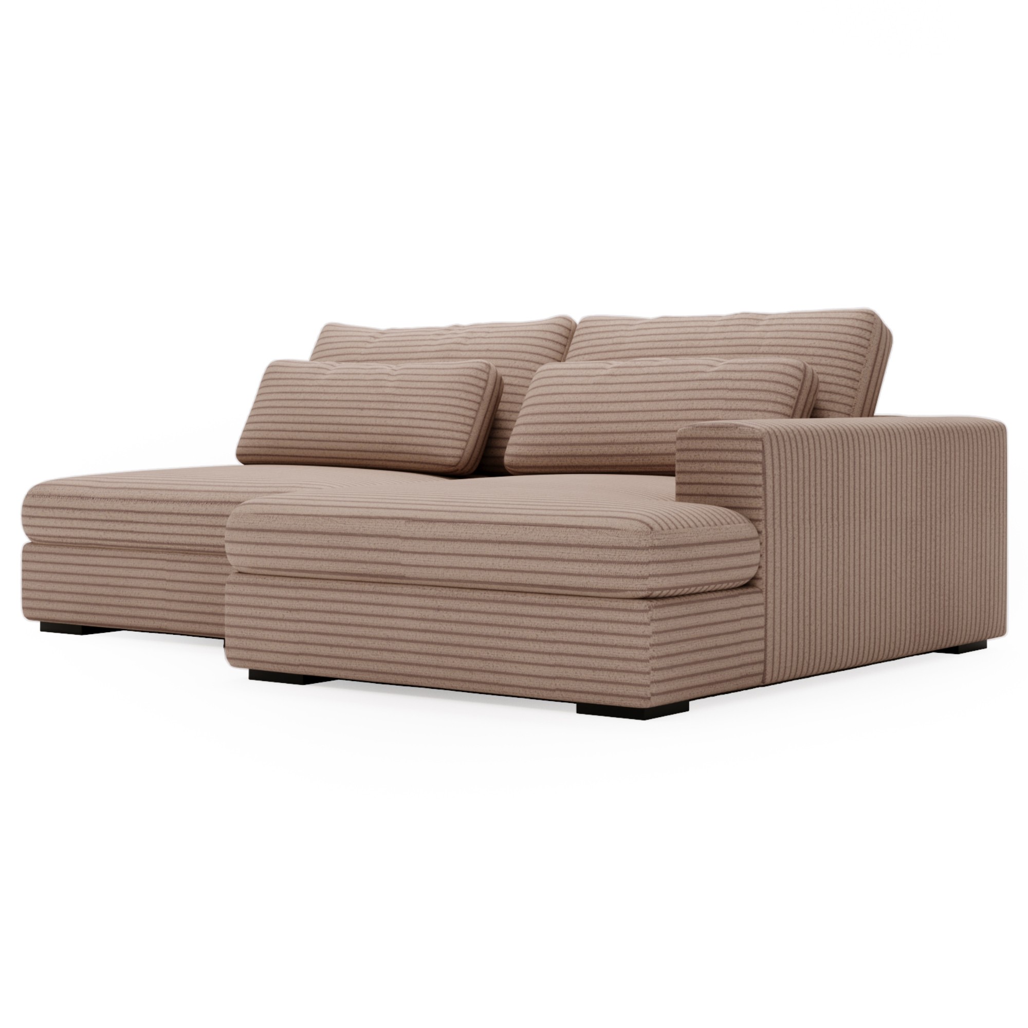 Tkanina menčestrového vzhľadu s penovým sedadlom vám vždy poskytne maximálny komfort. Dodávané vankúše budú oporou vášmu chrbtu počas odpočinku. Sedačku je možné v prípade potreby rozložiť na lôžko na občasné prespanie. Integrovaný úložný priestor si hravo poradí s lôžkovinami. Celočalúnené vyhotovenie vám dopraje luxus, či sedačku umiestnite k stene alebo do priestoru.