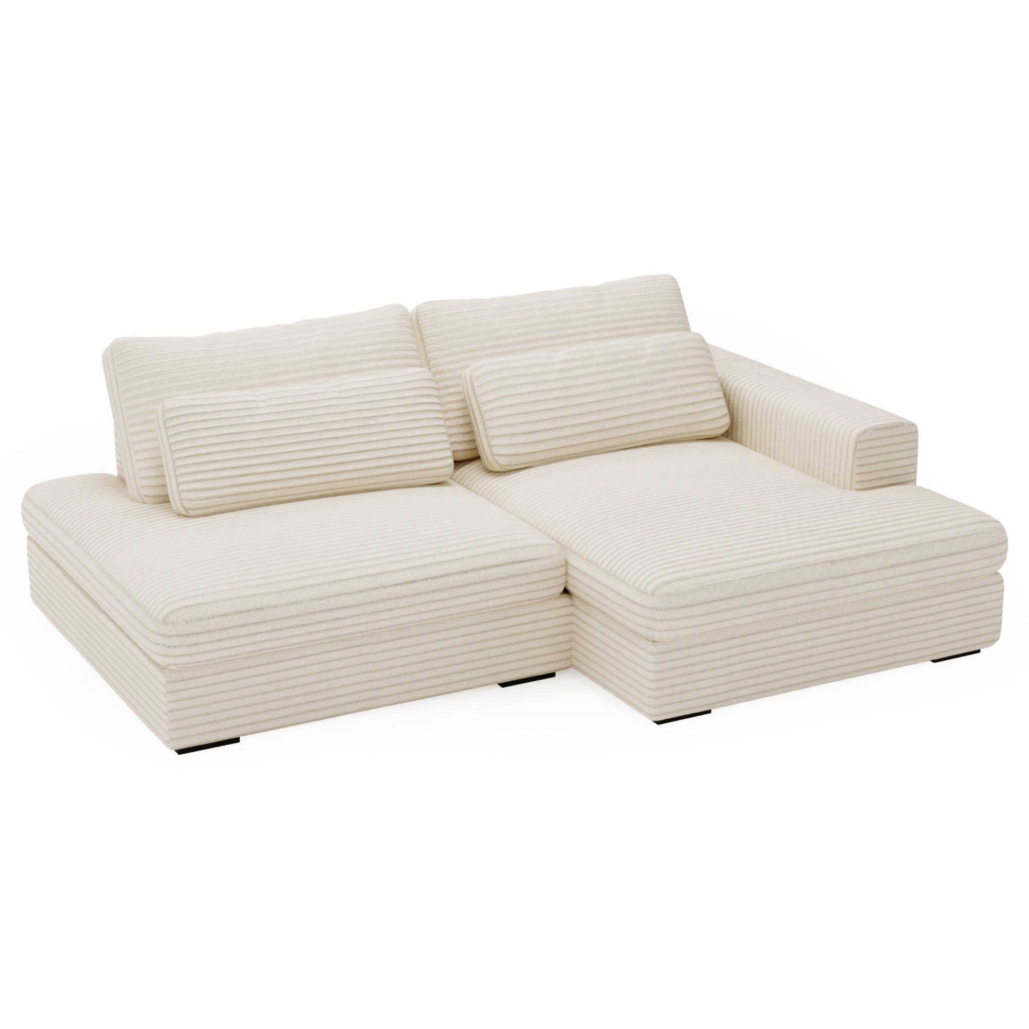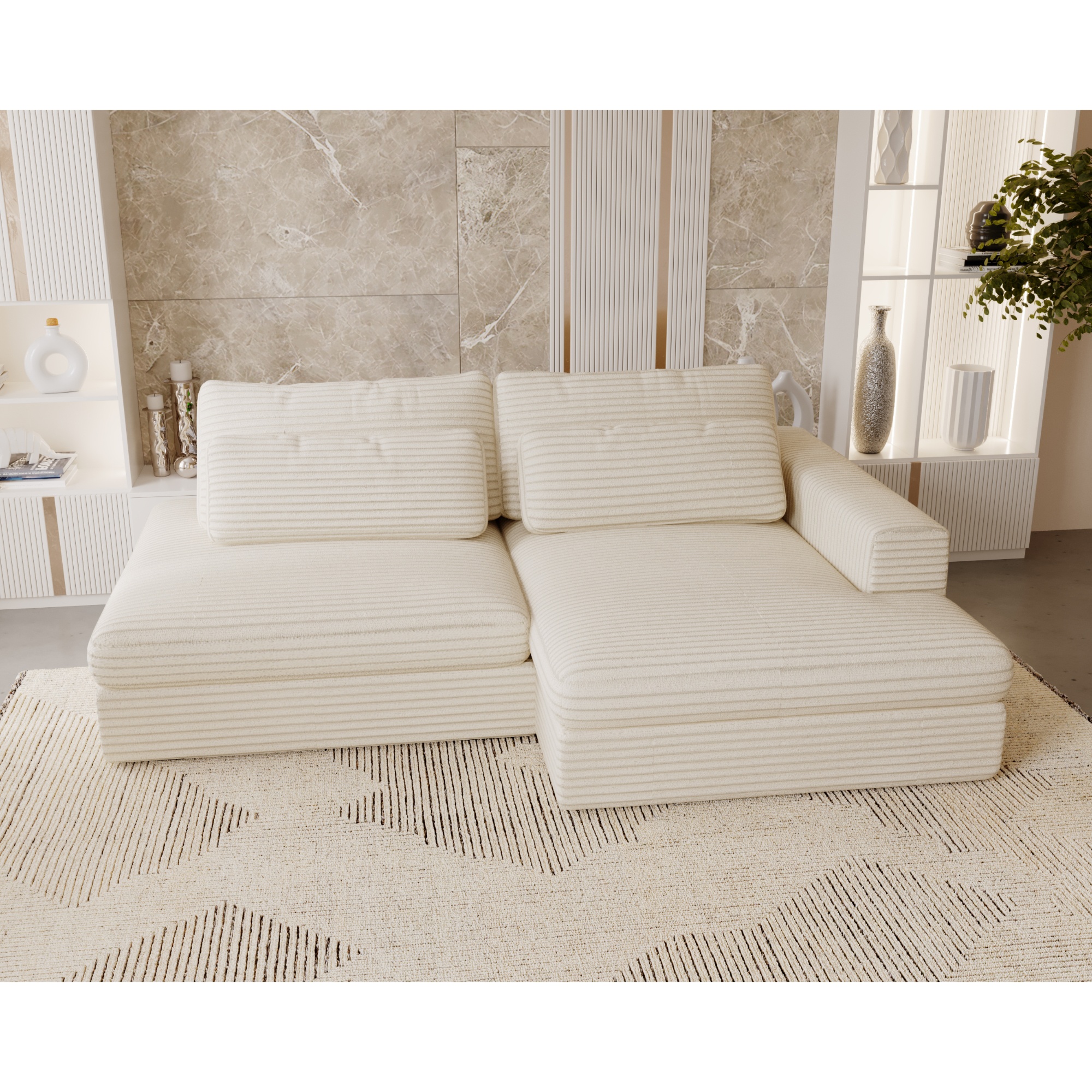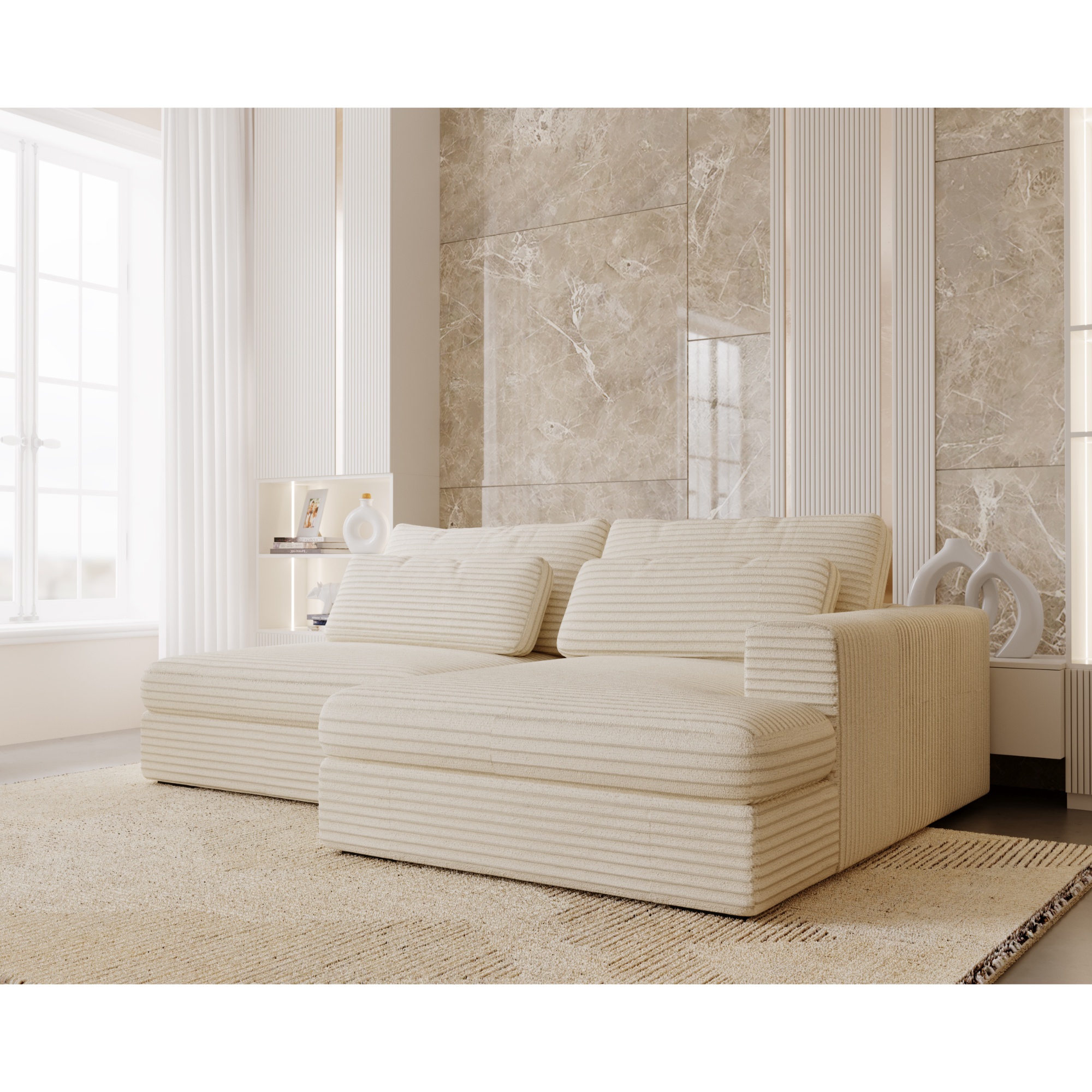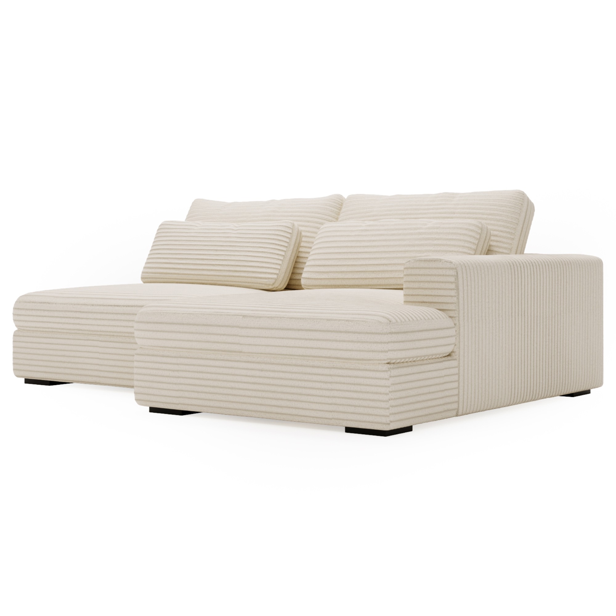 Tkanina menčestrového vzhľadu s penovým sedadlom vám vždy poskytne maximálny komfort. Dodávané vankúše budú oporou vášmu chrbtu počas odpočinku. Sedačku je možné v prípade potreby rozložiť na lôžko na občasné prespanie. Integrovaný úložný priestor si hravo poradí s lôžkovinami. Celočalúnené vyhotovenie vám dopraje luxus, či sedačku umiestnite k stene alebo do priestoru.