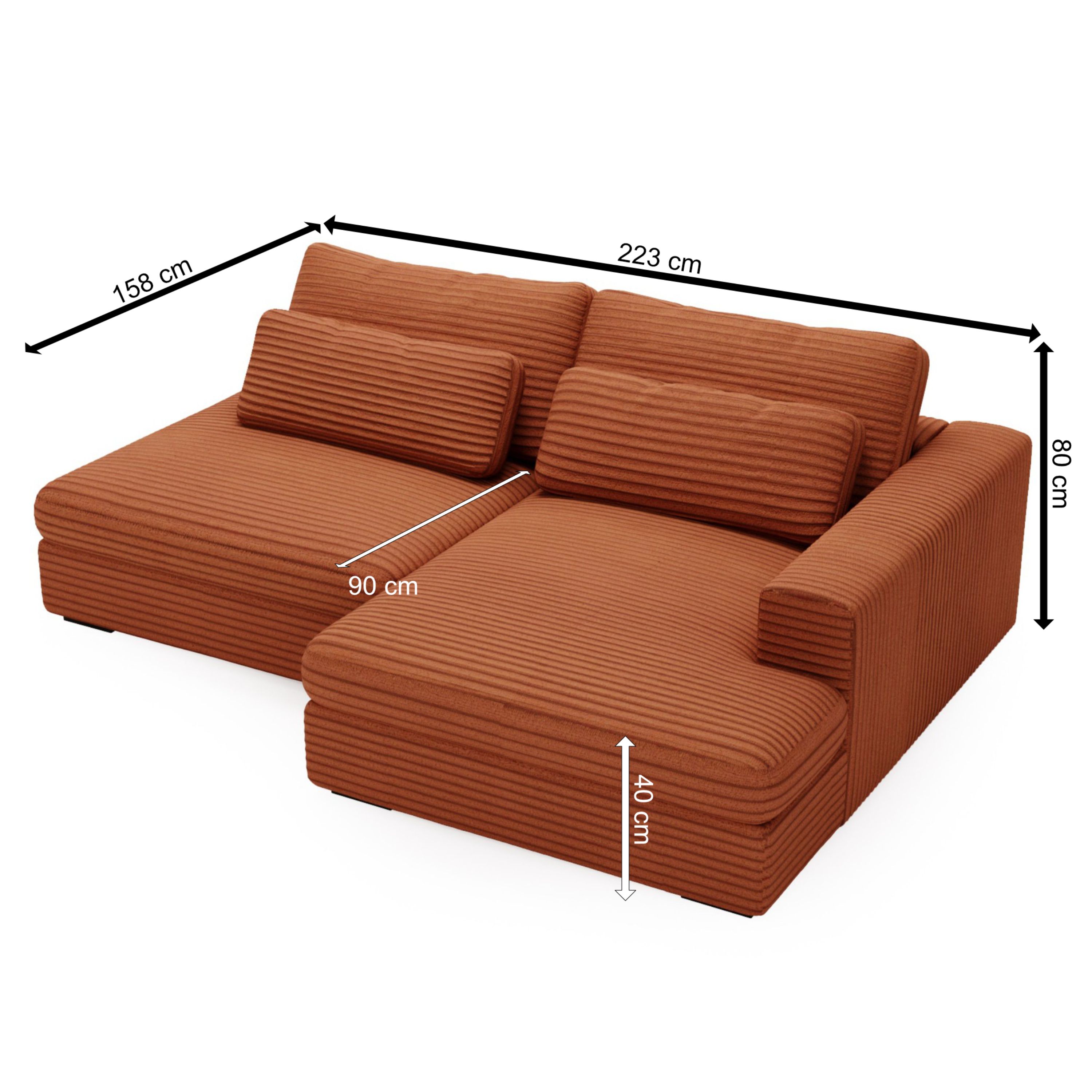 Tkanina menčestrového vzhľadu s penovým sedadlom vám vždy poskytne maximálny komfort. Dodávané vankúše budú oporou vášmu chrbtu počas odpočinku. Sedačku je možné v prípade potreby rozložiť na lôžko na občasné prespanie. Integrovaný úložný priestor si hravo poradí s lôžkovinami. Celočalúnené vyhotovenie vám dopraje luxus, či sedačku umiestnite k stene alebo do priestoru.