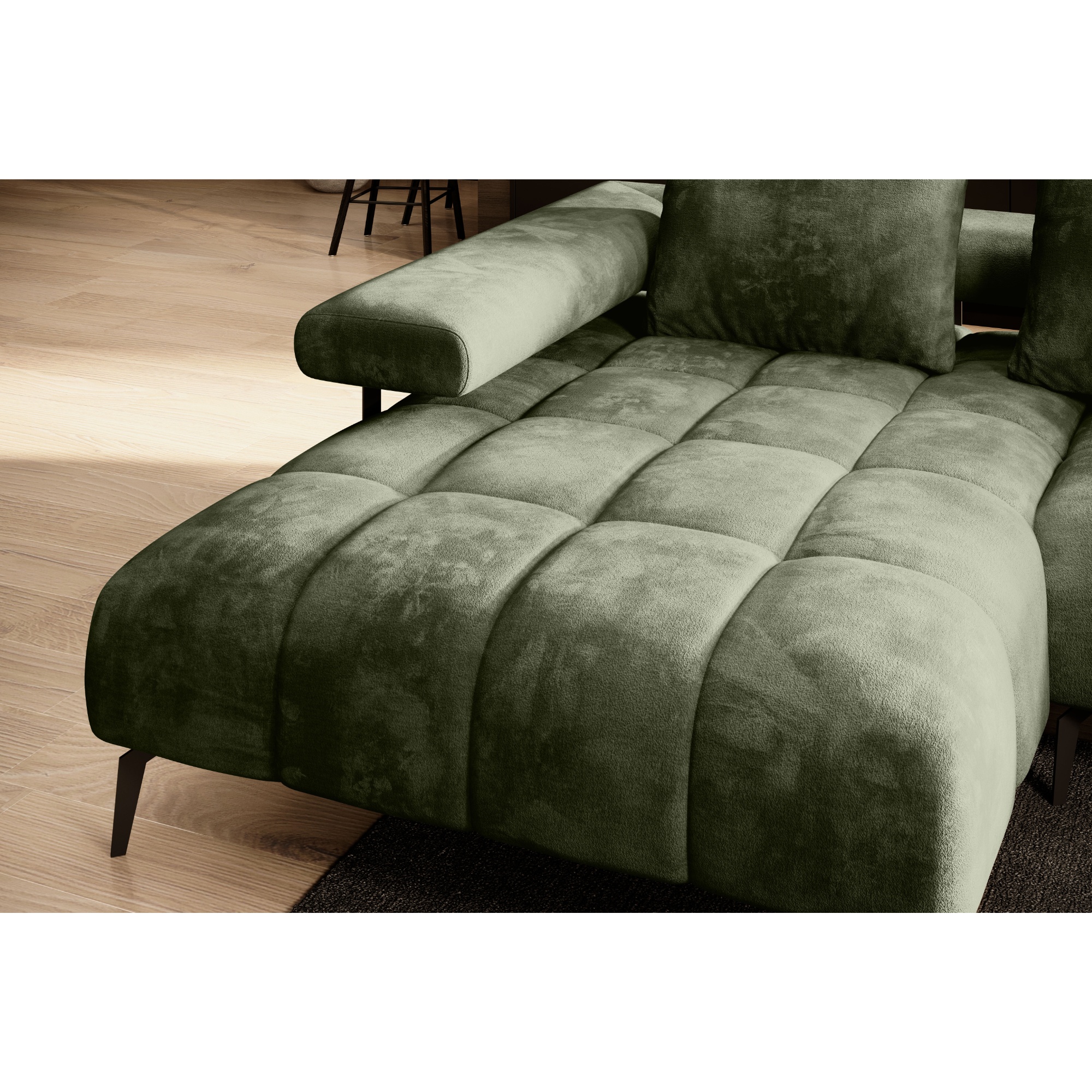 Jednoduchým stlačením tlačidla je možné regulovať hĺbku sedu pomocou elektrického vysúvacieho systému, takže sedačku môžete prispôsobiť svojej potrebe. Celočalúnené vyhotovenie vám dovolí umiestniť sedačku podľa dispozície interiéru. Aj udržanie poriadku pod sedačkou zvládnete hravo.