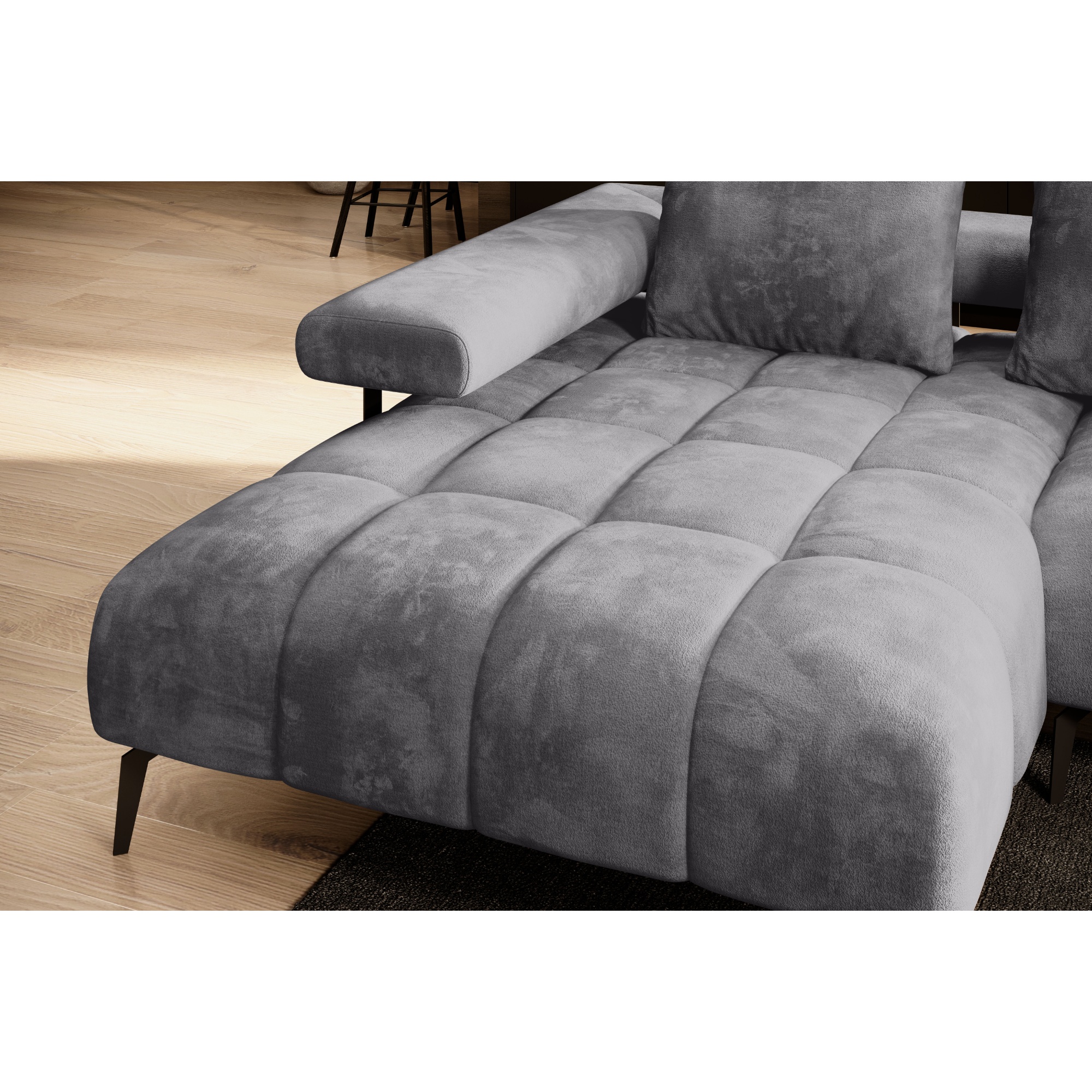 Celočalúnené vyhotovenie vám dovolí umiestniť sedačku podľa dispozície interiéru. Aj udržanie poriadku pod sedačkou zvládnete hravo.