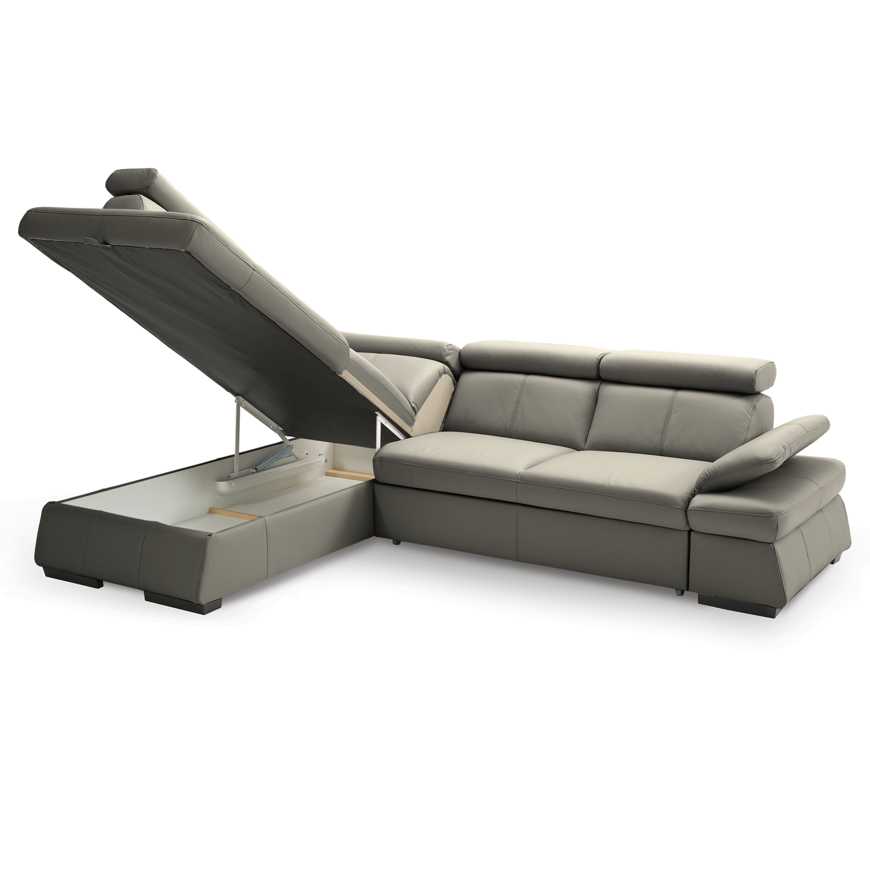 Maximálny komfort je dosiahnutý použitím kombinácie peny a vlnitých pružín. Súprava je potiahnutá na dotyk príjemnou kožou. Už tak nadštandardné pohodlie je ešte zvýšené o nastaviteľné podrúčky a opierky hlavy. Súprava zároveň ponúka funkciu rozloženia na lôžko na príležitostné prespanie. Dopĺňa ju aj praktický úložný priestor na lôžkoviny. Stabilitu celej súpravy zabezpečujú drevené nohy.