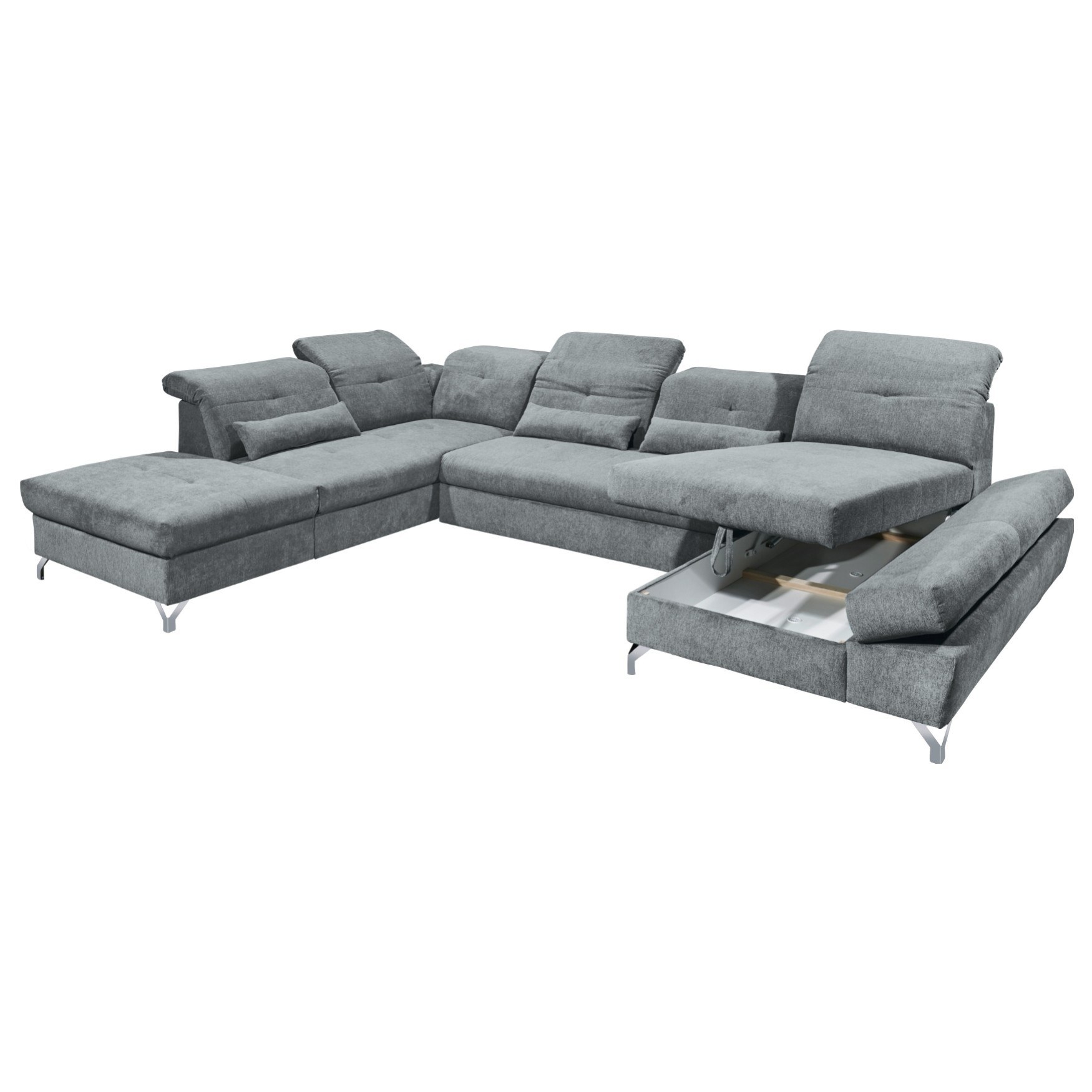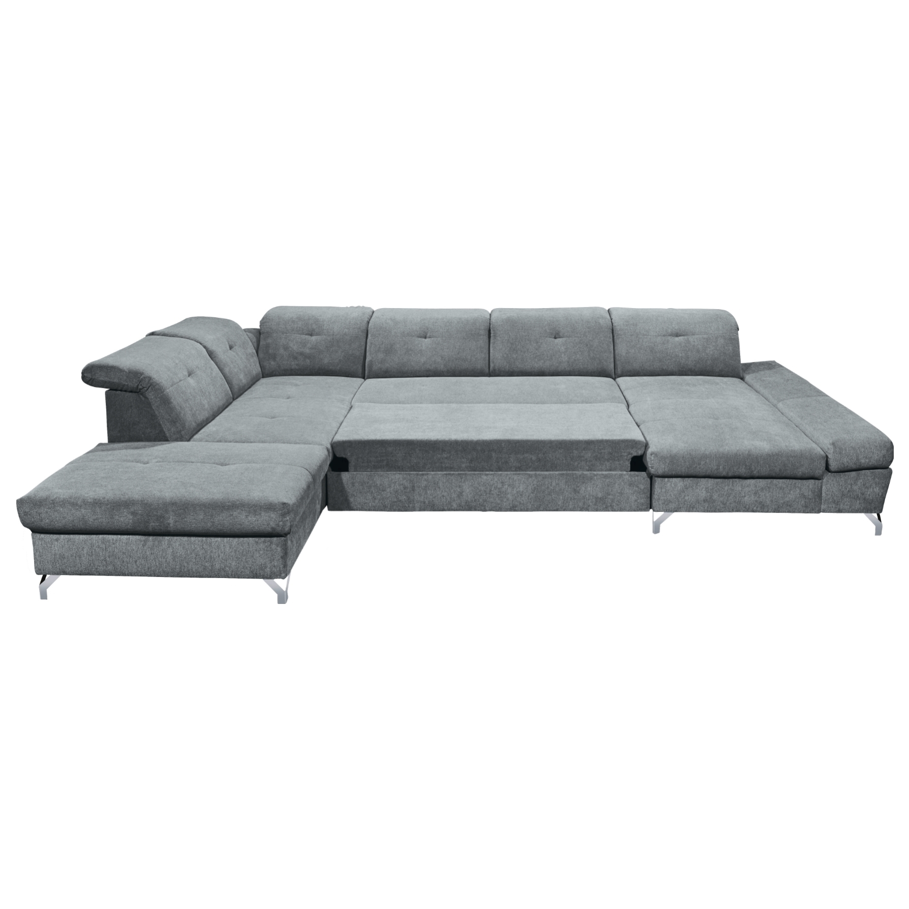 Sedacia súprava MELFI vnesie do vašej domácnosti nádych elegancie a jemnosti. Je ideálnym riešením pre početnú rodinu, nečakanú návštevu alebo skrátka len tak na leňošenie. Maximálny komfort pri sedení zaistí sedadlo z polyuretánovej peny a nastaviteľné opierky hlavy. Sedačka si poradí aj s tým, keď prerastie návšteva priateľov alebo rodiny, niekedy v neočakávané provizórne nocovanie. Jednoduchým mechanizmom ju rozložíte na priestranné lôžko na občasné prespanie. Integrovaný úložný priestor poskytne útočisko nielen na lôžkoviny, ktoré budete mať v prípade potreby hneď po ruke, ale môžete ho využiť variabilne podľa potreby. Kovové nožičky pôsobia nielen elegantne, ale oceníte ich aj z praktického hľadiska. Celočalúnené vyhotovenie vám dopraje luxus vybrať si, či bude sedačka MELFI stáť pri stene alebo v priestore. Či už ju umiestnite kamkoľvek, bude vždy pripravená kedykoľvek privítať hostí, ale aj dopriať vám potrebný komfort pri čítaní knihy, sledovaní filmu alebo počúvaní hudby.