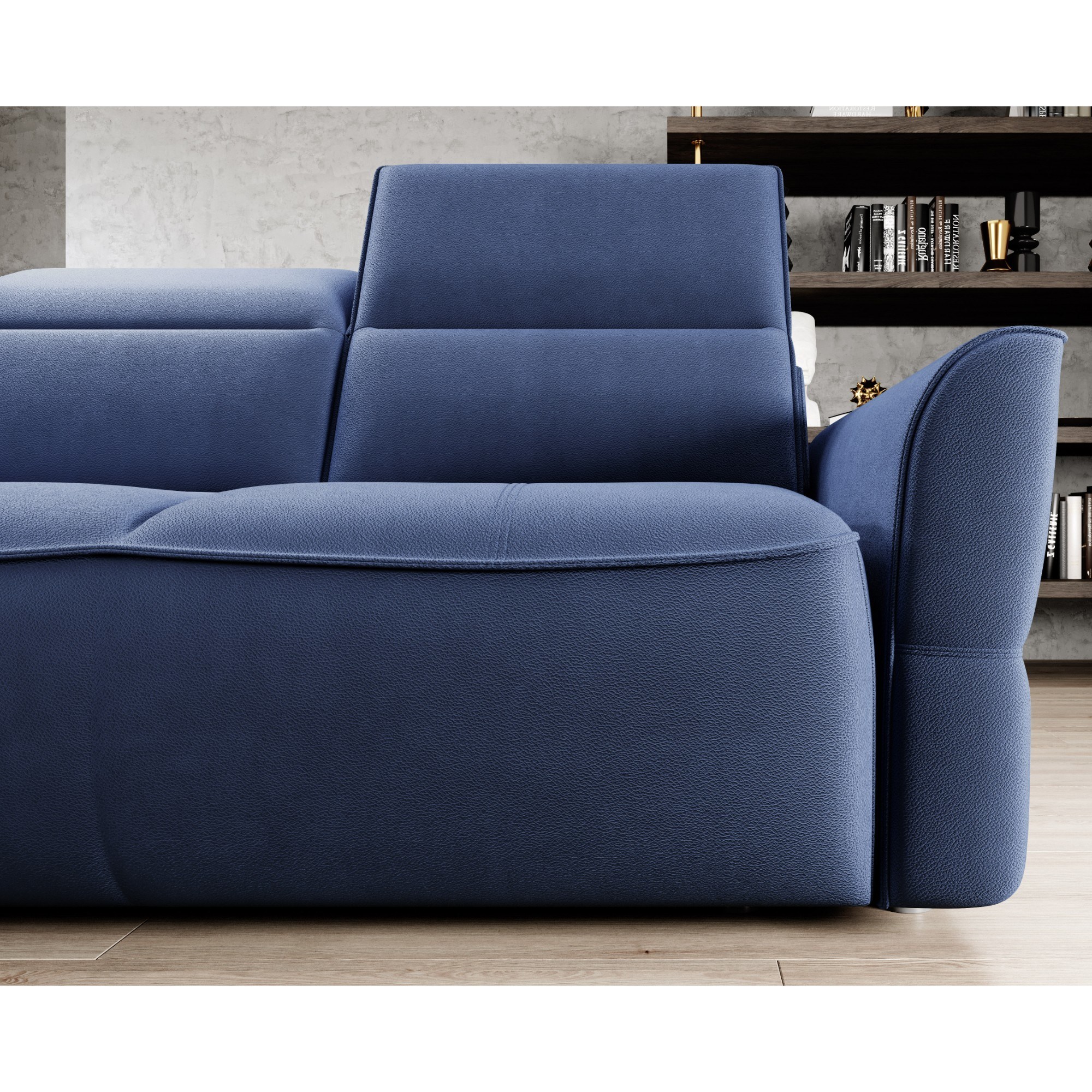 Sedadlo je tvorené pružinovým jadrom a polyuretánovou penou. Oblé tvary v kombinácii s polohovacími podhlavníkmi vytvárajú elegantný kút na relaxáciu a odpočinok. Jednoduchým stlačením tlačidla možno regulovať hĺbku sedu pomocou elektrického vysúvacieho systému až o 60 cm. Postačí pár jednoduchých krokov a sedačku premeníte na lôžko na občasné prespanie. Integrovaný priestor poskytuje miesto na lôžkoviny. Tkanina s povrchovou úpravou na báze nanočastíc vám umožní odstrániť aj ťažko odstrániteľné škvrny bez potreby čistiacich prostriedkov. Odstrániť škvrny nebolo nikdy jednoduchšie. Vďaka technológii Easy Clean vám k tomu budem stačiť len voda s trochou mydla. Ľahké čistenie len pomocou vody ocenia nielen rodičia a milovníci zvierat.