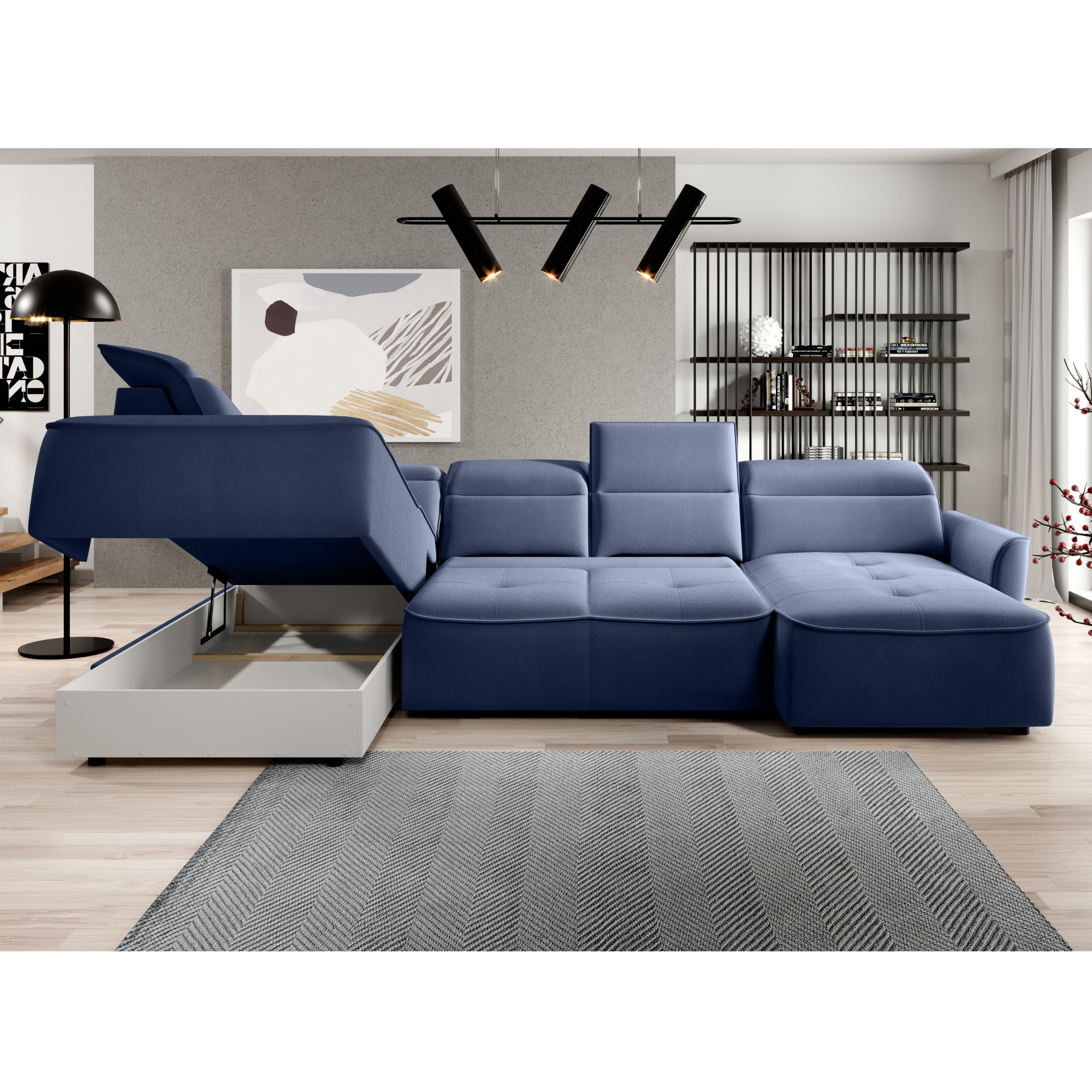Opticky rozdelený priestor na sedenie na 3 celky je vhodný na sedenie oproti sebe, vedľa seba, alebo v 90° uhle, podľa toho, čo vám najviac vyhovuje. O maximálne pohodlie sa postarajú nastaviteľné opierky hlavy a možnosť upraviť si hĺbku sedadla až o 60 cm. Sedadlo tvorí pružinové jadro s polyuretánovou penou. Oblé tvary gauča a sofistikované funkcie vytvárajú elegantný kút na relaxáciu a odpočinok. Jednoduchým stlačením tlačidla prenastavíte gauč na plochu na príležitostné prespanie. Integrovaný úložný priestor v otomane poskytuje miesto na lôžkoviny, ale vďaka ľahkej dostupnosti je možné ho využiť na rôzne účely. Tkanina s povrchovou úpravou na báze nanočastíc vám umožní odstrániť aj ťažko odstrániteľné škvrny bez potreby čistiacich prostriedkov. Vďaka technológii Easy Clean vám na to bude stačiť len voda s trochou mydla. Jednoduché čistenie len pomocou vody ocenia nielen rodičia a milovníci zvierat. Celočalúnené vyhotovenie ponúka variabilitu umiestnenia sedačky.
