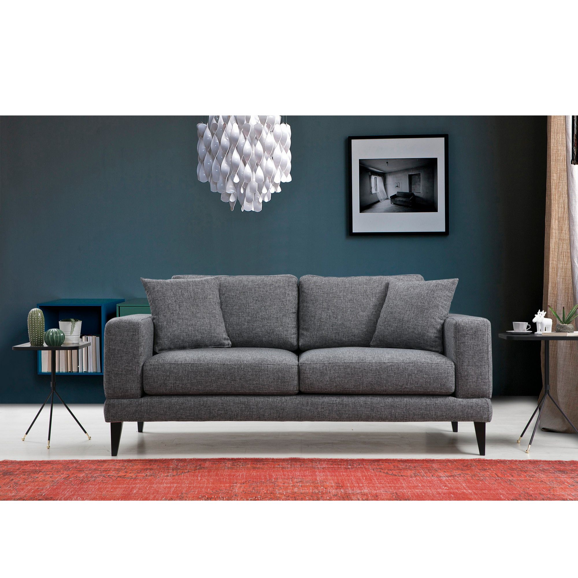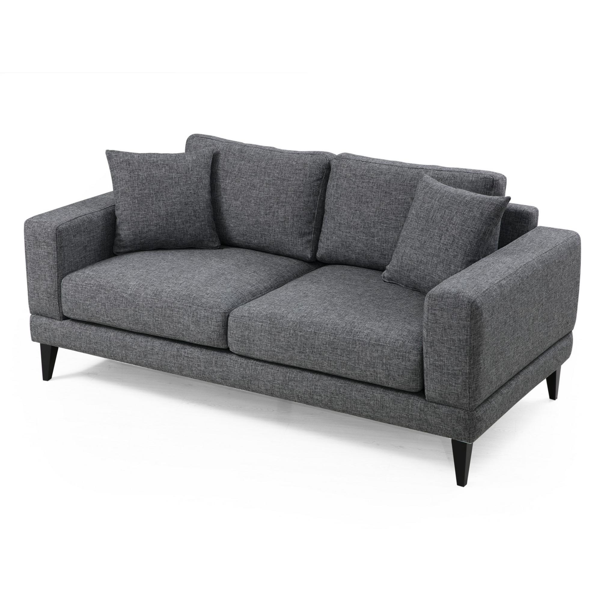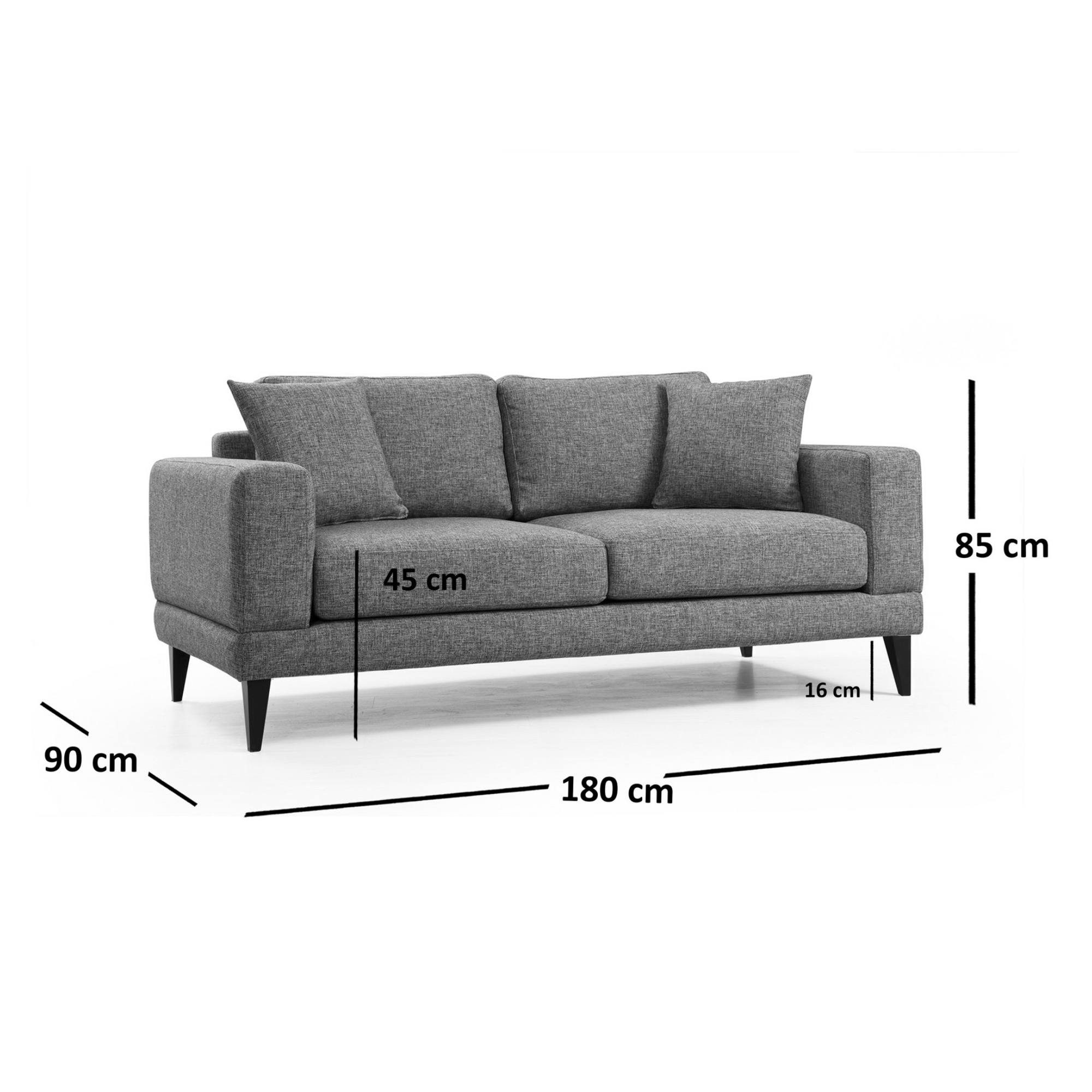 Pohovka má silný drevený rám z masívneho buka, vďaka čomu je pevná, stabilná a odolná. O dostatok pohodlia sa postarajú chrbtové vankúše a dekoračné vankúšiky, vďaka ktorým si budete môcť užívať relaxáciu na maximum. Vyššie nôžky uľahčia udržanie poriadku pod gaučom. Vďaka celočalúnenému chrbtu možno pohovku umiestniť ku stene aj do priestoru.