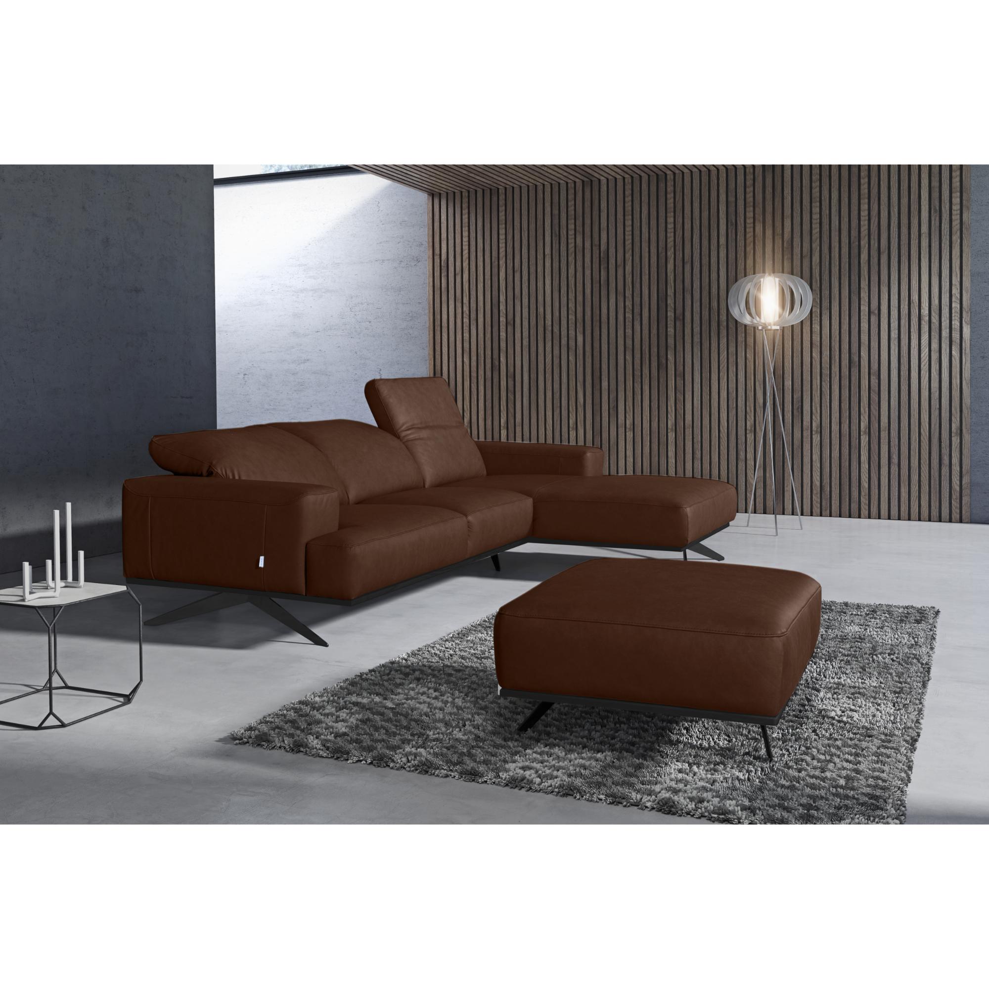 Ponúka zázemie na odpočinok a dopraje vám luxus odpočívať podľa ľubovôle. Veľmi kvalitné jadro zo studenej peny zaisťuje dokonalé pohodlie pri sedení. Súprava je potiahnutá na dotyk príjemnou pravou kožou. Polohovacie opierky hlavy dotiahnu váš pôžitok z odpočinku k dokonalosti. Celočalúnené vyhotovenie vám dáva možnosť umiestniť gauč aj voľne do priestoru. Vďaka matným čiernym nôžkam pôsobí sedačka vzdušným dojmom, a navyše sa pod ňou ľahko bude udržiavať poriadok.