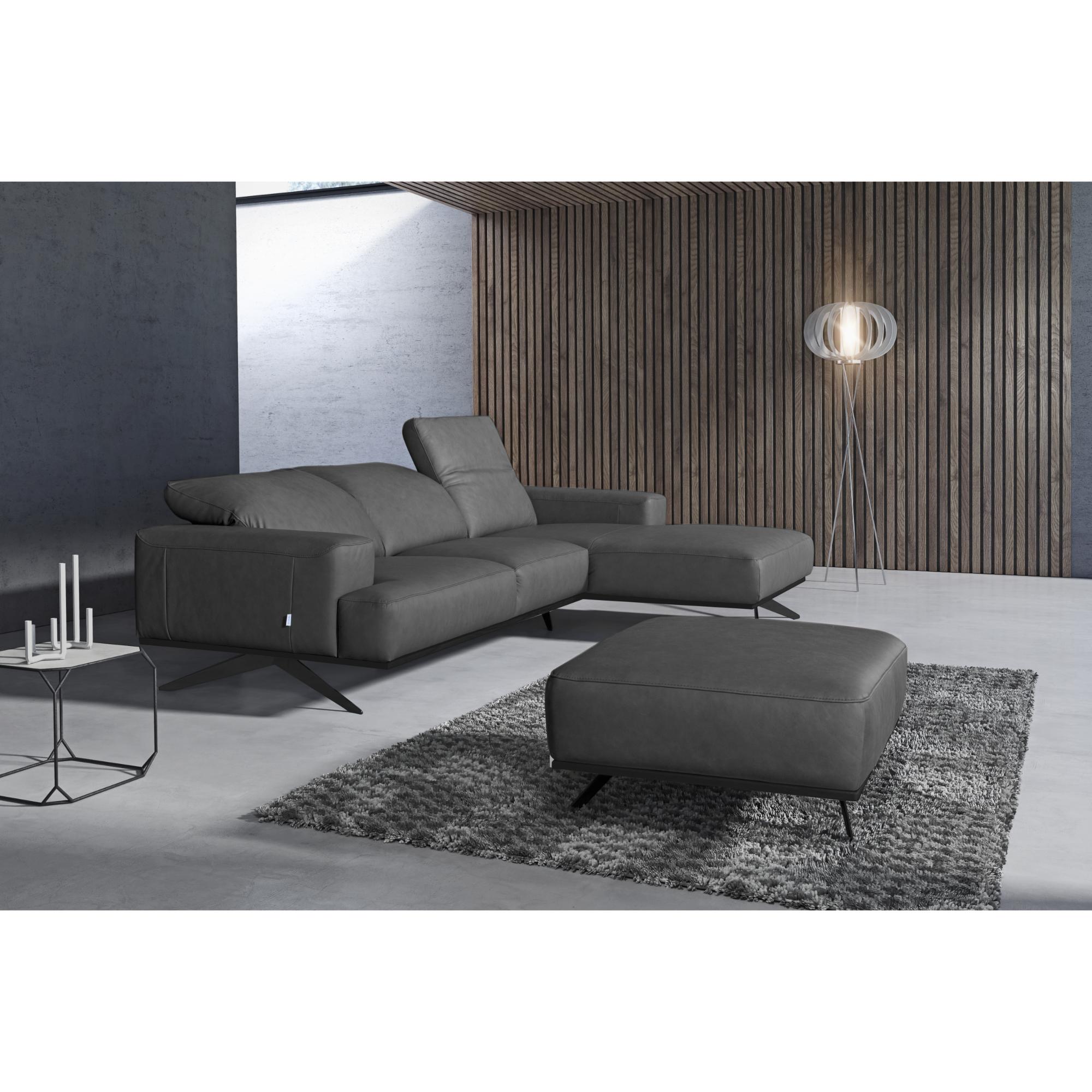 Ponúka zázemie na odpočinok a dopraje vám luxus odpočívať podľa ľubovôle. Veľmi kvalitné jadro zo studenej peny zaisťuje dokonalé pohodlie pri sedení. Súprava je potiahnutá na dotyk príjemnou pravou kožou. Polohovacie opierky hlavy dotiahnu váš pôžitok z odpočinku k dokonalosti. Celočalúnené vyhotovenie vám dáva možnosť umiestniť gauč aj voľne do priestoru. Vďaka matným čiernym nôžkam pôsobí sedačka vzdušným dojmom, a navyše sa pod ňou ľahko bude udržiavať poriadok.