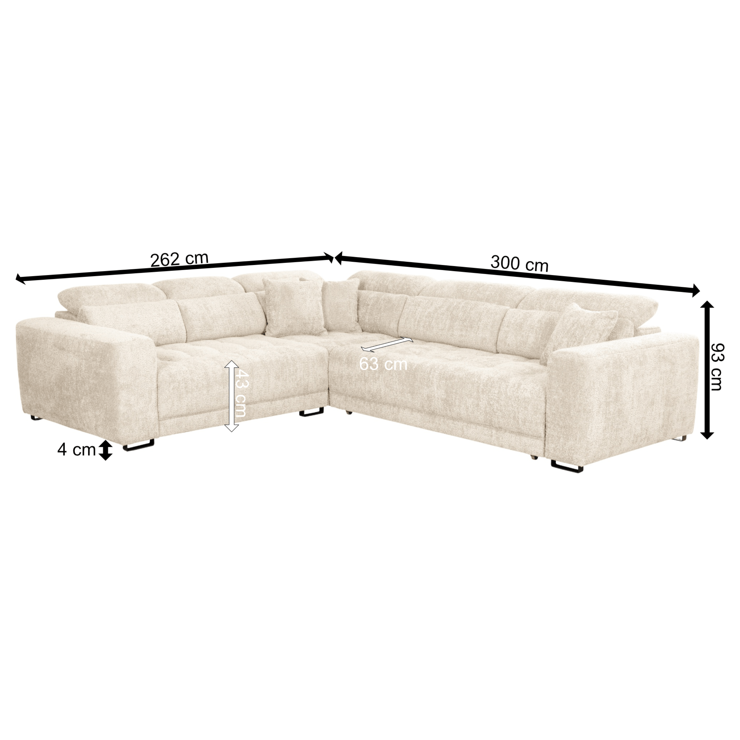 Vďaka svojej veľkosti a výplni zo studenej peny v kombinácii s vlnovým odpružením ponúka veľmi komfortné sedenie pre 4 osoby. Na dosiahnutie maximálneho pohodlia sedačka umožňuje elektrické nastavenie hĺbky sedu a je vybavená komfortnými opierkami hlavy a podrúčkami. Celá konštrukcia je potiahnutá príjemnou tkaninou zo 100 % polyesteru s jemným, dekoratívnym prešívaním.
