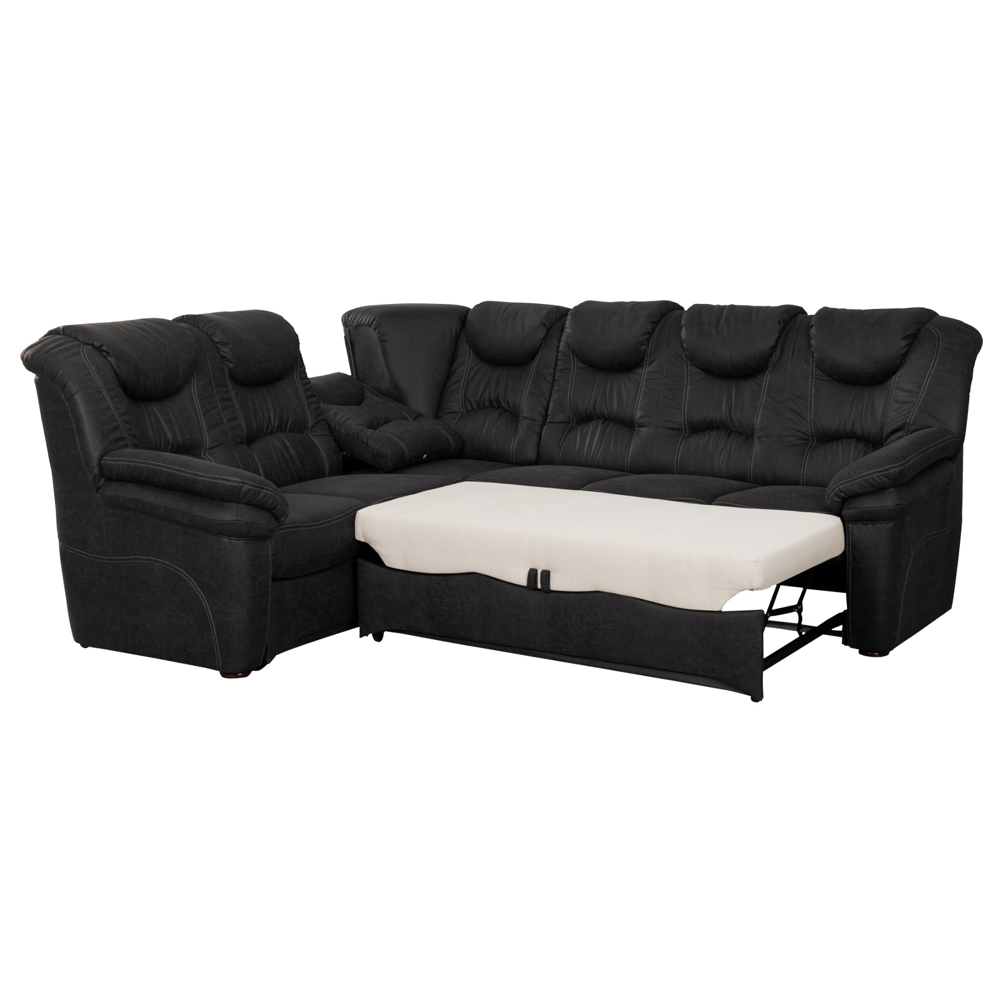 Výrazné prešívanie, poťah s textilnou kožou a oblé tvary v kombinácii s relaxačnou funkciou rohového elementu zaistí, že si príjemný pocit z relaxácie užijete na maximum.