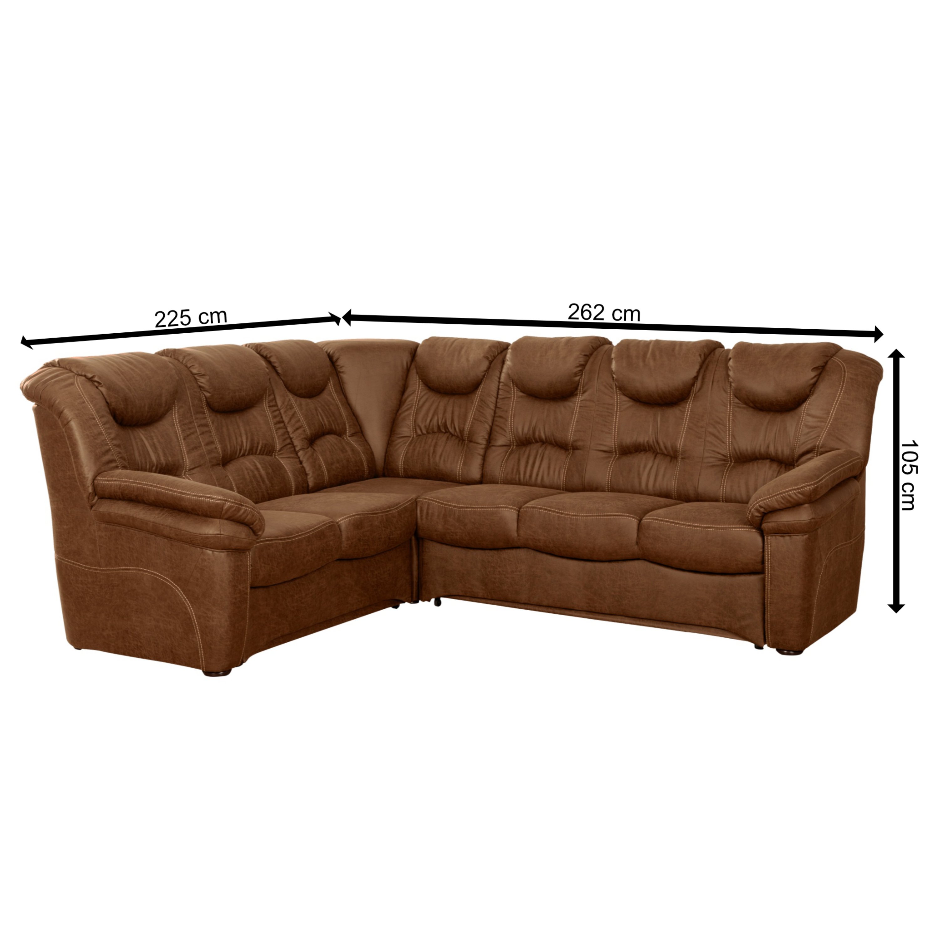 Výrazné prešívanie, poťah s textilnou kožou a oblé tvary v kombinácii s relaxačnou funkciou rohového elementu zaistí, že si príjemný pocit z relaxácie užijete na maximum.