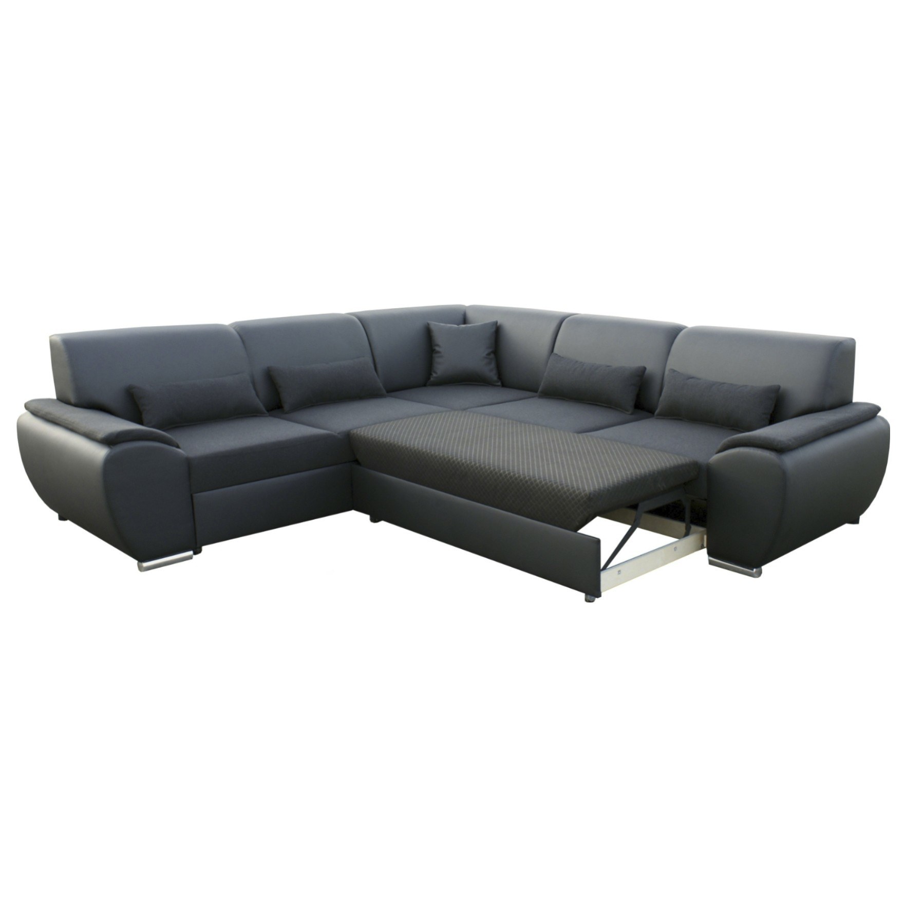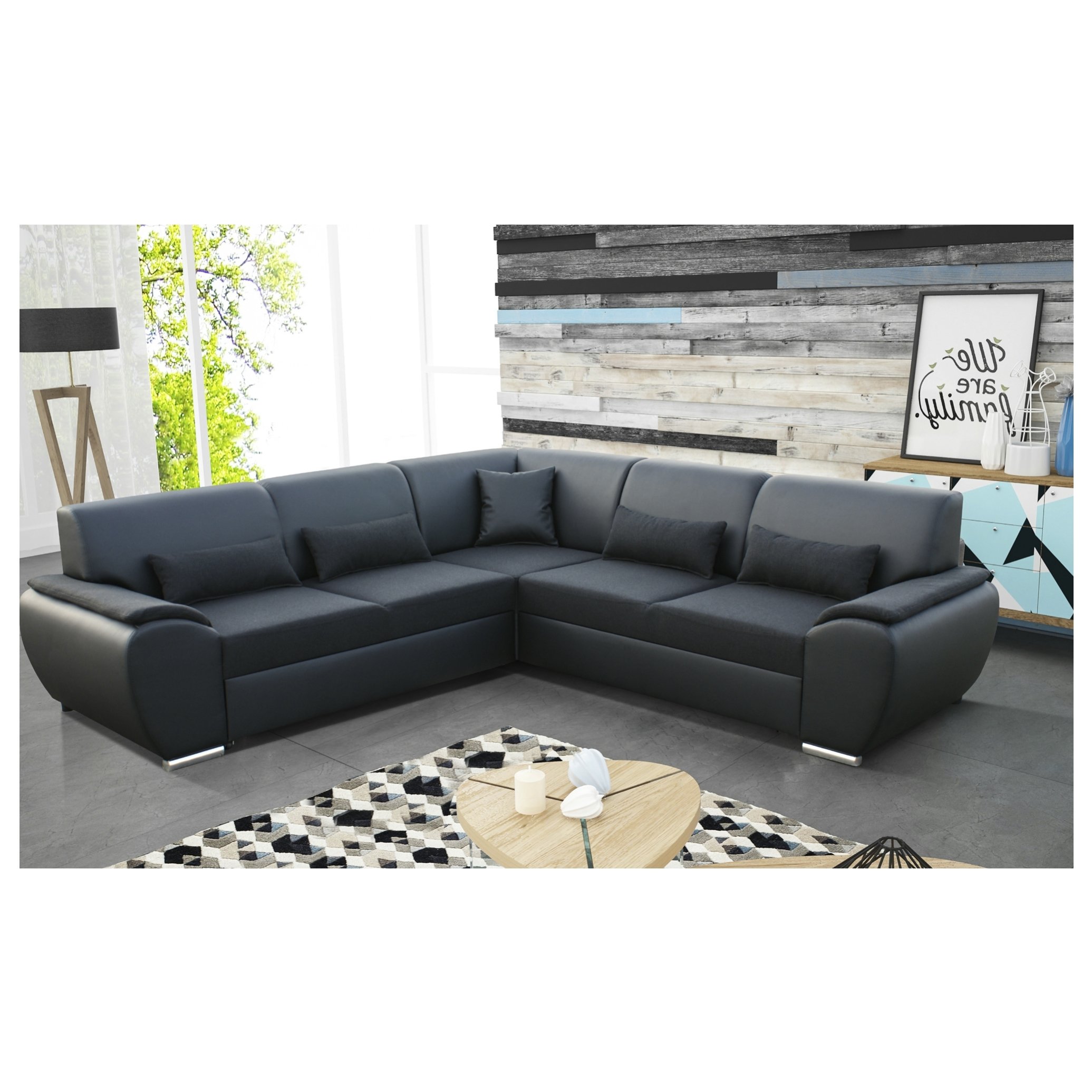 Kombinuje dva druhy tkanín, a to syntetickú kožu a tkaninu s hrubšou štruktúrou. Pokiaľ sa posedenie pretiahne, môžete zo sedačky behom pár chvíľok pripraviť lôžko a návšteve ponúknuť možnosť prenocovania. Na uschovanie lôžkovín môžete využiť integrovaný úložný priestor v zásuvke pod sedadlom. Rozhodnutie, či umiestnite sedačku do priestoru alebo ku stene je úplne na vás, gauč je celočalúnený, takže umožňuje oba varianty.