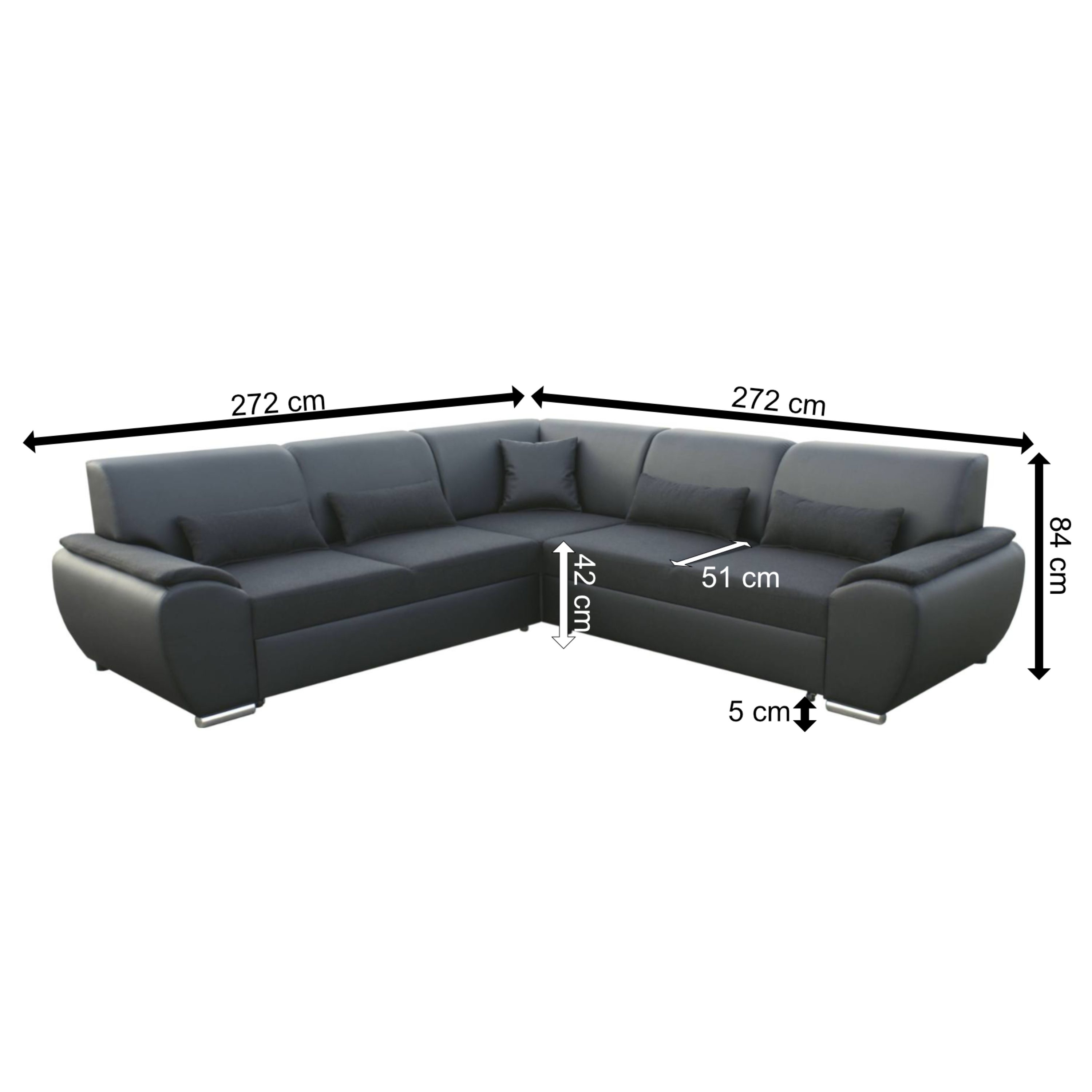 Rohová sedačka ROYAL dodá vašej obývačke modernú iskru a vás si získa svojim elegantným vzhľadom a praktickými funkciami. Hĺbka sedu s bedrovými vankúšmi je 51 cm a bez vankúšov 63 cm.
