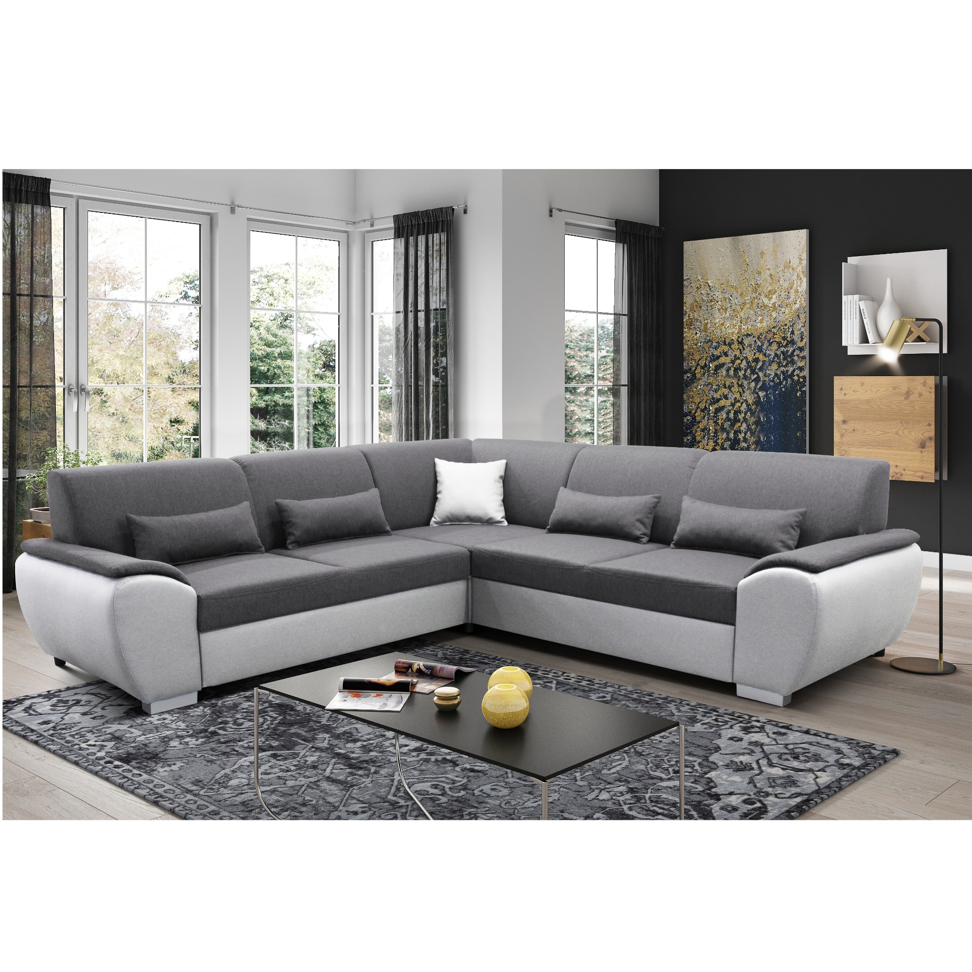 Sedacia súprava ROYAL - ľavá, tmavosivá/biela