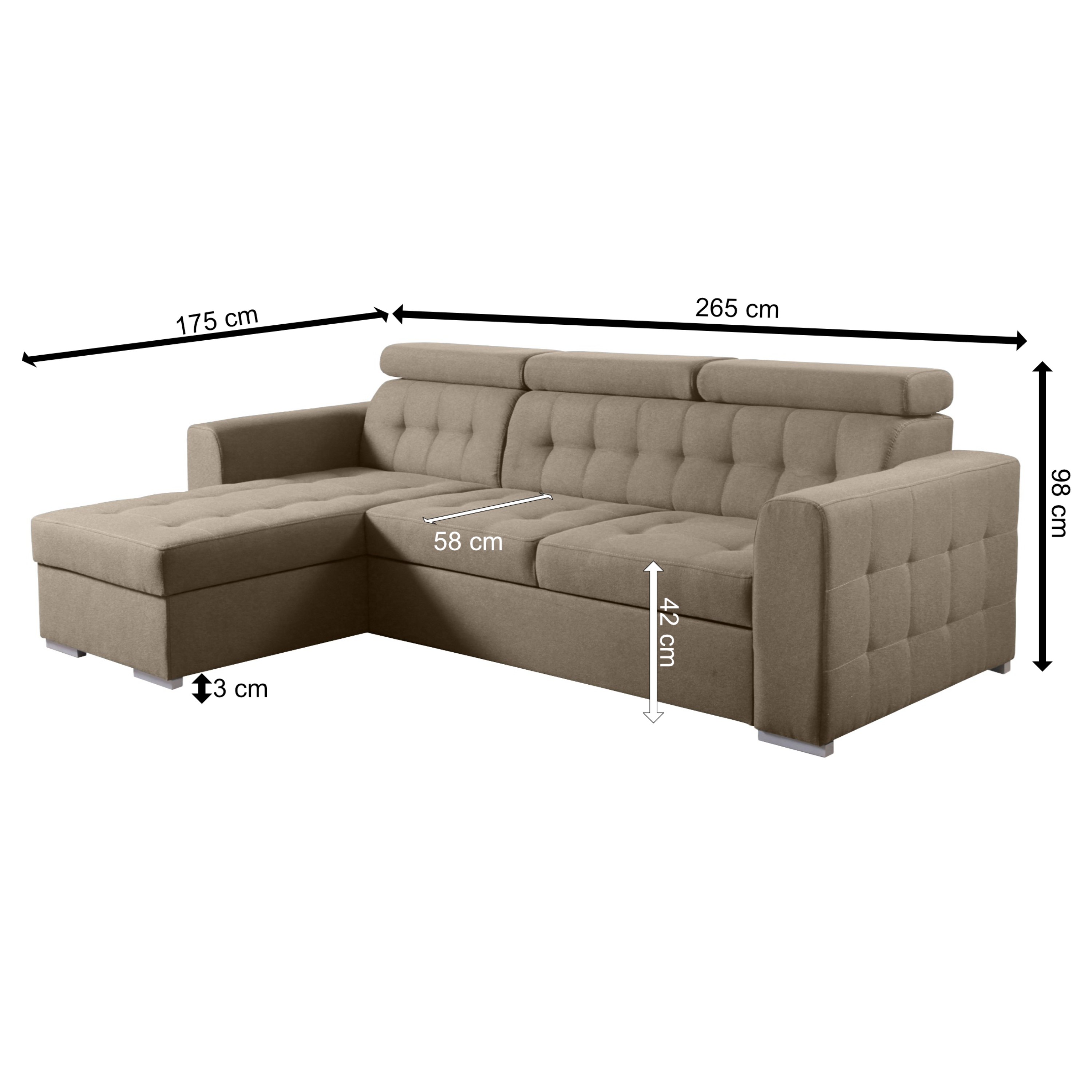 Sedacia súprava TAORMINA - ľavá, svetlohnedá
