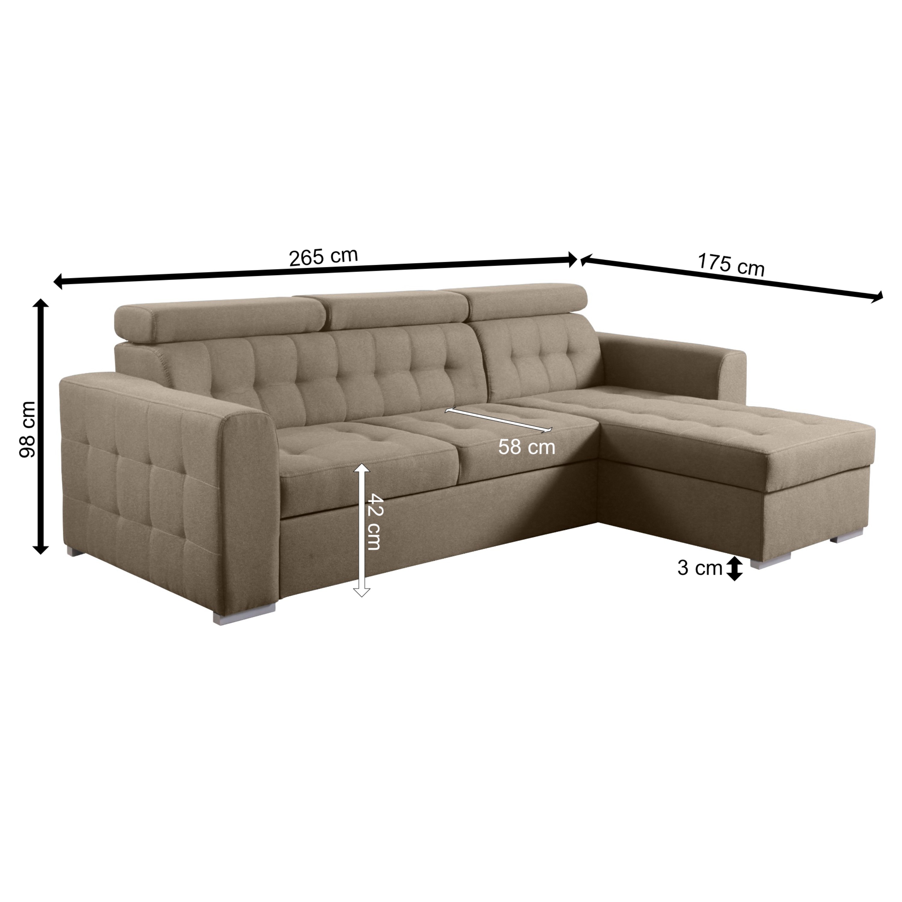 Sedacia súprava TAORMINA - pravá, svetlohnedá