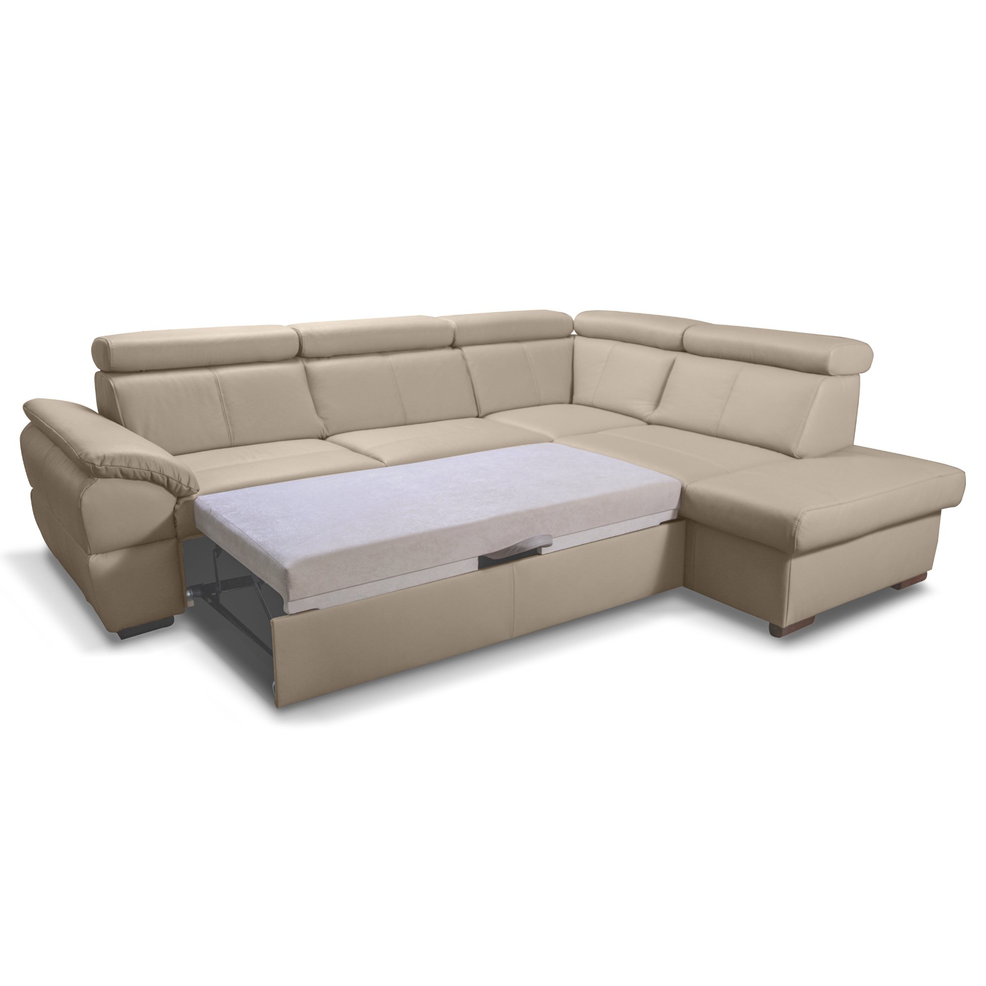 Svojou veľkosťou poskytne komfort rohového sedenia až pre 4 osoby. Sedadlo je tvorené vlnovými pružinami a veľmi kvalitnou studenou penou, čo vám poskytne mäkké sedenie. Oblé tvary a kožený poťah v kombinácii s polohovacími podhlavníkmi zase umocnia príjemný pocit z relaxácie. To všetko dohromady vytvára elegantný kút pre vás, rodinu aj návštevu.