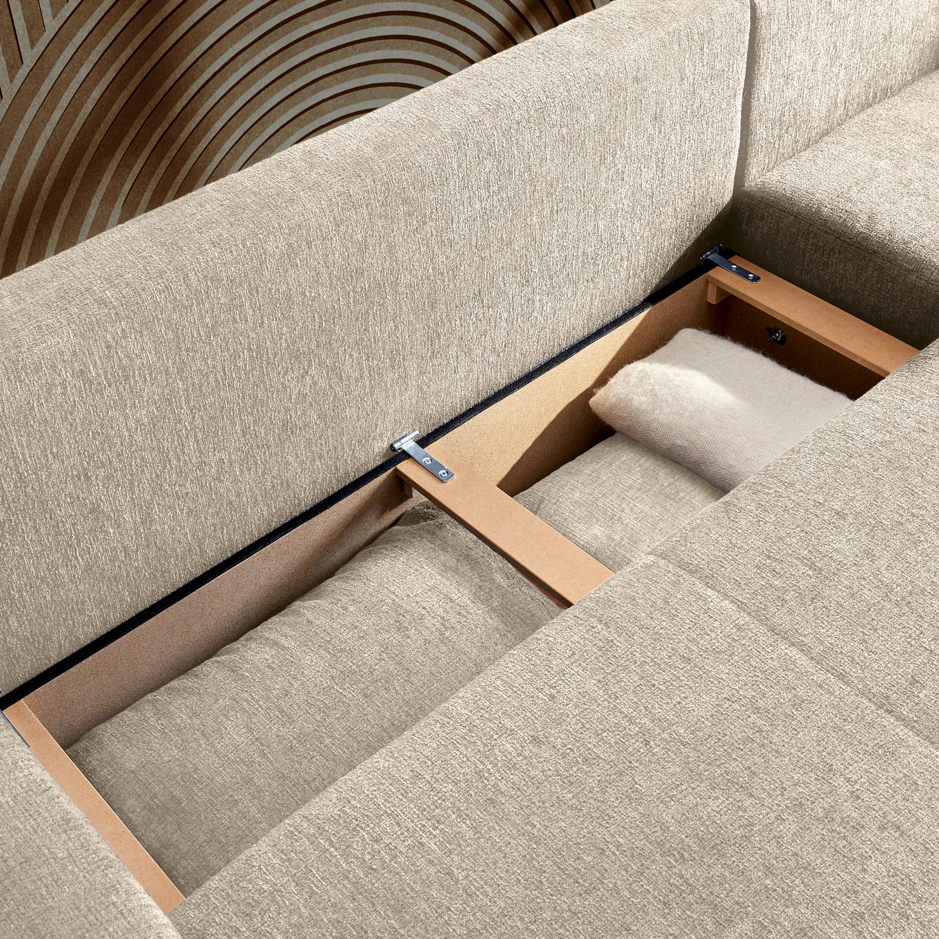 Sedaciu súpravu môžete vďaka praktickej rozkladacej funkcii premeniť na dodatočné lôžko na občasné prespanie. Súčasťou konštrukcie je aj integrovaný úložný priestor, vďaka ktorému môžete mať náhradné lôžkoviny a iné predmety vždy poruke.