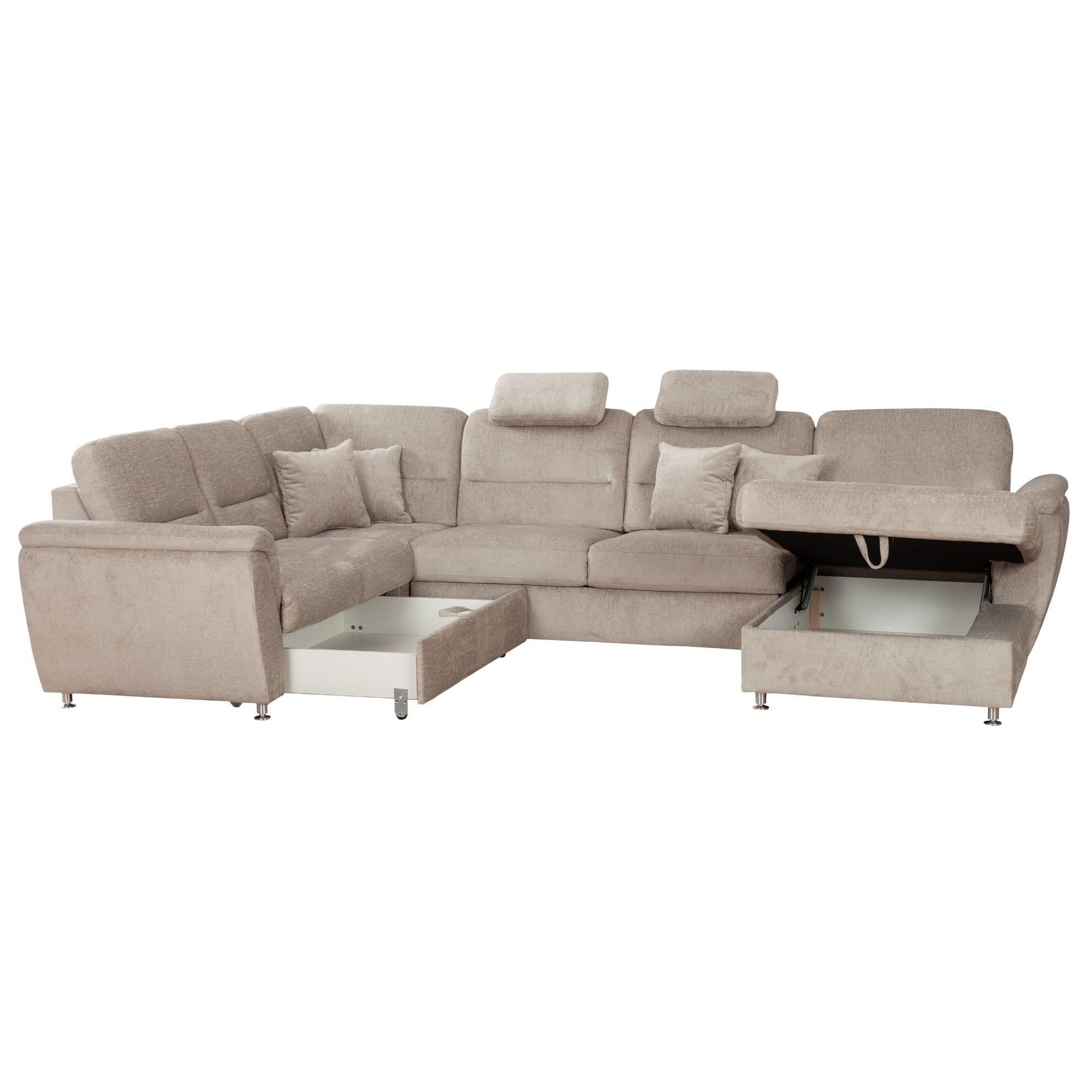S nadčasovou sedacou súpravou VIANA II v tvare U vytvoríte z vašej obývacej izby útulný a reprezentatívny, relaxačný priestor.