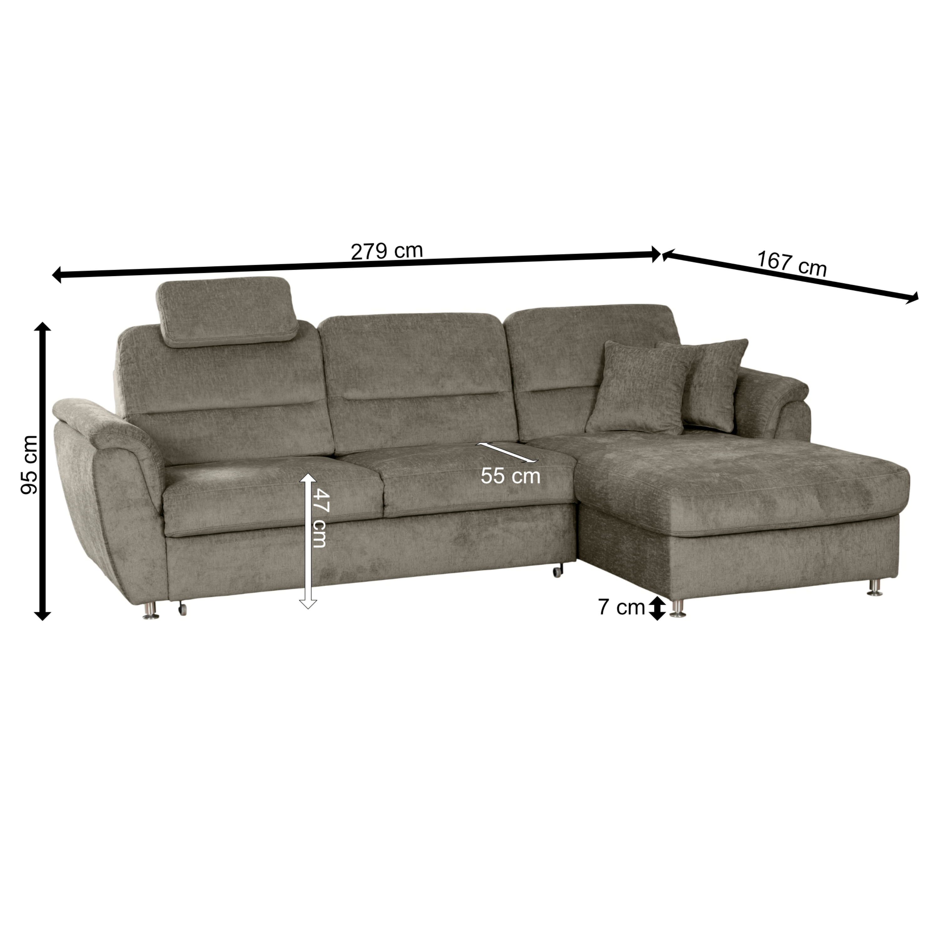 Vďaka svojej veľkosti a vlnovému odpruženiu v kombinácii so studenou penou poskytne komfortné sedenie pre 3 osoby. Sedacia súprava disponuje pohodlnými chrbtovými operadlami, podrúčkami, podhlavníkom a dekoračnými vankúšikmi na dosiahnutie maximálneho pohodlia. Sedačku je možné v prípade potreby rozložiť na lôžko, ktoré sa dá využiť na občasné prespanie. Do skrytého úložného priestoru v otomane môžete navyše uschovať lôžkoviny. Potrebnú stabilitu celej konštrukcie zaisťujú kovové nohy vo farbe kovu.