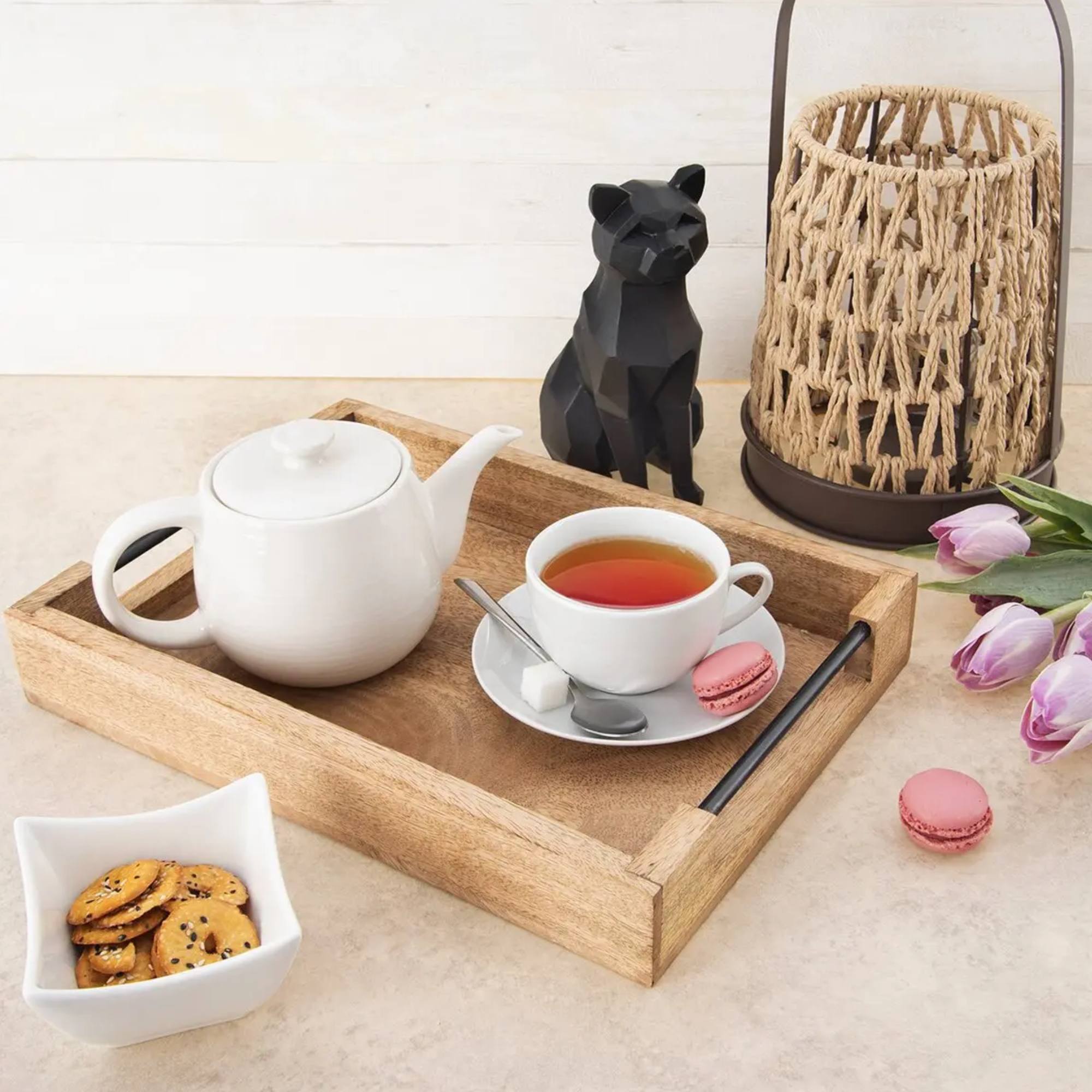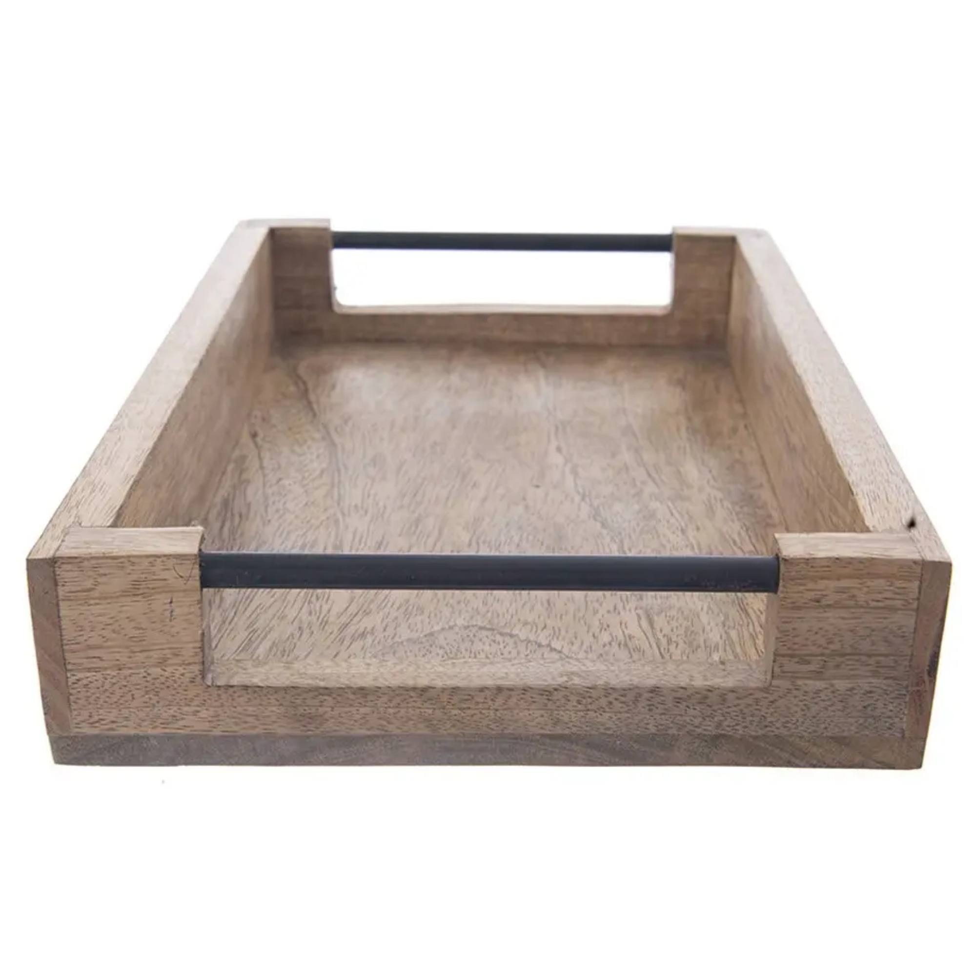 S rozmerom 35x26 cm je pripravený na servírovanie raňajok do postele aj popoludňajšej kávy pri posedení s priateľmi. Je vyrobený z mangového dreva, ktoré vyniká svojou pevnosťou a kvalitou. Je doplnený o 2 kovové úchyty, s ktorými bude servírovanie hračka. Je nielen praktickým, ale aj štýlovým doplnkom vďaka výraznej prírodnej kresbe dreva.