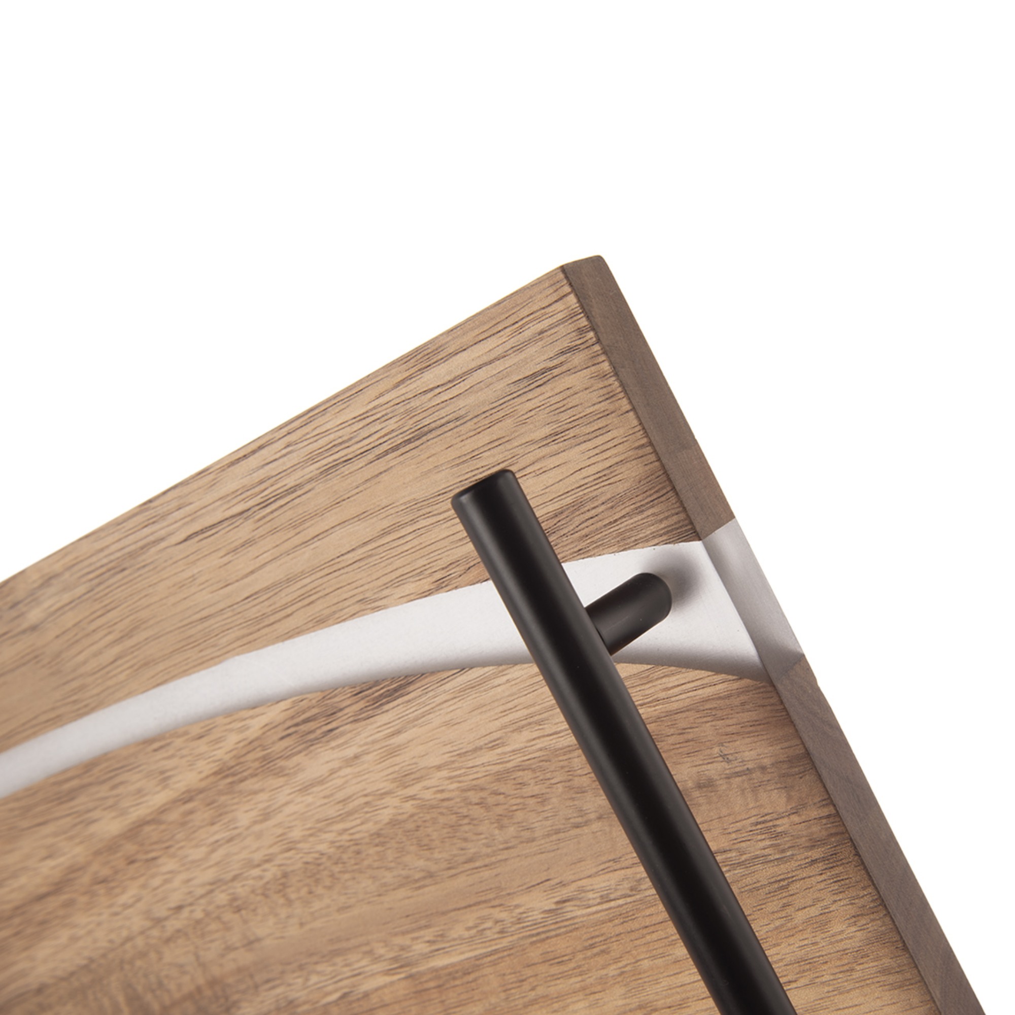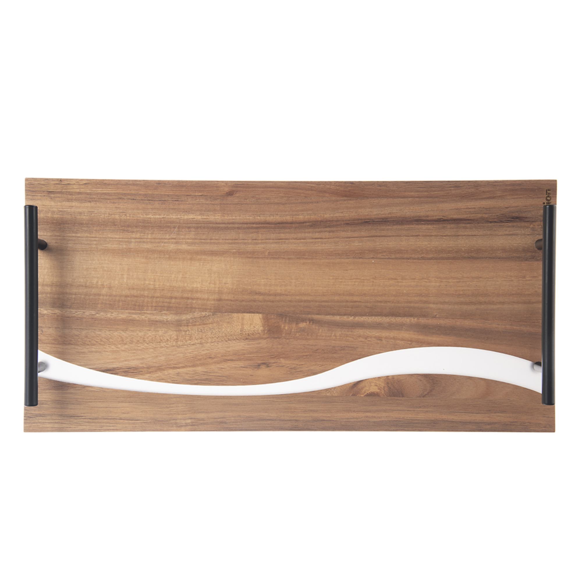 Praktická tácka RIVER vám spríjemní každodenné aj sviatočné stolovanie. Tácka je vyrobená z akáciového dreva so špecifickou, výraznou kresbou a modernou živicou, ktorá sa vinie, ako priehľadná rieka v jemnom sivom odtieni. Na ľahkú a bezpečnú manipuláciu je tácka vybavená praktickými kovovými držadlami. Tácku možno umyť bežným spôsobom, v teplej vode so saponátom.