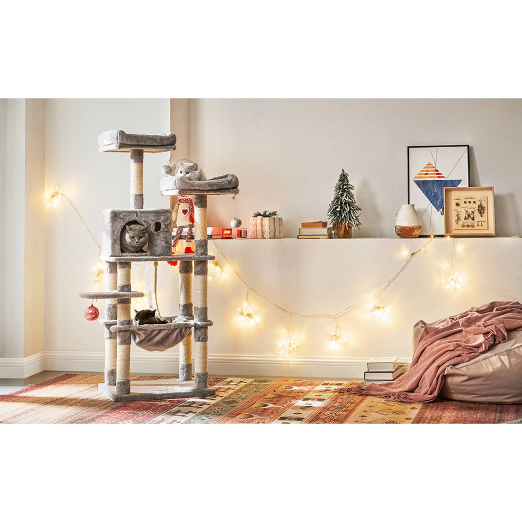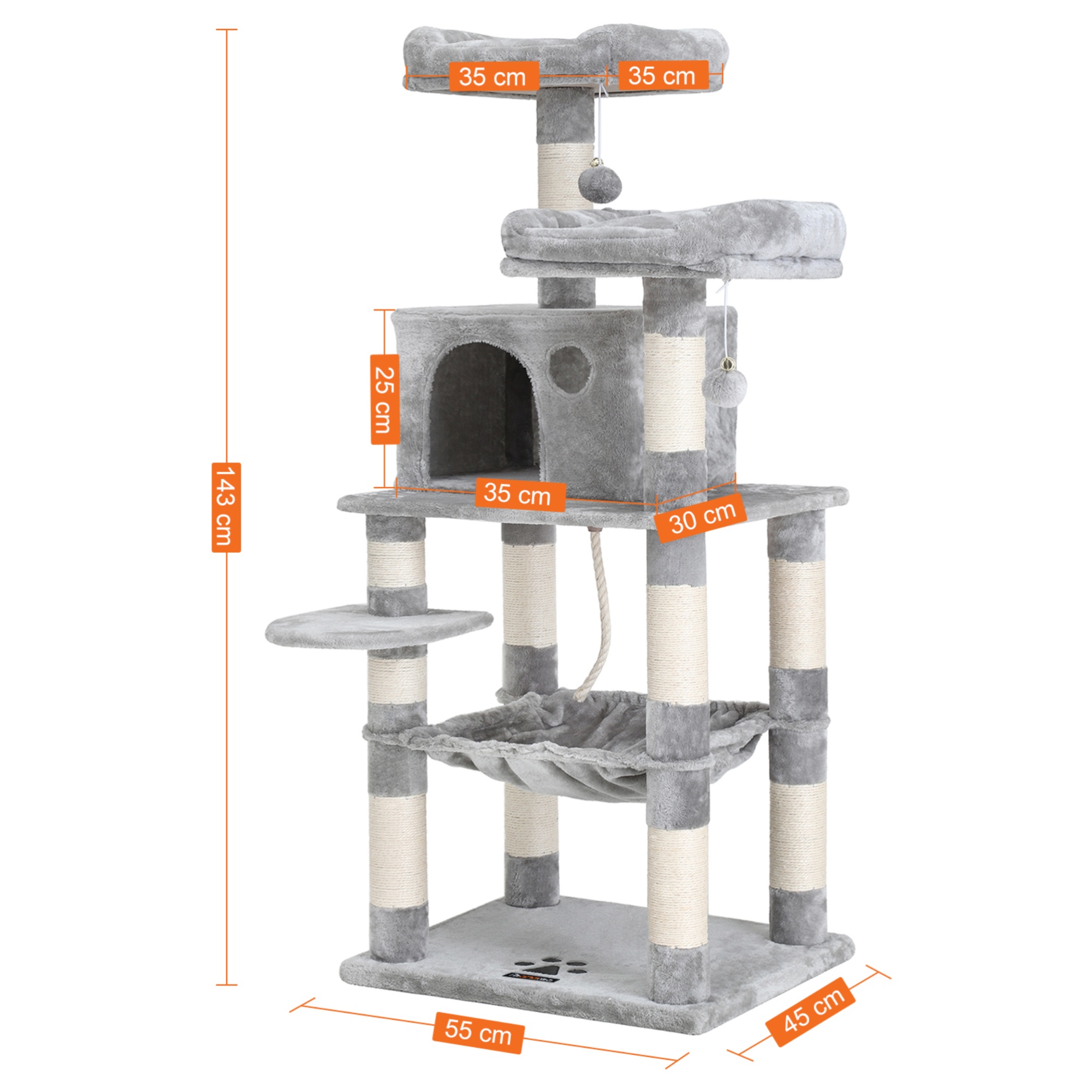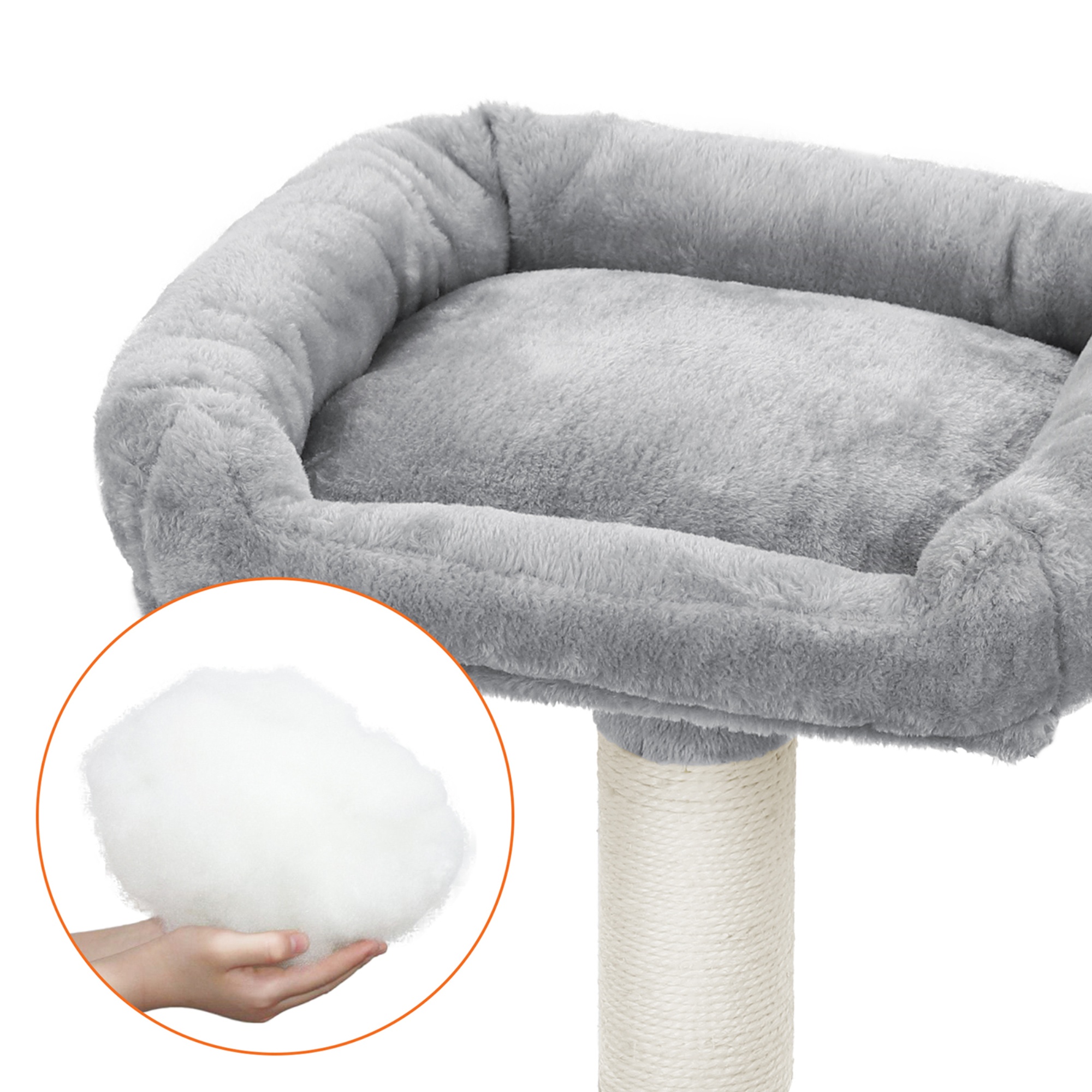 Z mačacieho stromu KATTY bude mať vaša mačka dokonalý výhľad na všetko, čo sa deje vo vašom byte. Nájde tu až štyri pelechy, z toho jeden domček, takže o zábavu bude mať vždy postarané. Konštrukcia je vyrobená z kvalitného MDF materiálu, ktorý je čalúnený hebkou plyšovou látkou. Omotaný odolný sisal vaša mačička využije na brúsenie pazúrikov.
