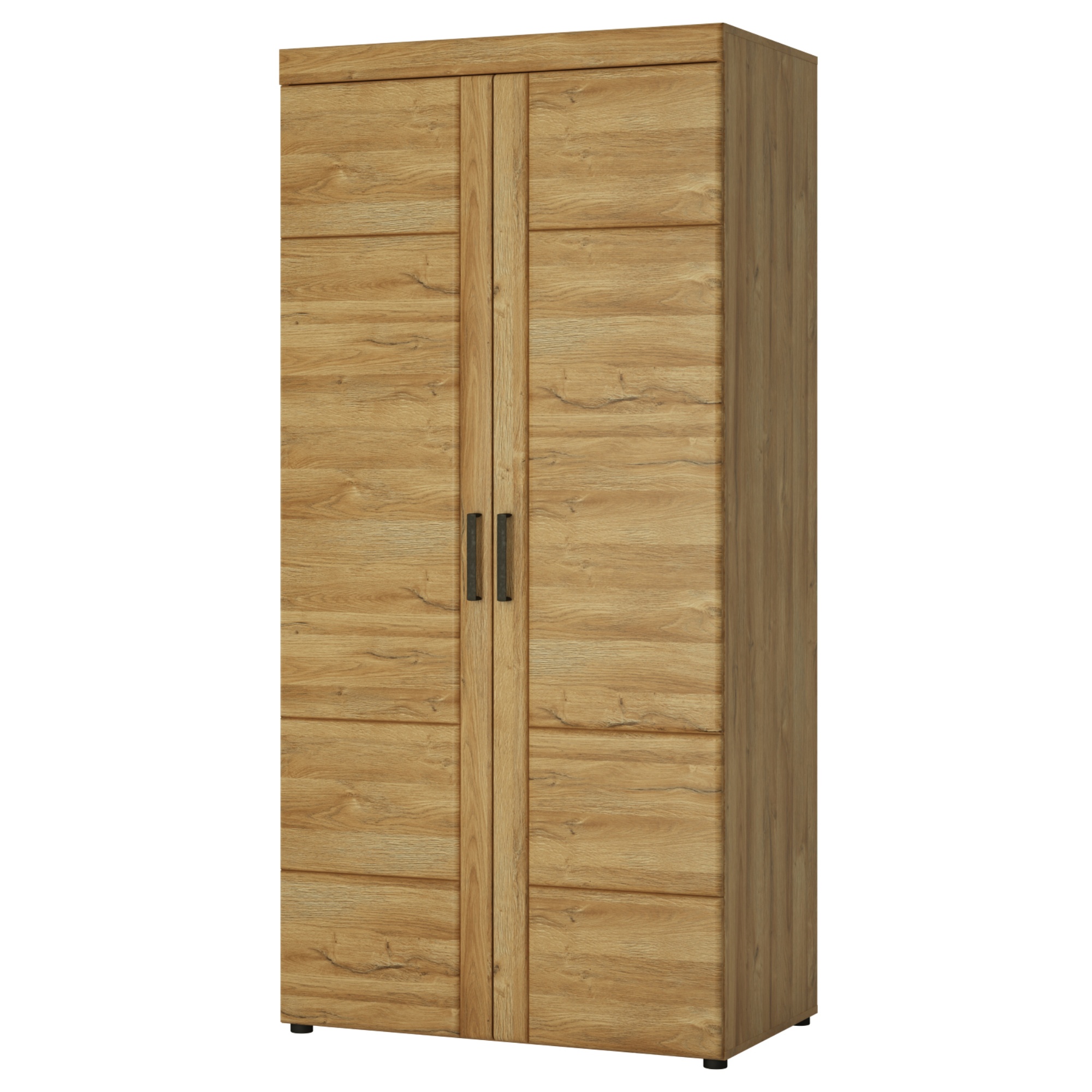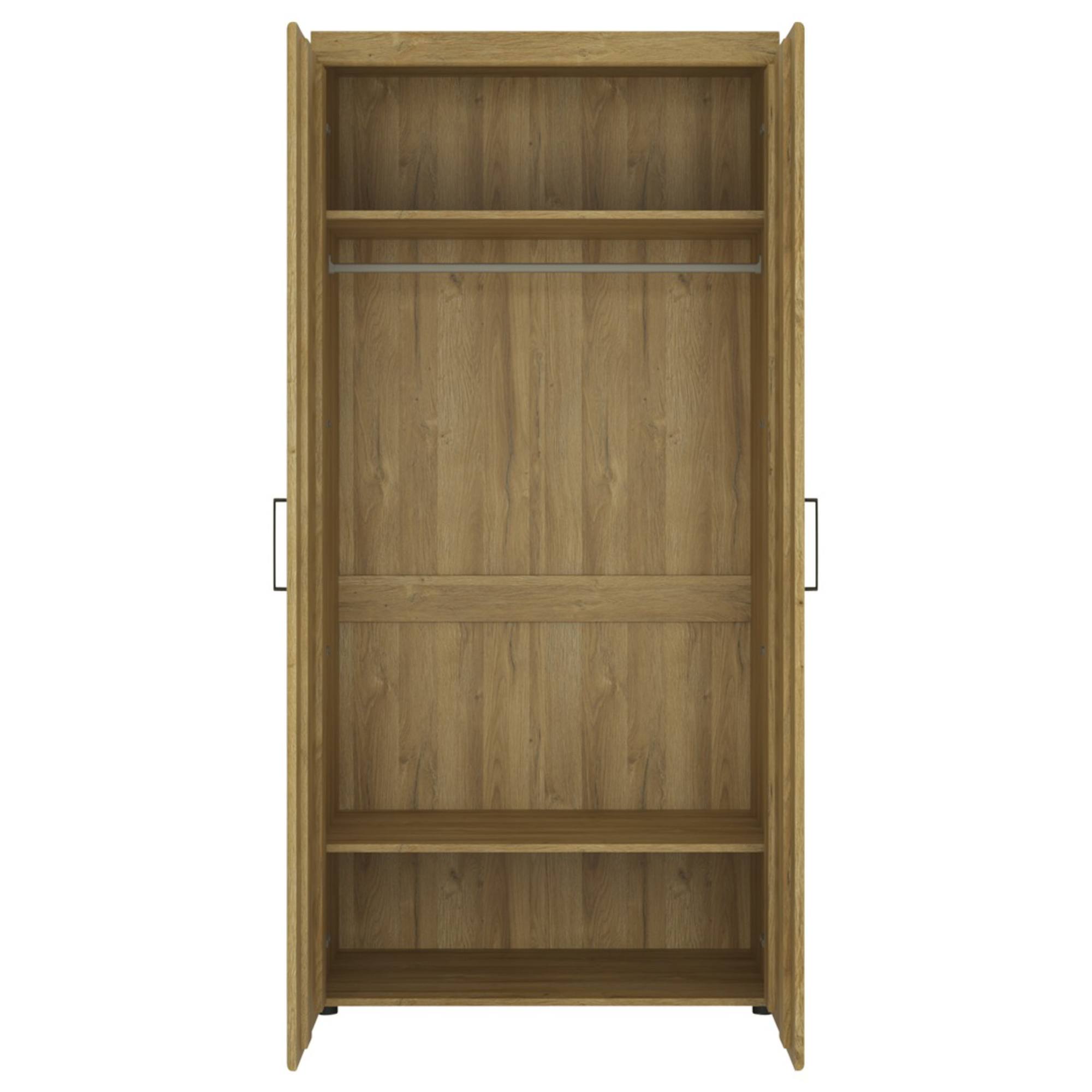 Skriňa má 2 otočné dvere, za ktorými sa nachádza vnútorné vybavenie, ktoré je zostavené z 2 vložených políc a 1 šatníkovej tyče. Decentné rúčky uľahčujú otváranie otočných dverí. Skriňa je vyrobená z laminovaného dreveného materiálu, ktorý je odolný a nenáročný na údržbu. Chcete mať interiér zjednotený do jedného štýlu? Pozrite sa na ďalší nábytok z rovnomenného nábytkového programu CORTINA.