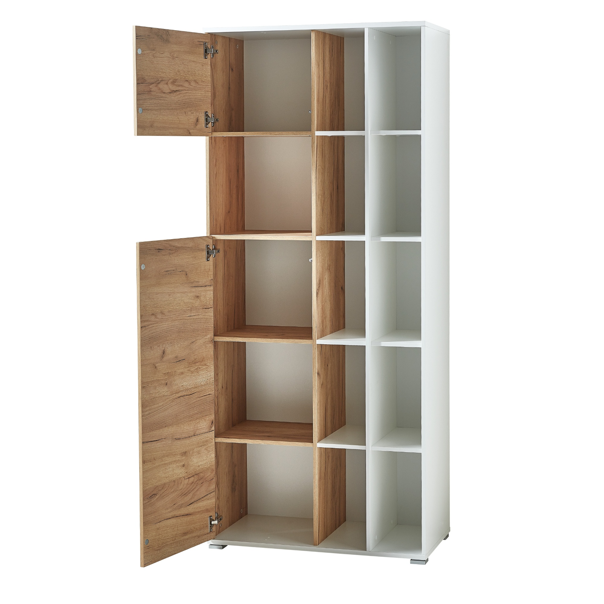 Skriňa do kancelárie ILON - biela/dub navarra, výška 197 cm