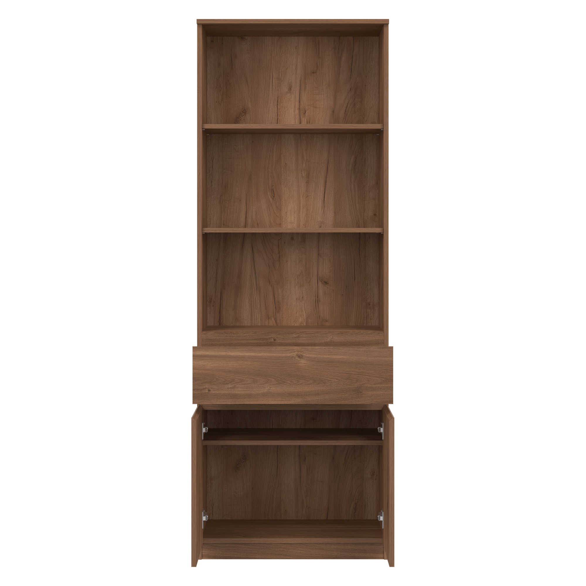 Vyrobená je z laminovaného dreveného materiálu, ktorý sa vyznačuje ľahkou udržiavateľnosťou aj dlhou životnosťou. Kombinovaný úložný priestor je členený na spodnú, dvierkovo uzatvárateľnú skrinku s policou, zásuvku a otvorenú sekciu s dvoma policami. Skriňa ERNIE RM09 zvýrazní štýl interiéru a zaistí logické členenie vašich vecí.