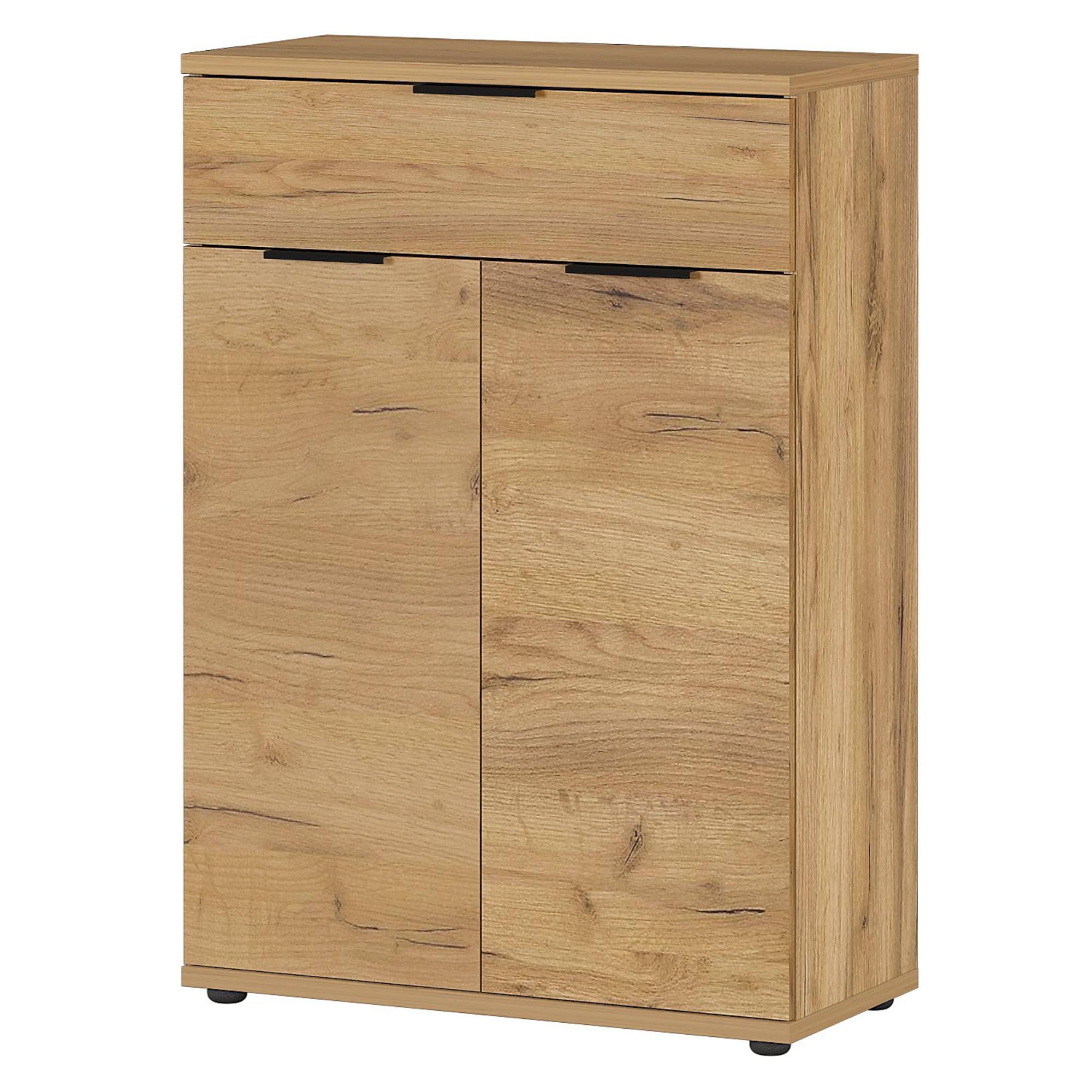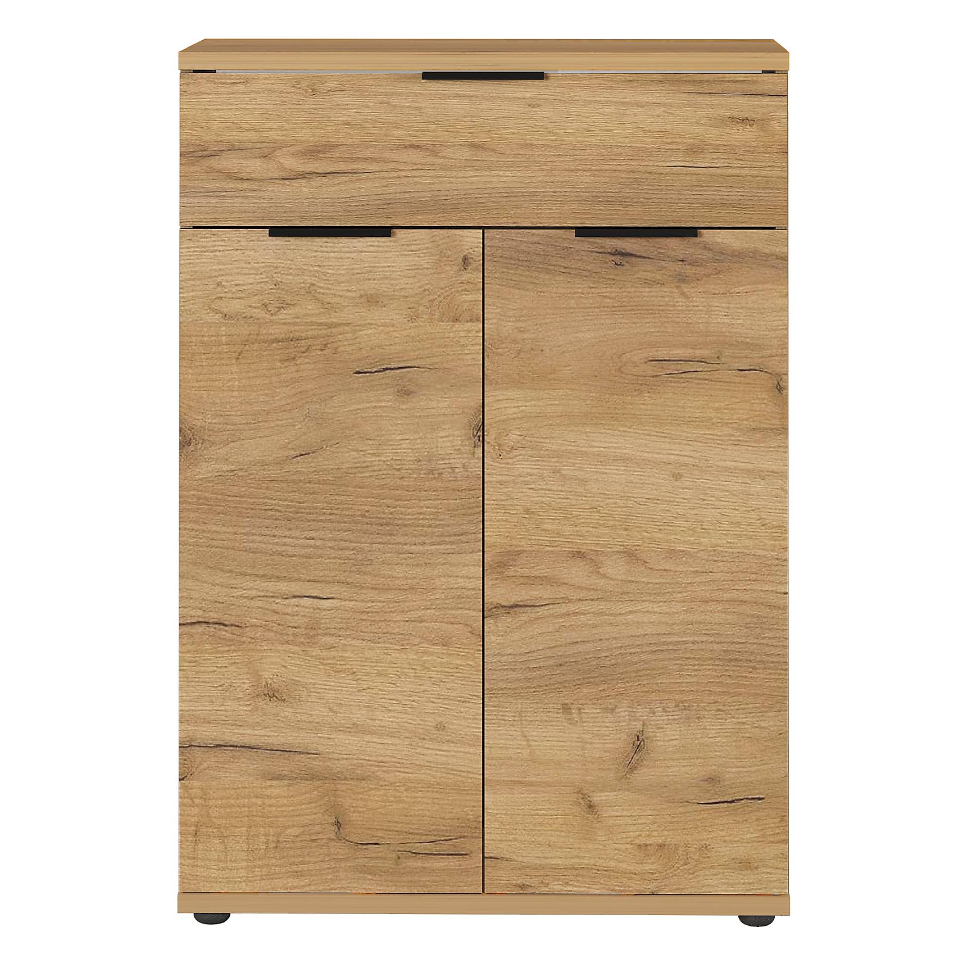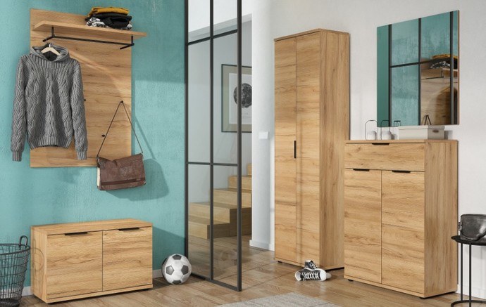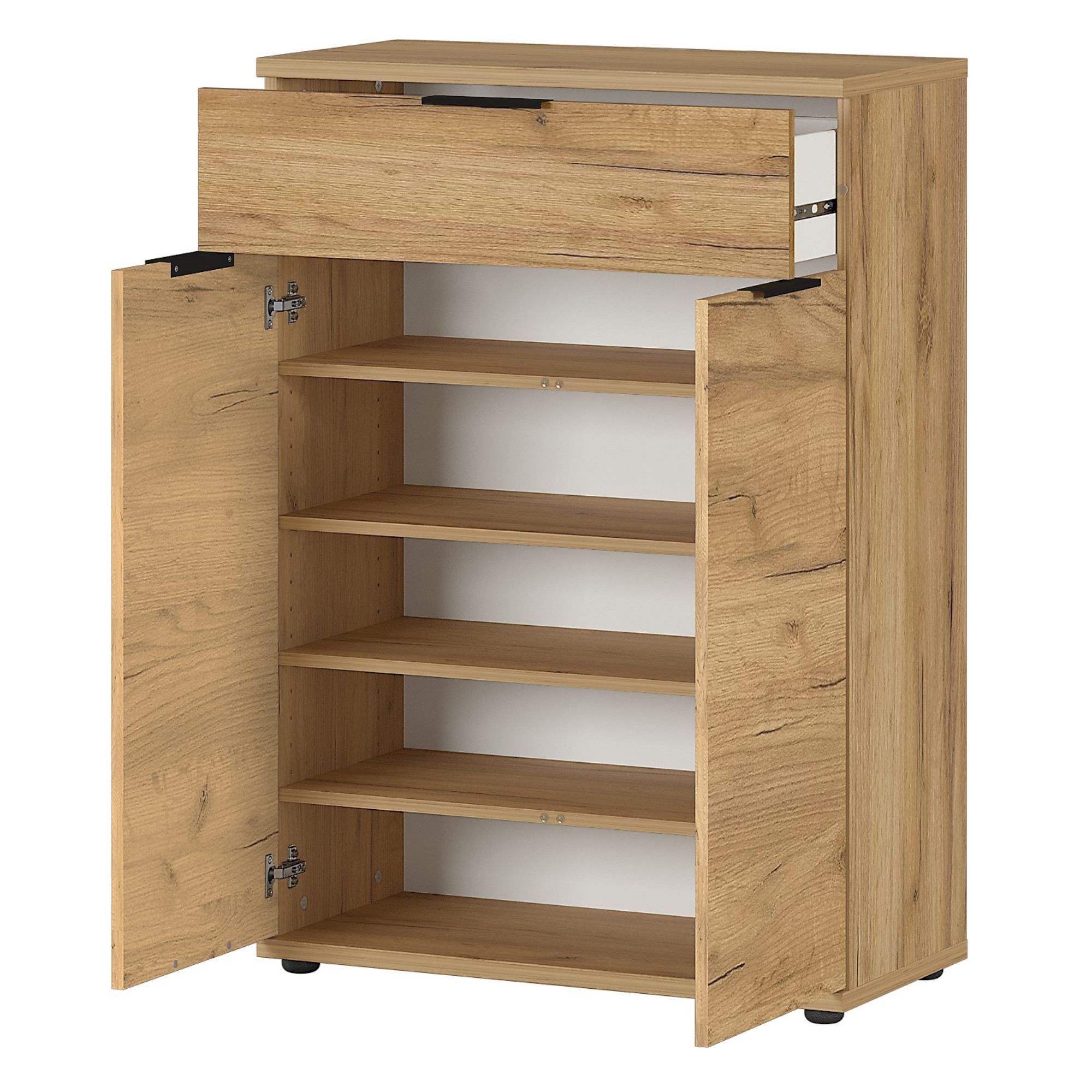 Za dvoma dvierkami sa ukrývajú štyri vložené police, a tak skriňa ponúka dostatok úložného priestoru nielen na všetky vaše topánky, ale aj na ďalšie nevyhnutnosti, ktoré v predsieni potrebujete mať neustále po ruke. Okrem políc je súčasťou skrine aj jedna praktická zásuvka.