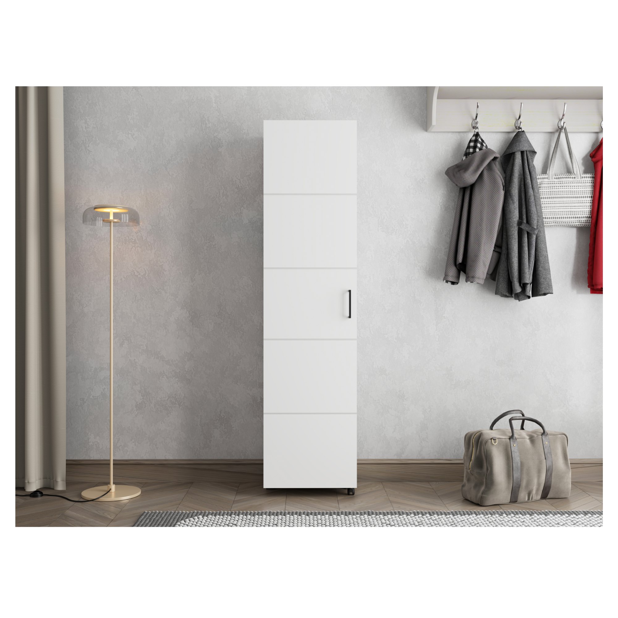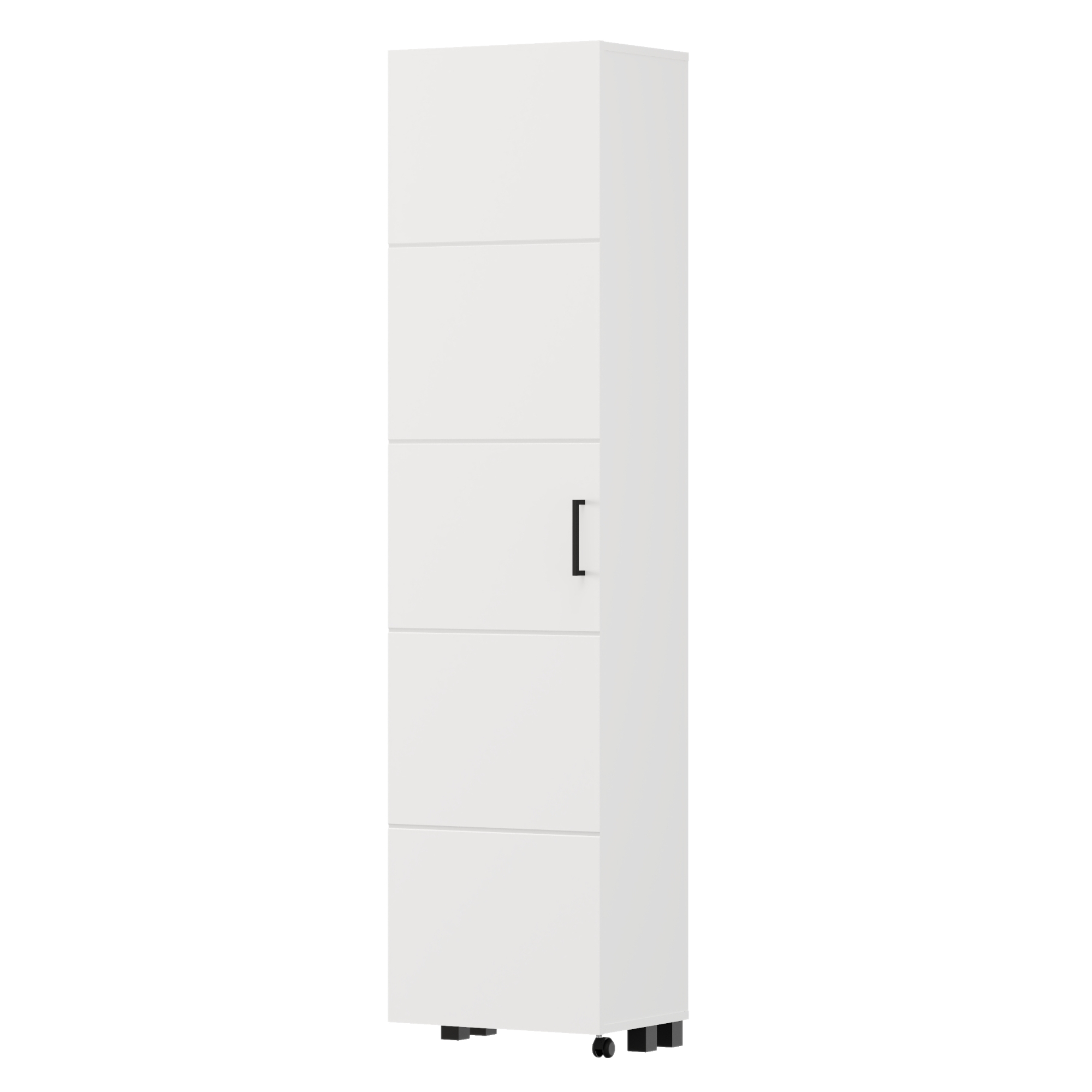 Skriňa je vyrobená z laminovaného dreveného materiálu, ktorý je nenáročný na údržbu, a stojí na plastových nohách. Dvierka sú pre ľahšiu manipuláciu vybavené nielen plastovou rúčkou, ale aj kolieskom.